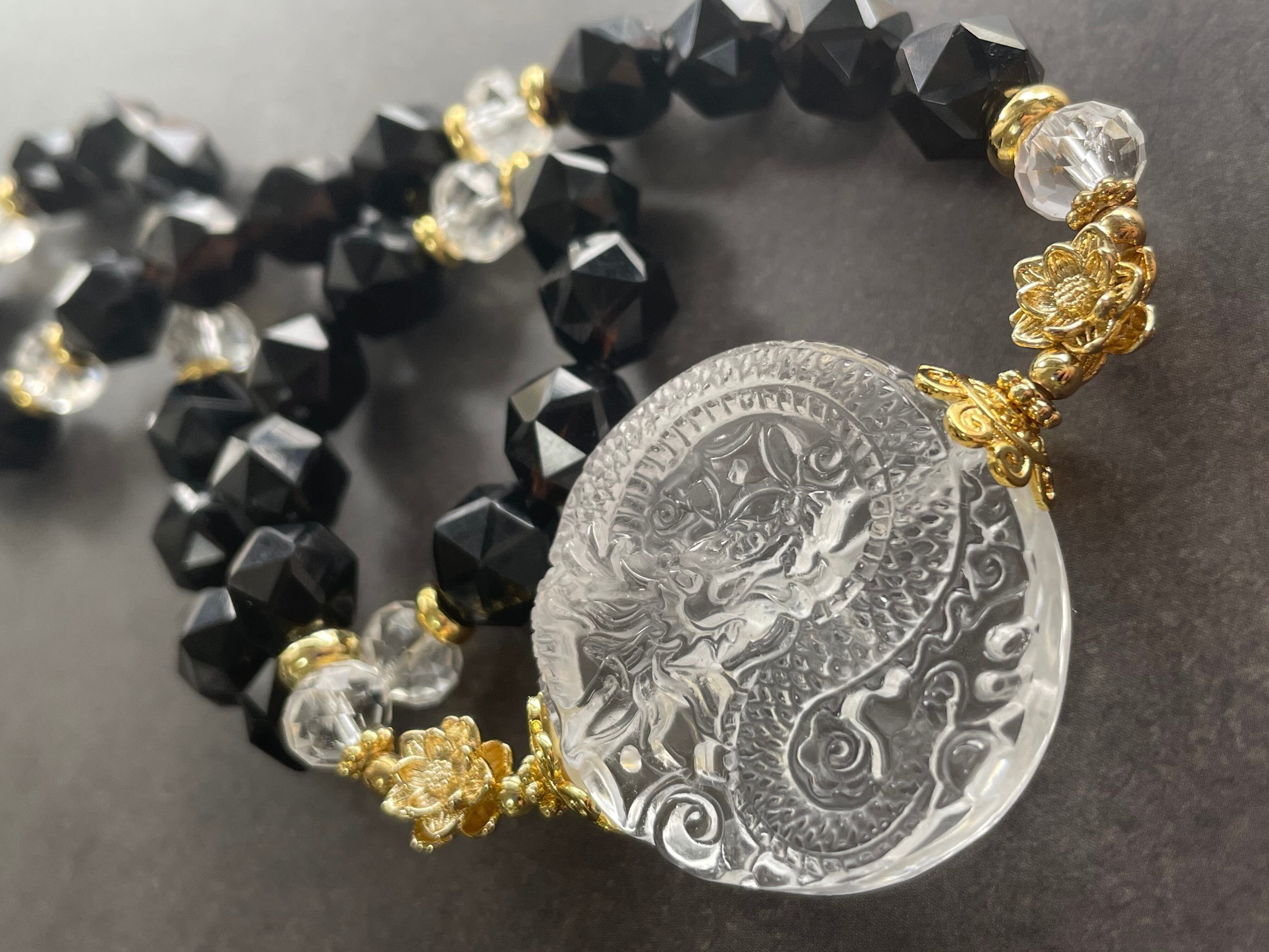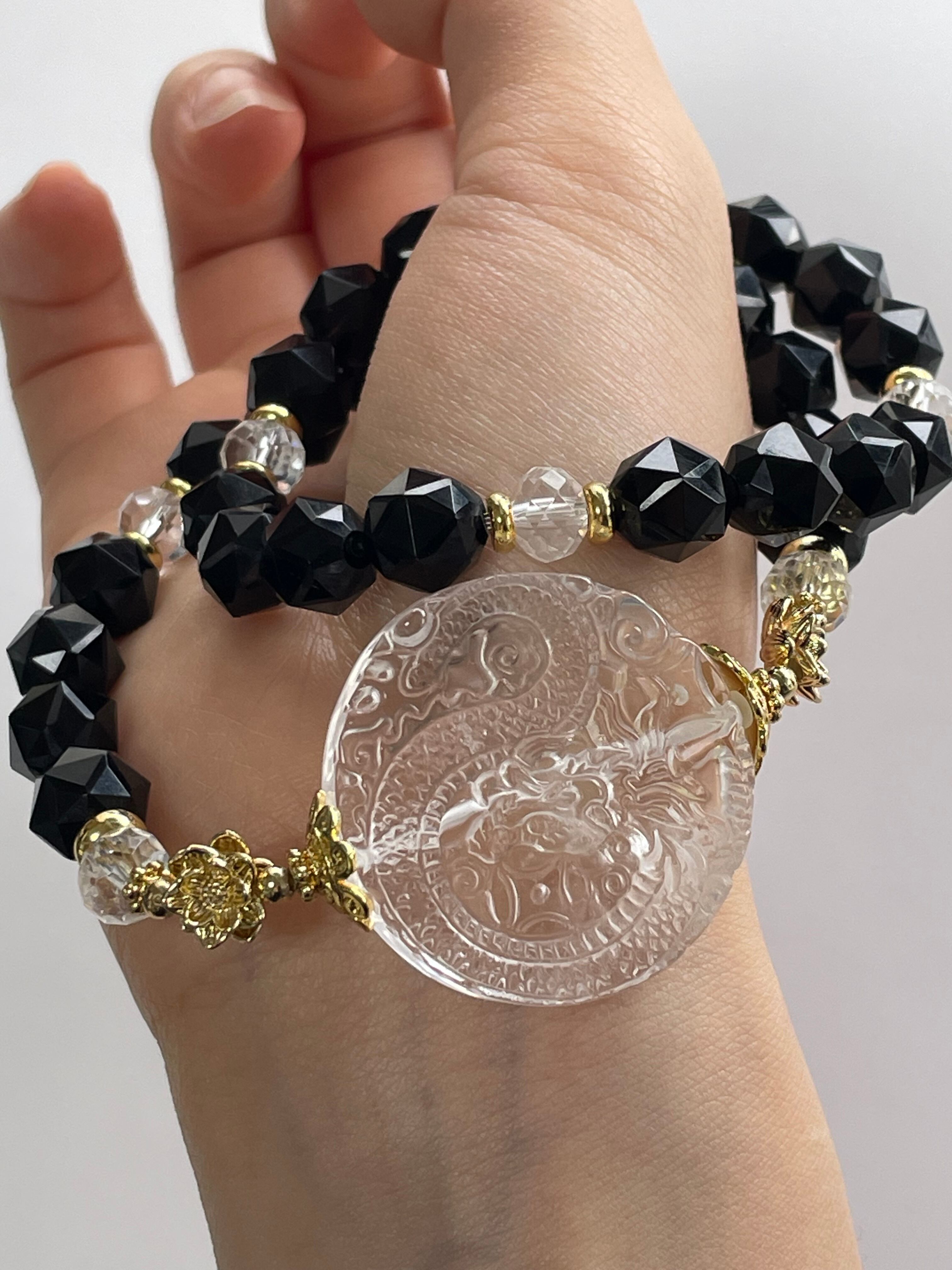 水晶 龍彫刻 スターカットモリオン 2連デザインブレスレット