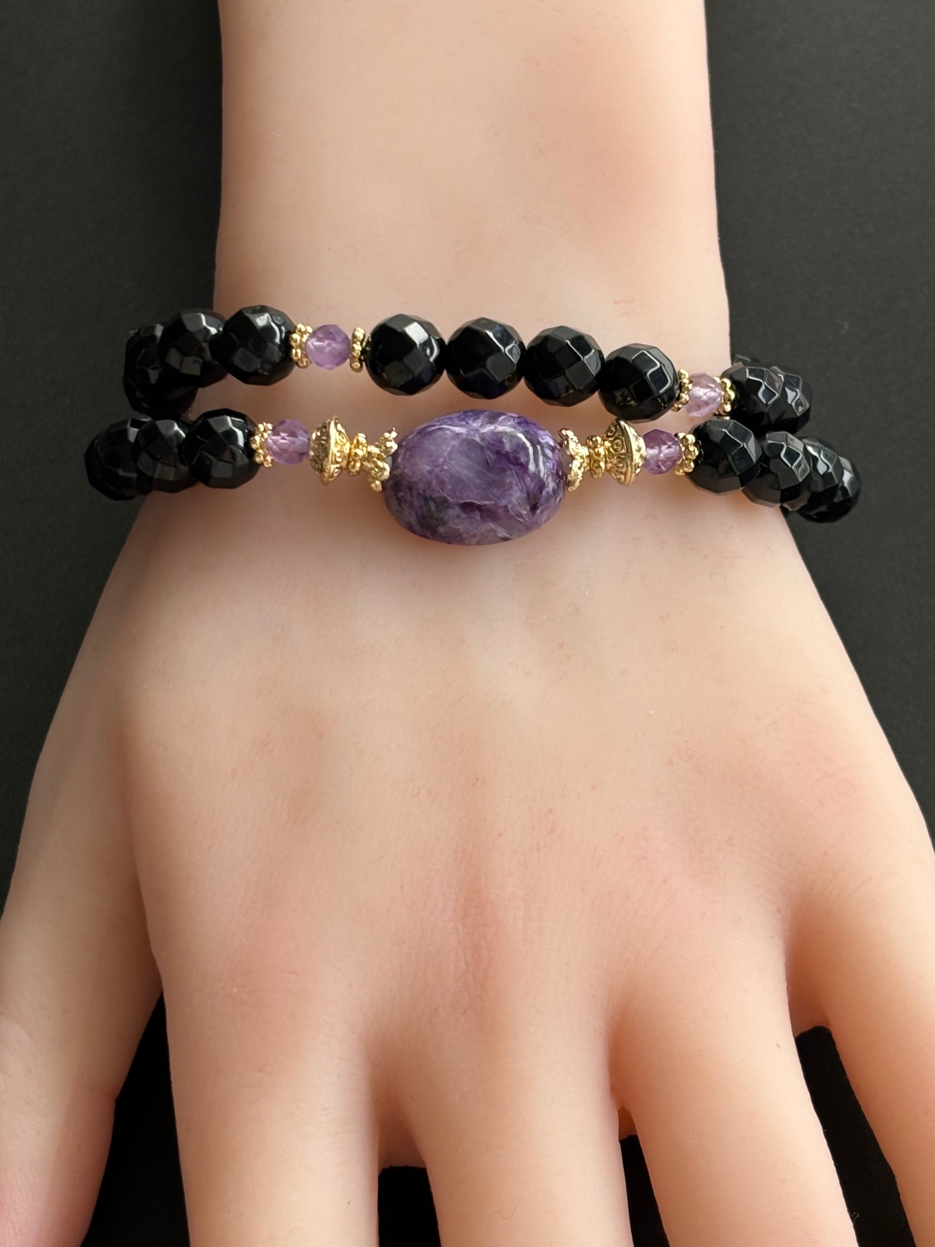 チャロアイト ラベンダーアメジスト カットモリオン 2連デザインブレスレット