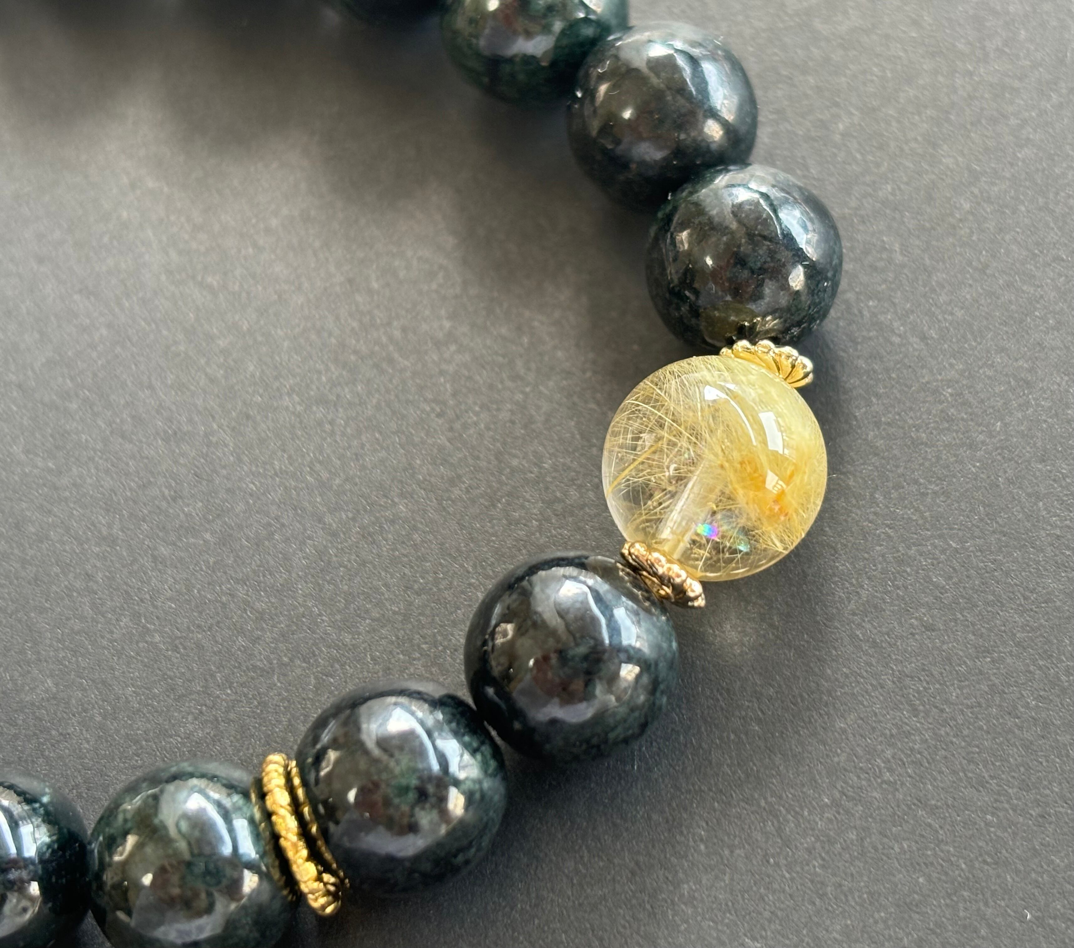 ルチル 手彫り龍彫刻 黒翡翠 デザインブレスレット