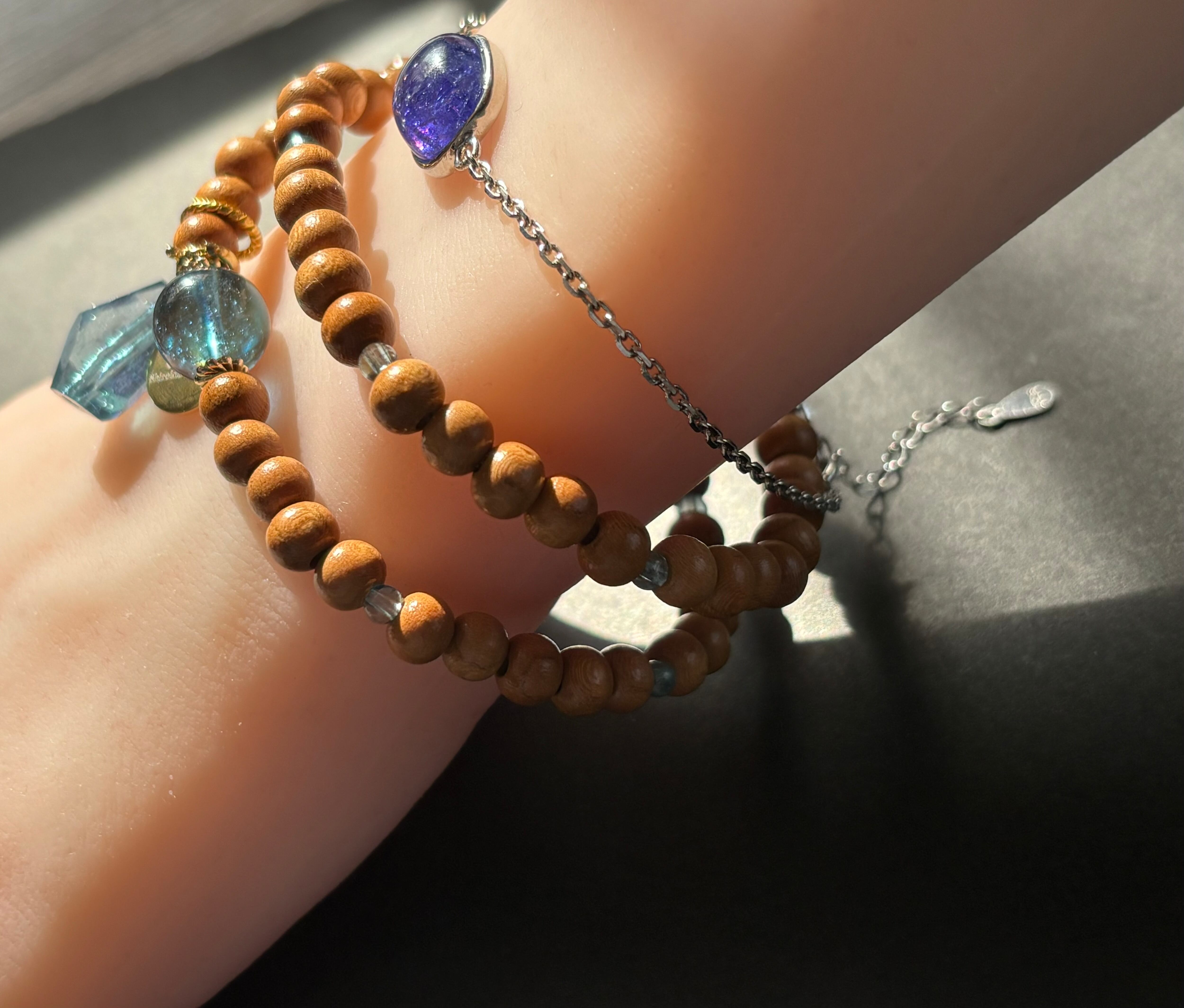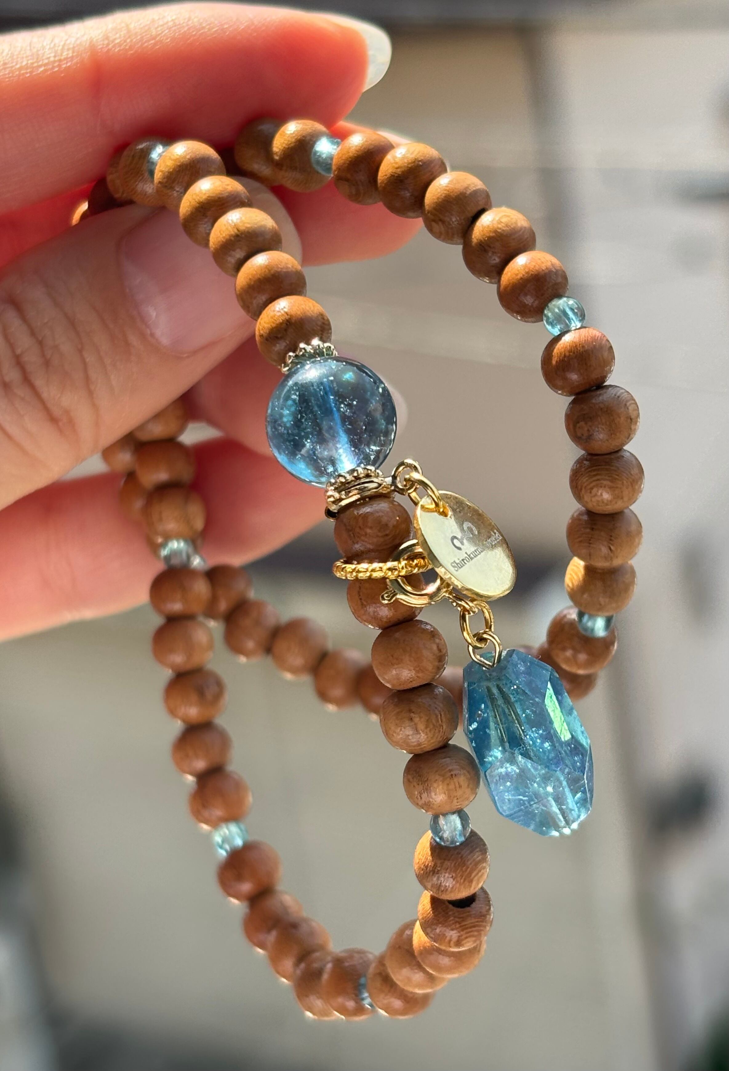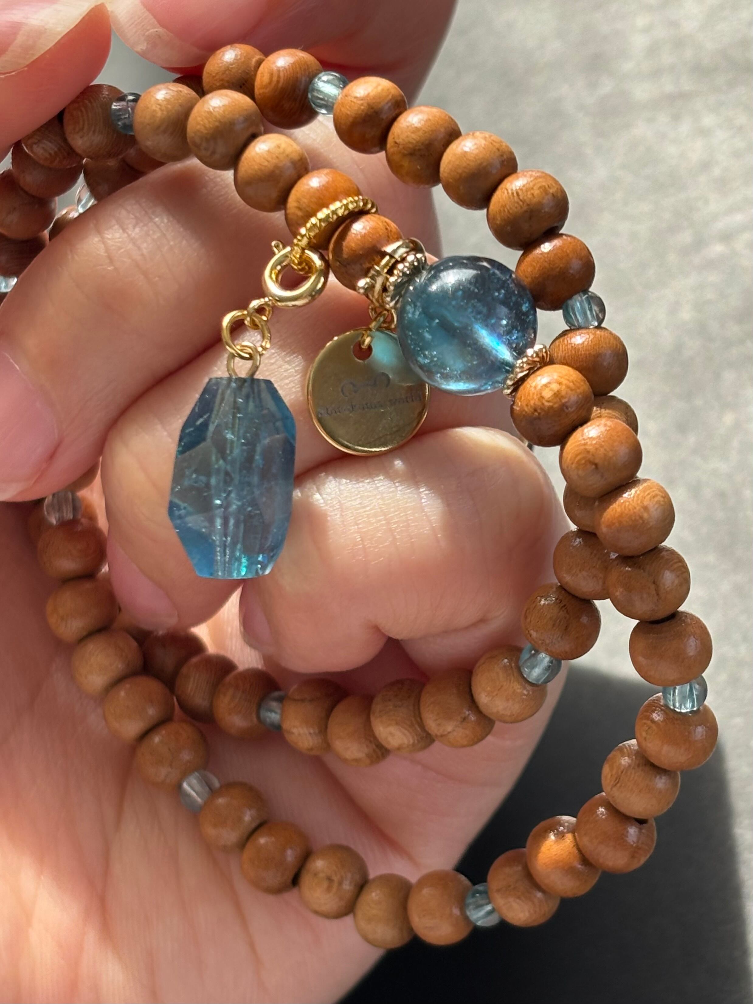 桃の木と組みポイントに高品質なスカイブルーのアパタイトを入れ組みました(*^^*)