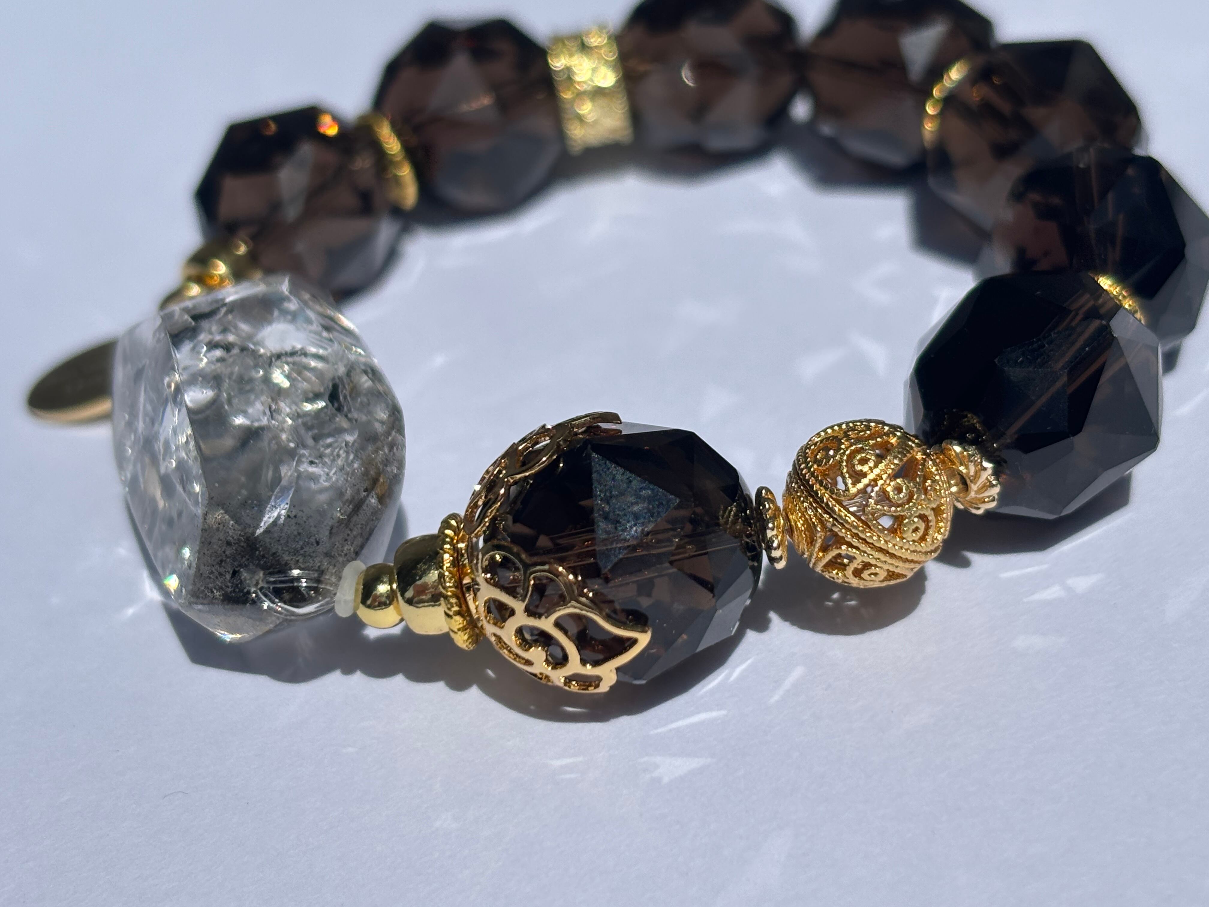 水入り水晶原石 スターカットスモーキー デザインブレスレット