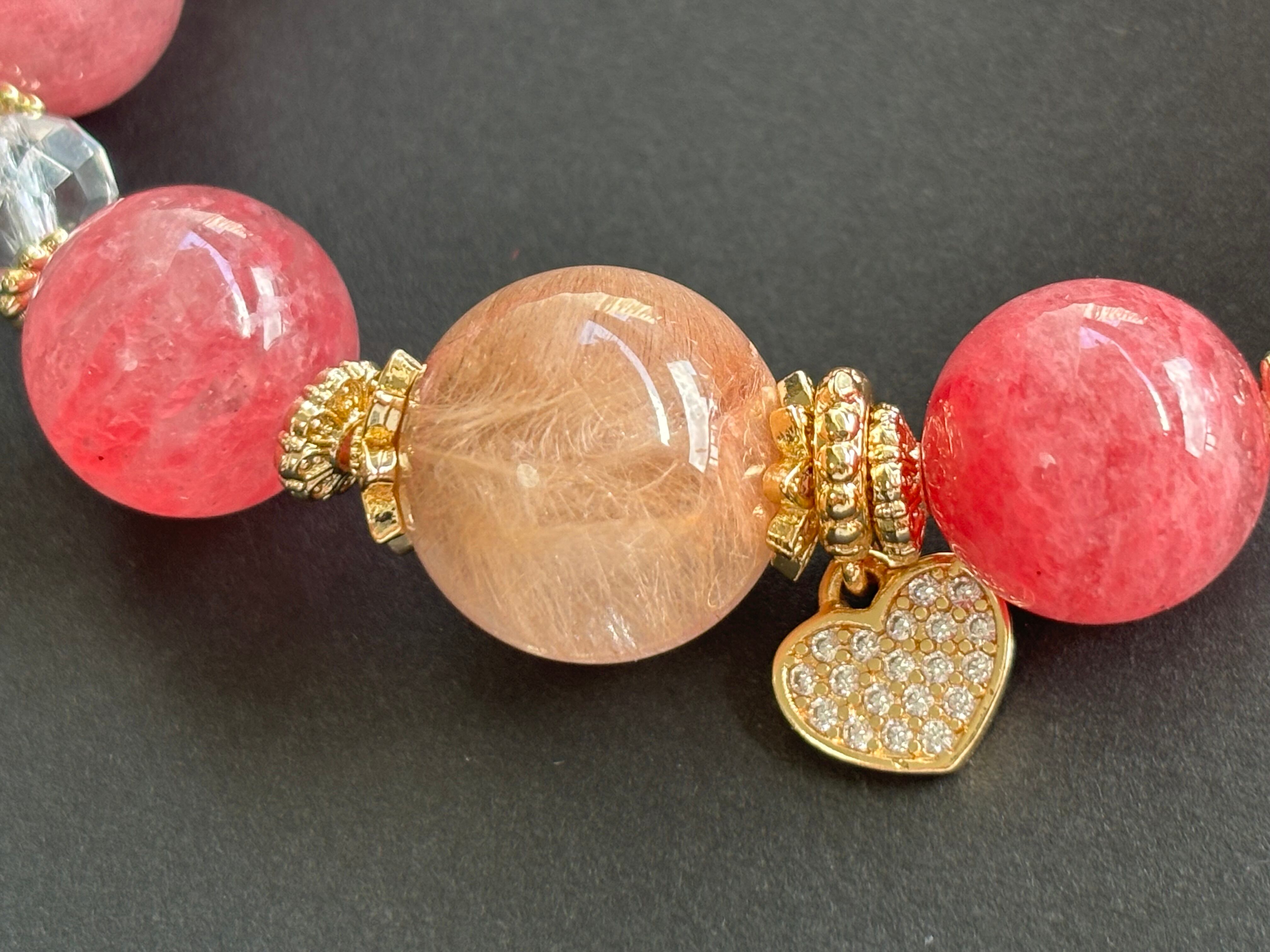 ピンクサゲニティッククォーツ ロードナイトシリカ デザインブレスレット