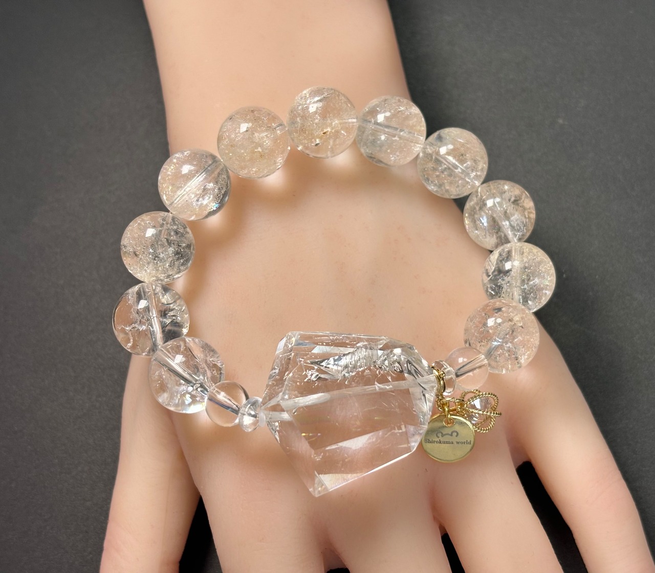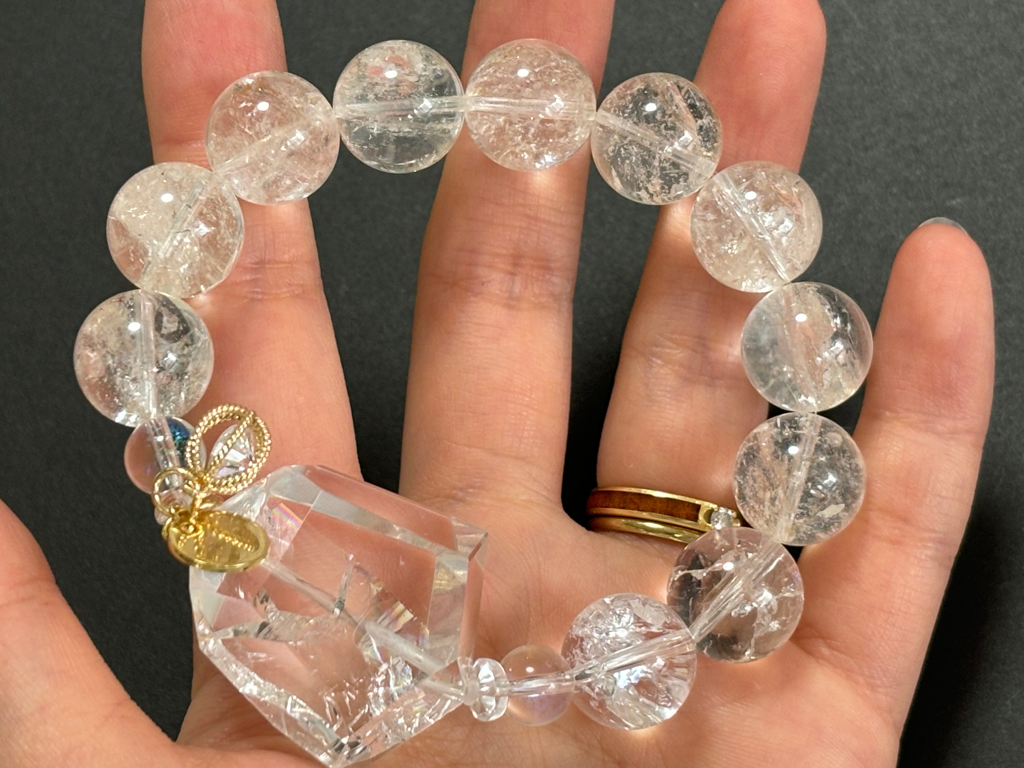 とても綺麗な粒が揃って居たのであえて、パーツはやめて 水晶の美しさをそのまま感じて頂きたくシンプルに作成致しました!