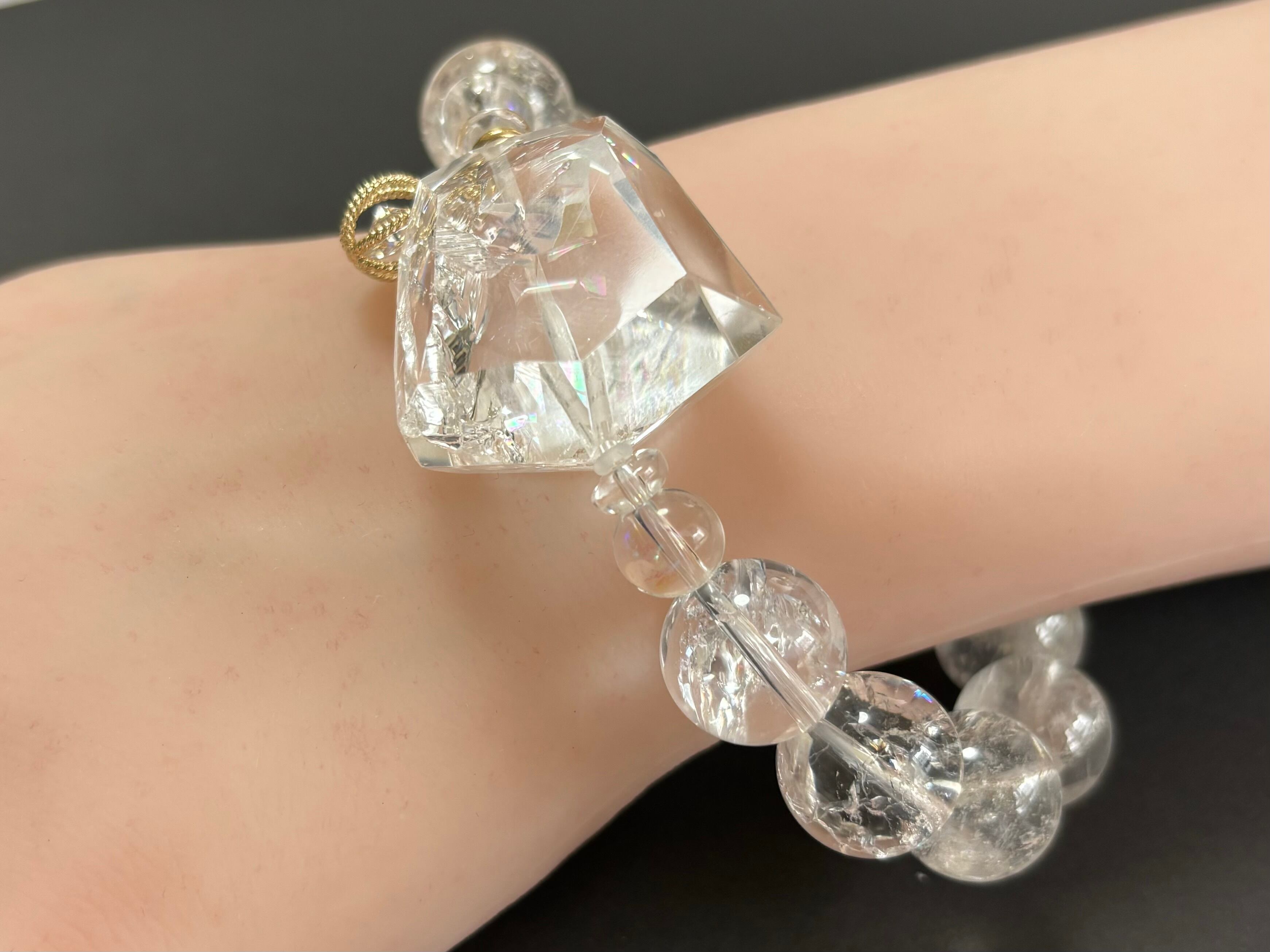 ポイントには水晶そろばんカットとオーラクォーツを入れました!