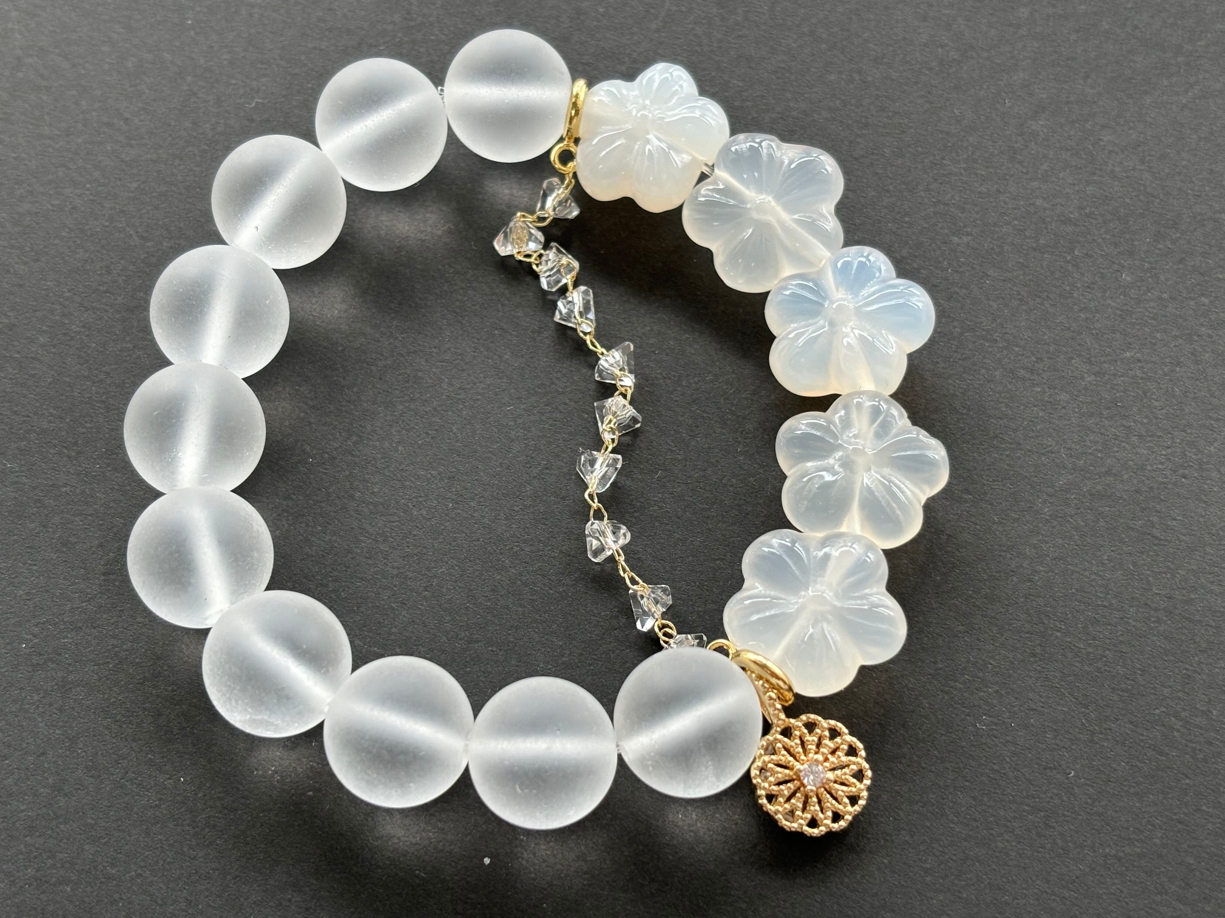 感謝特価 ミルキークォーツ フロスト水晶 デザインブレスレット