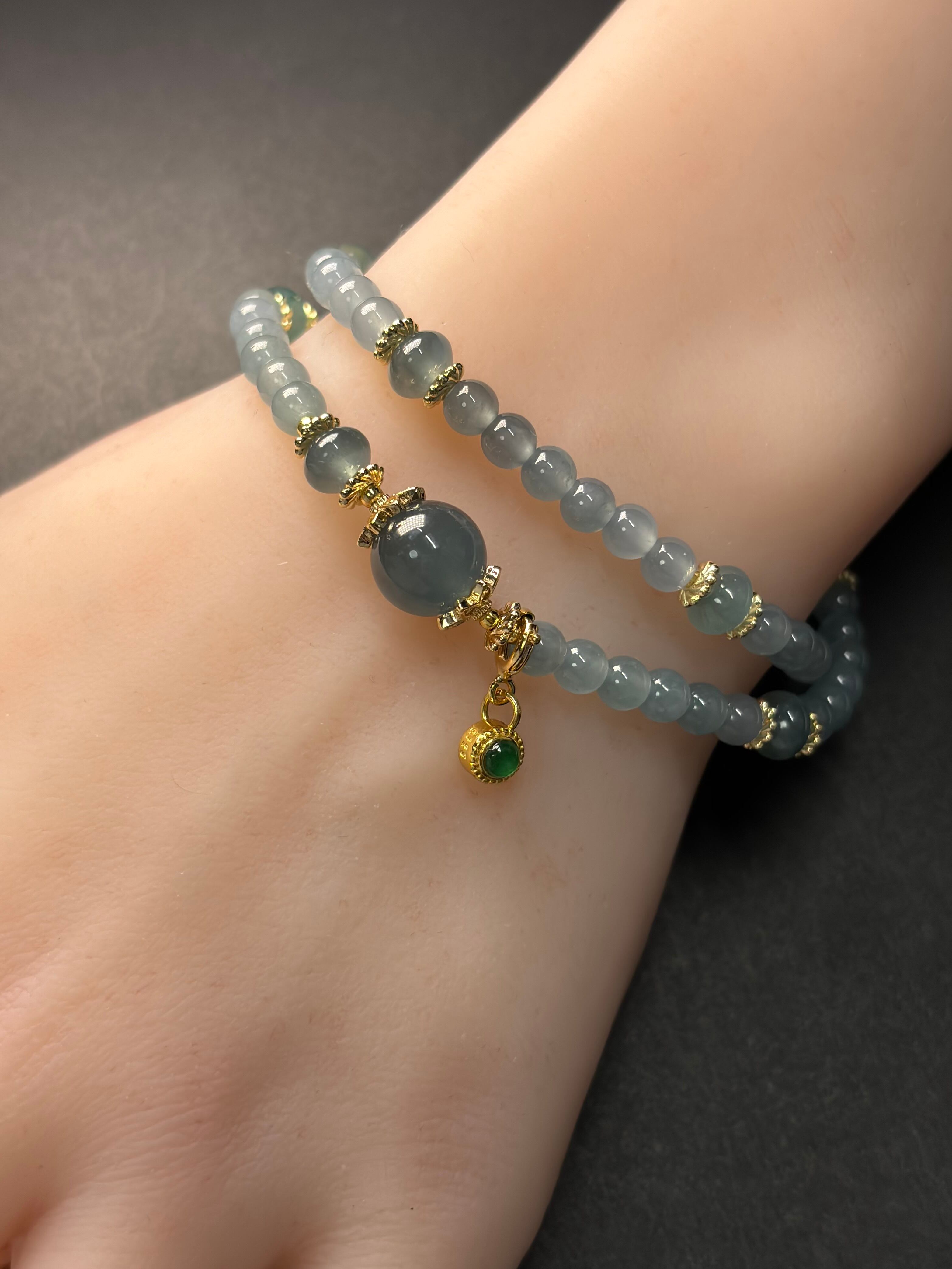 文句なしのトップグレードのグアテマラ翡翠を使った2連ブレスレットです。