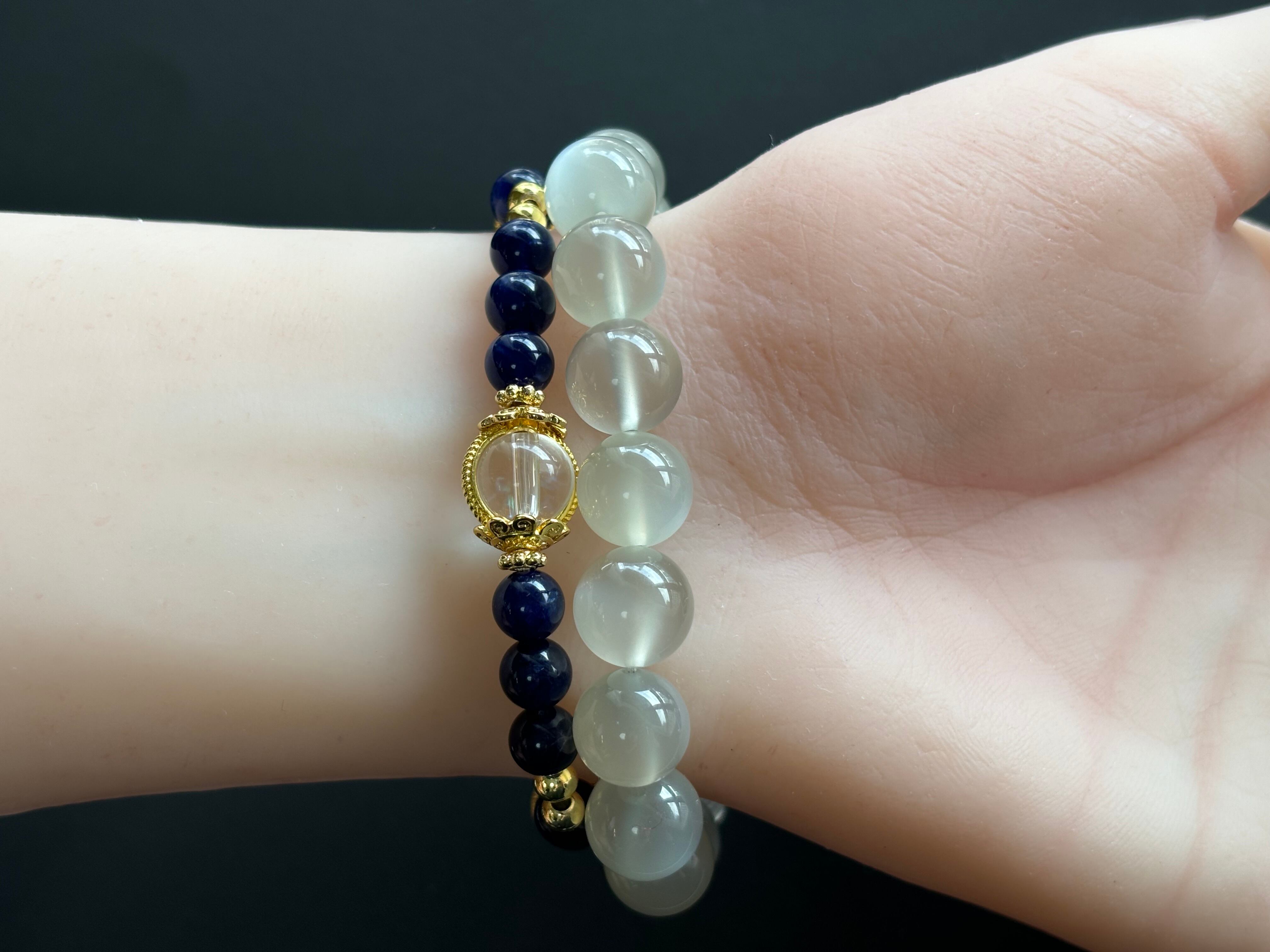 ムーンストーン 水晶鈴蘭 アイリス水晶 ソーダライト 重ね付け2連ブレスレット