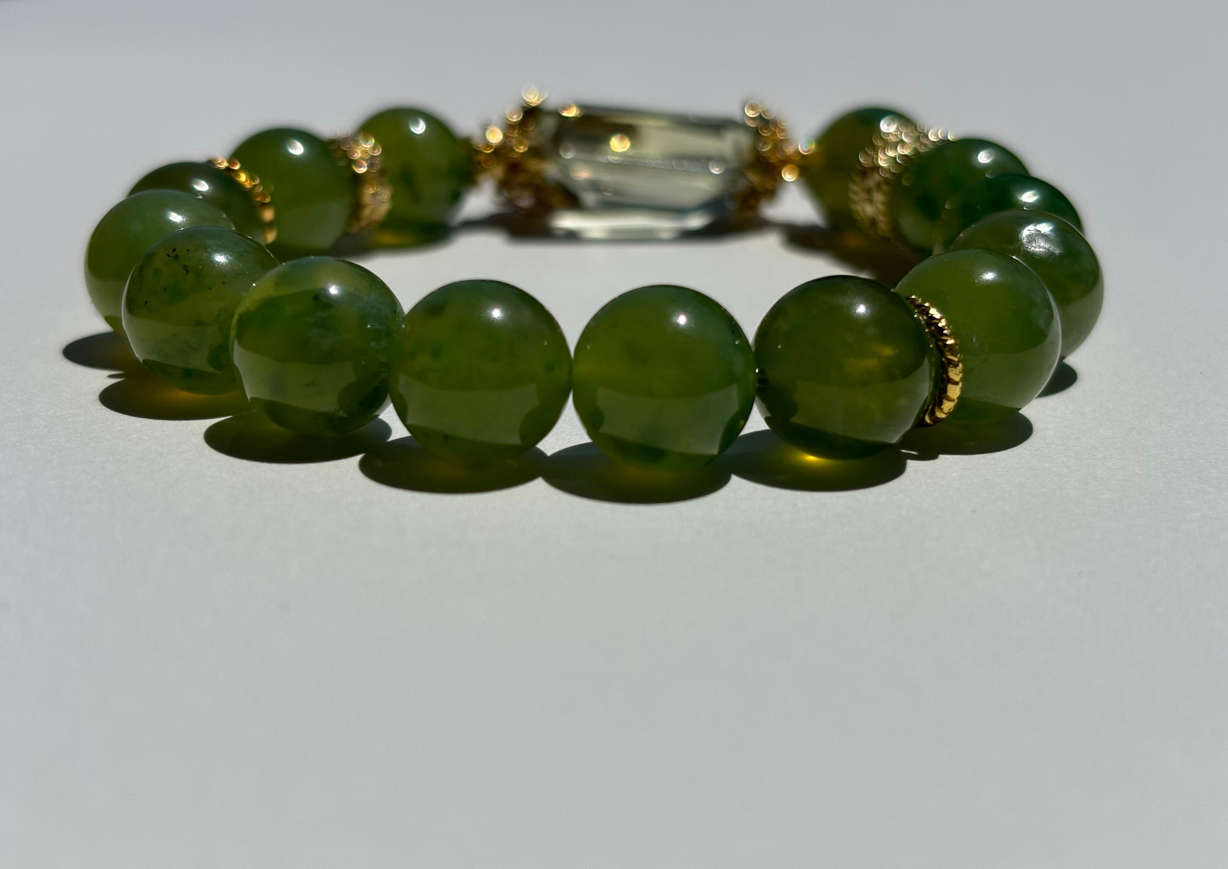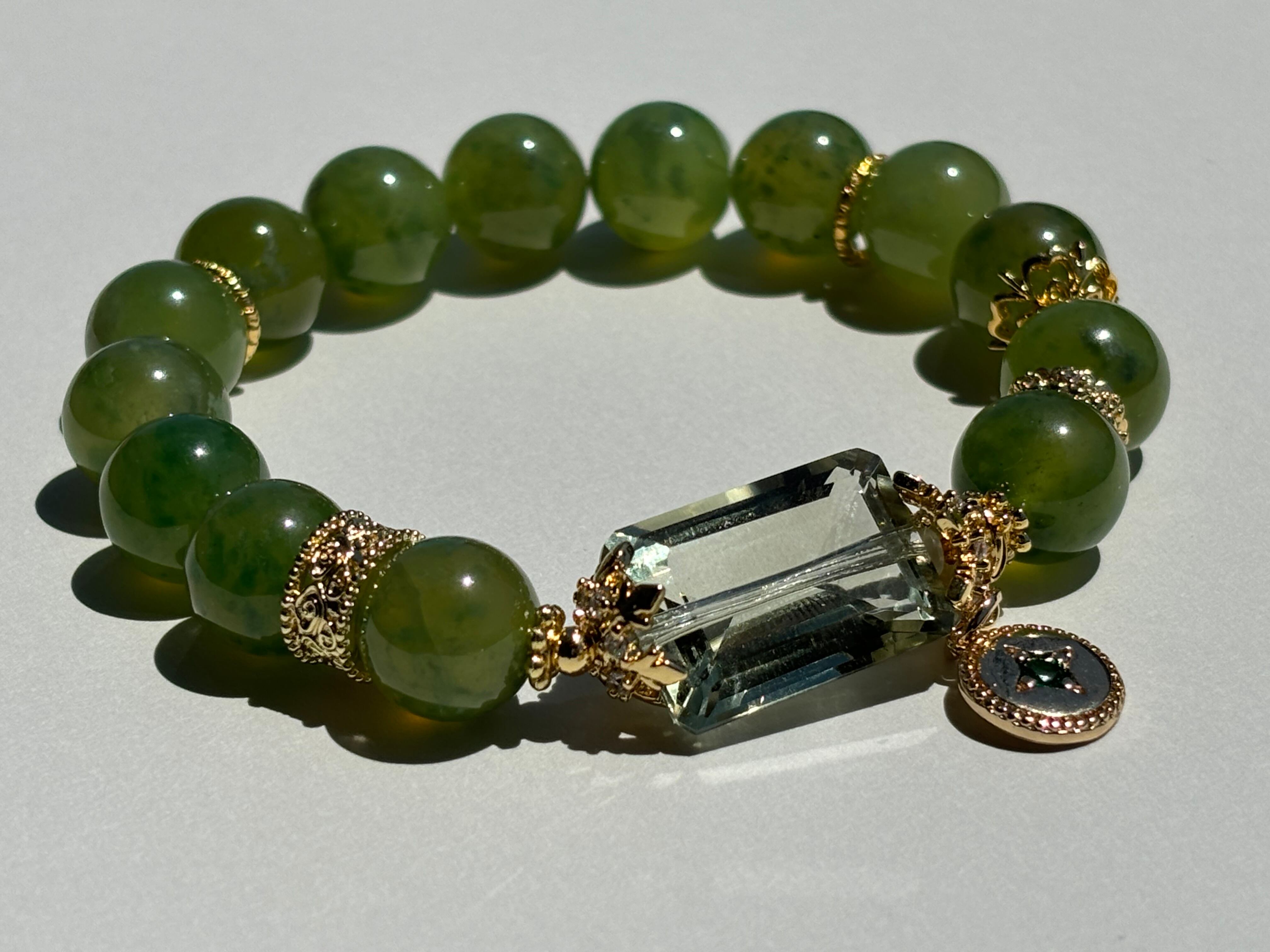 宝石ルース プラシオライト グリーンアメジスト アイドクレースデザインブレスレット