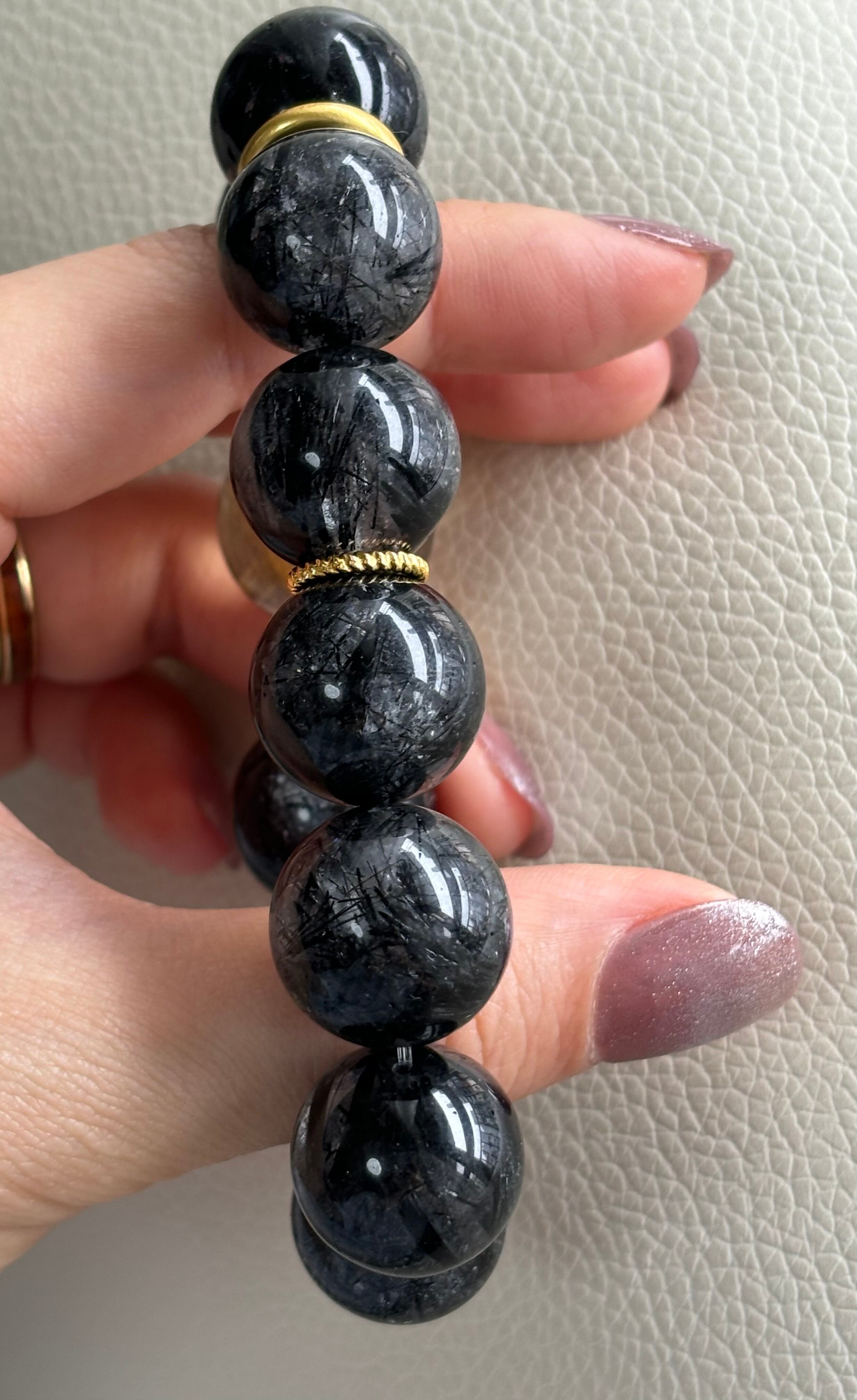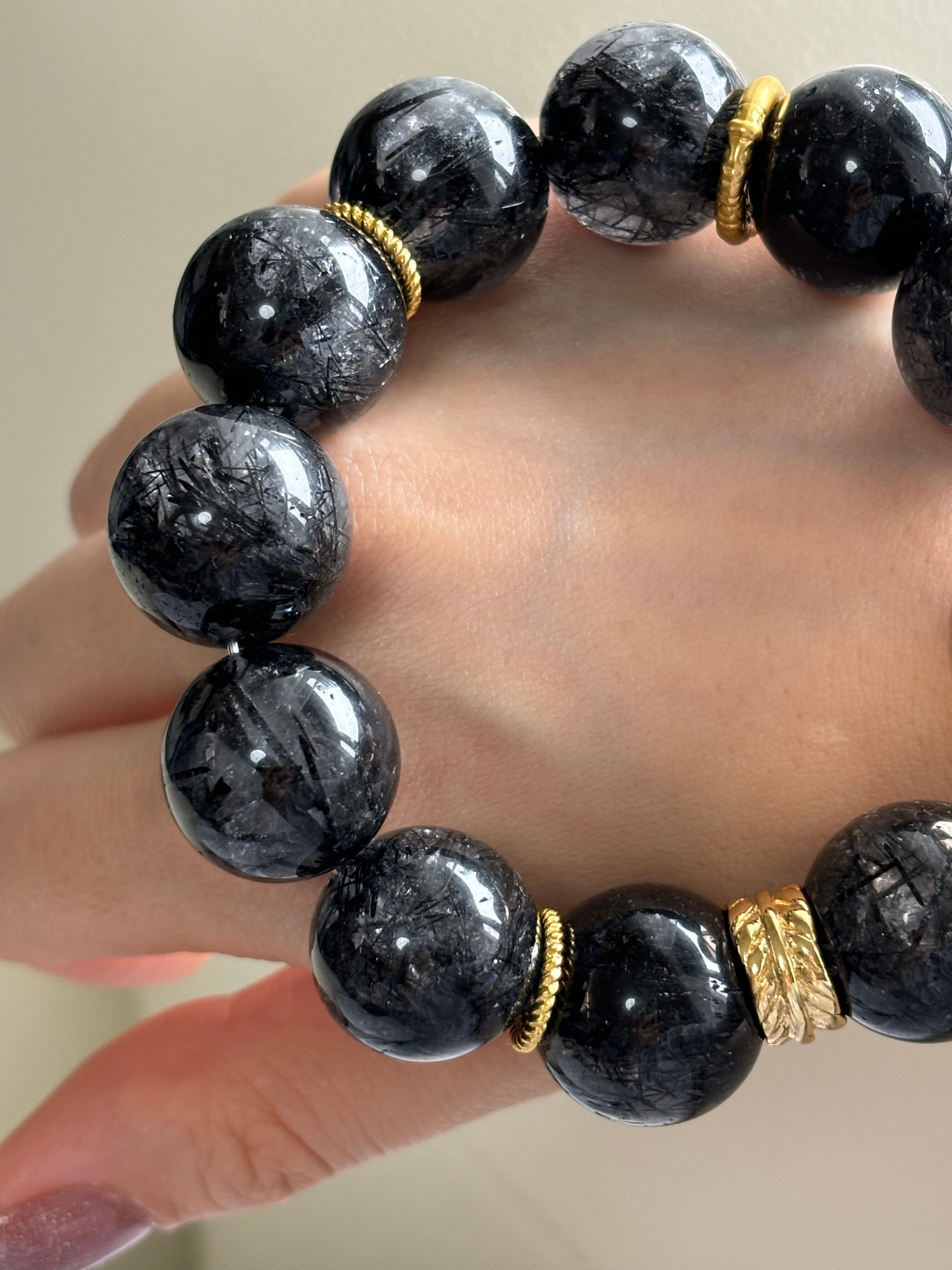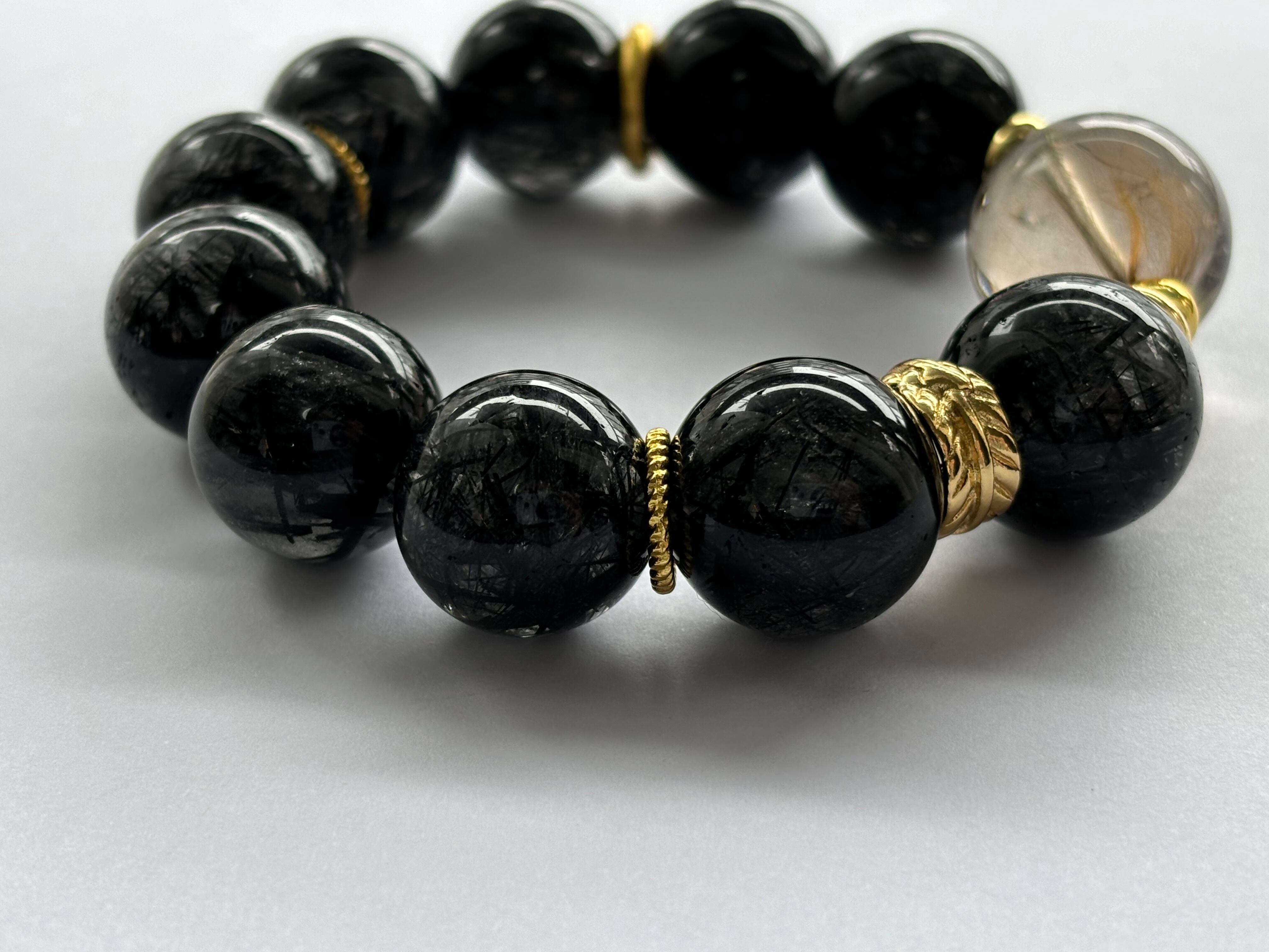 大玉 スモーキールチル ブラックルチル デザインブレスレット