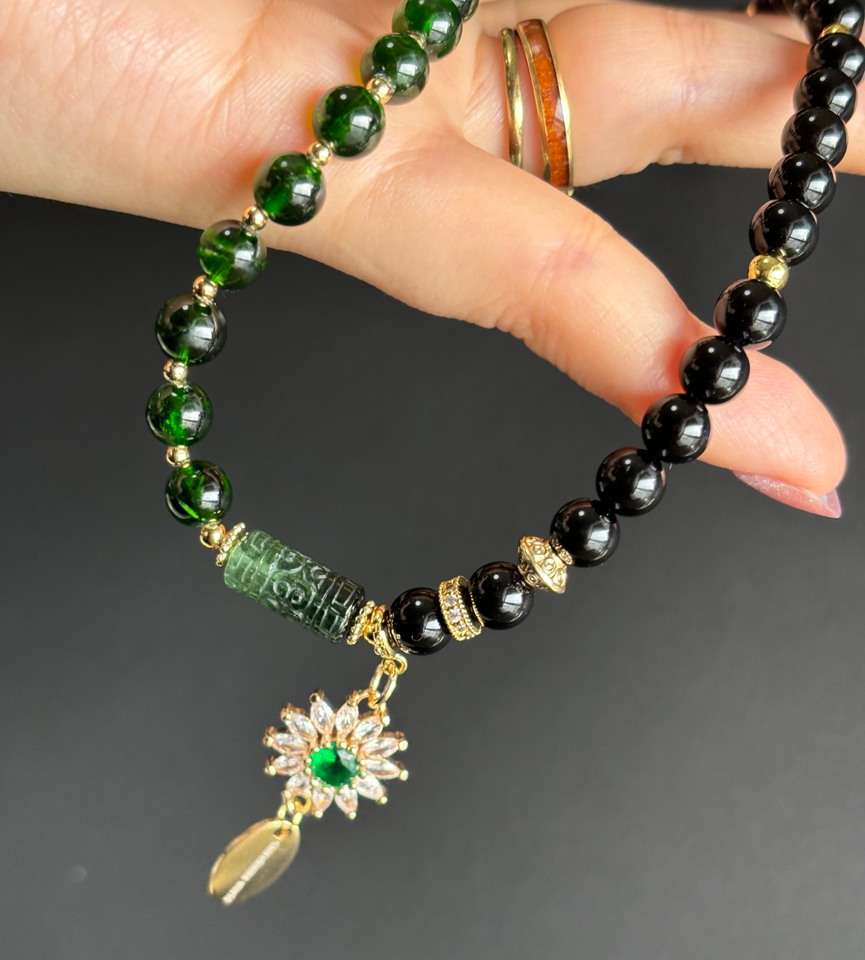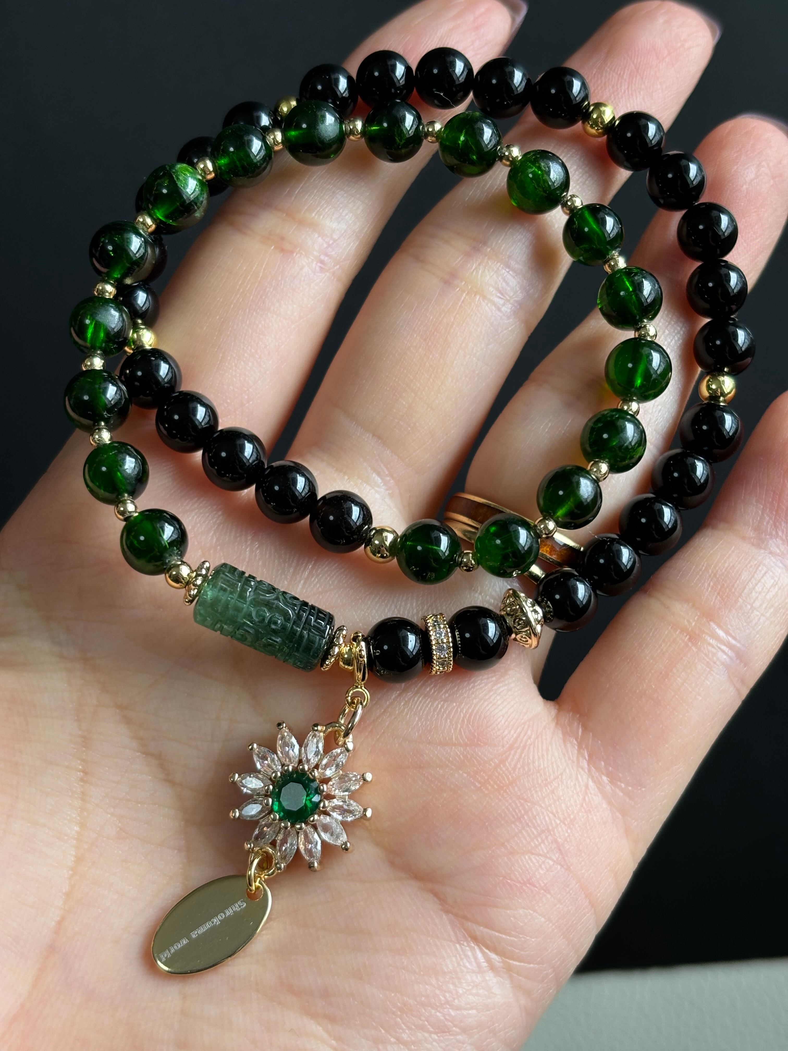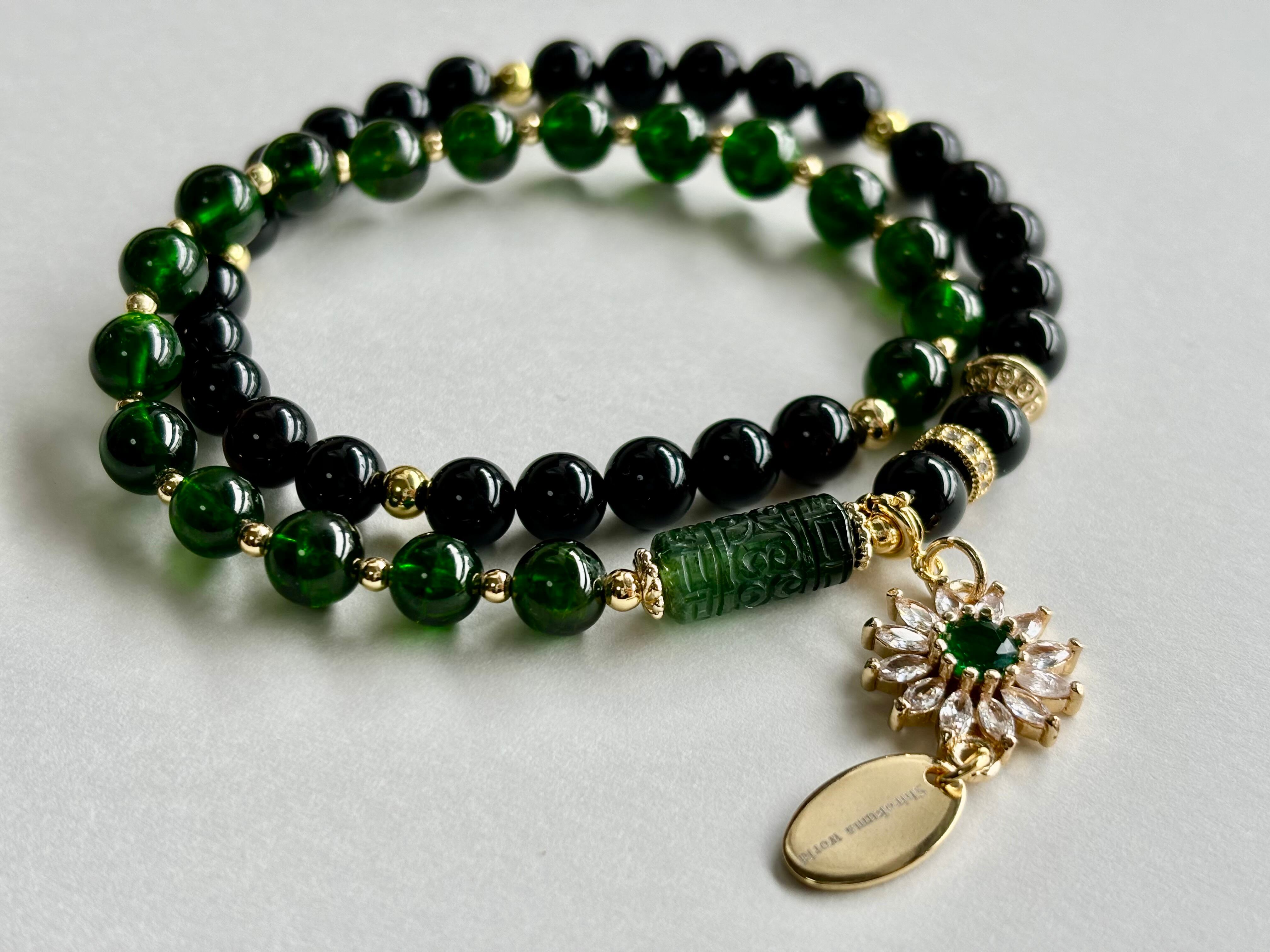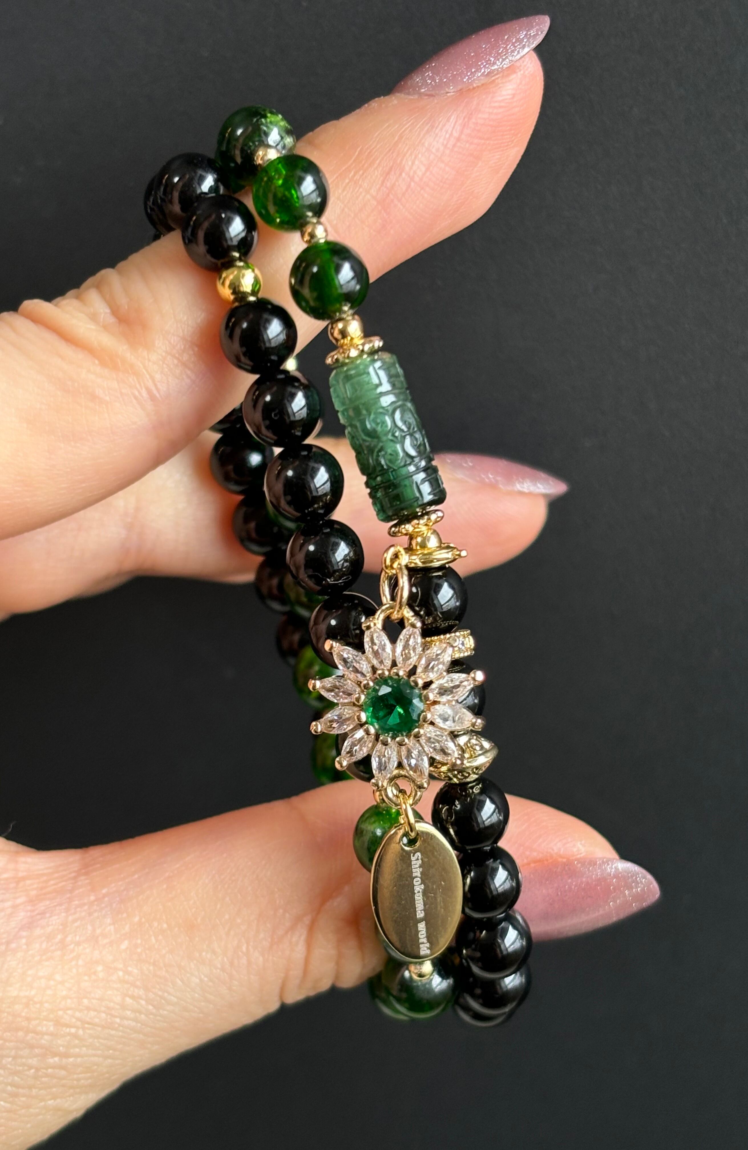 グリーントルマリン回文殊 クロムダイオプサイト モリオン 2連デザインブレスレット
