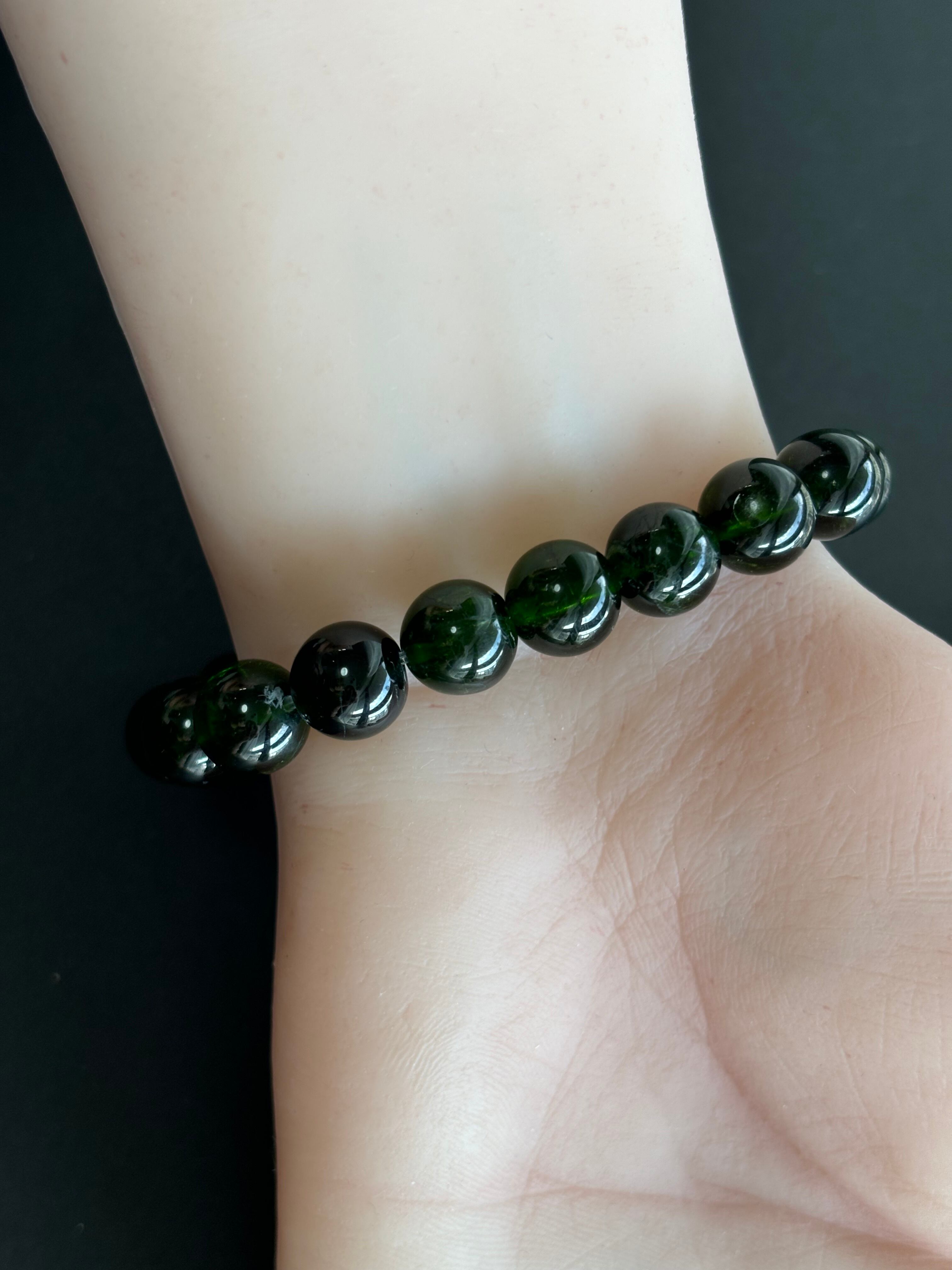 希少な古代の水が揺れる水入り晶珠に宝石品質の約10mmのクロムダイオプサイトのブレスレットです