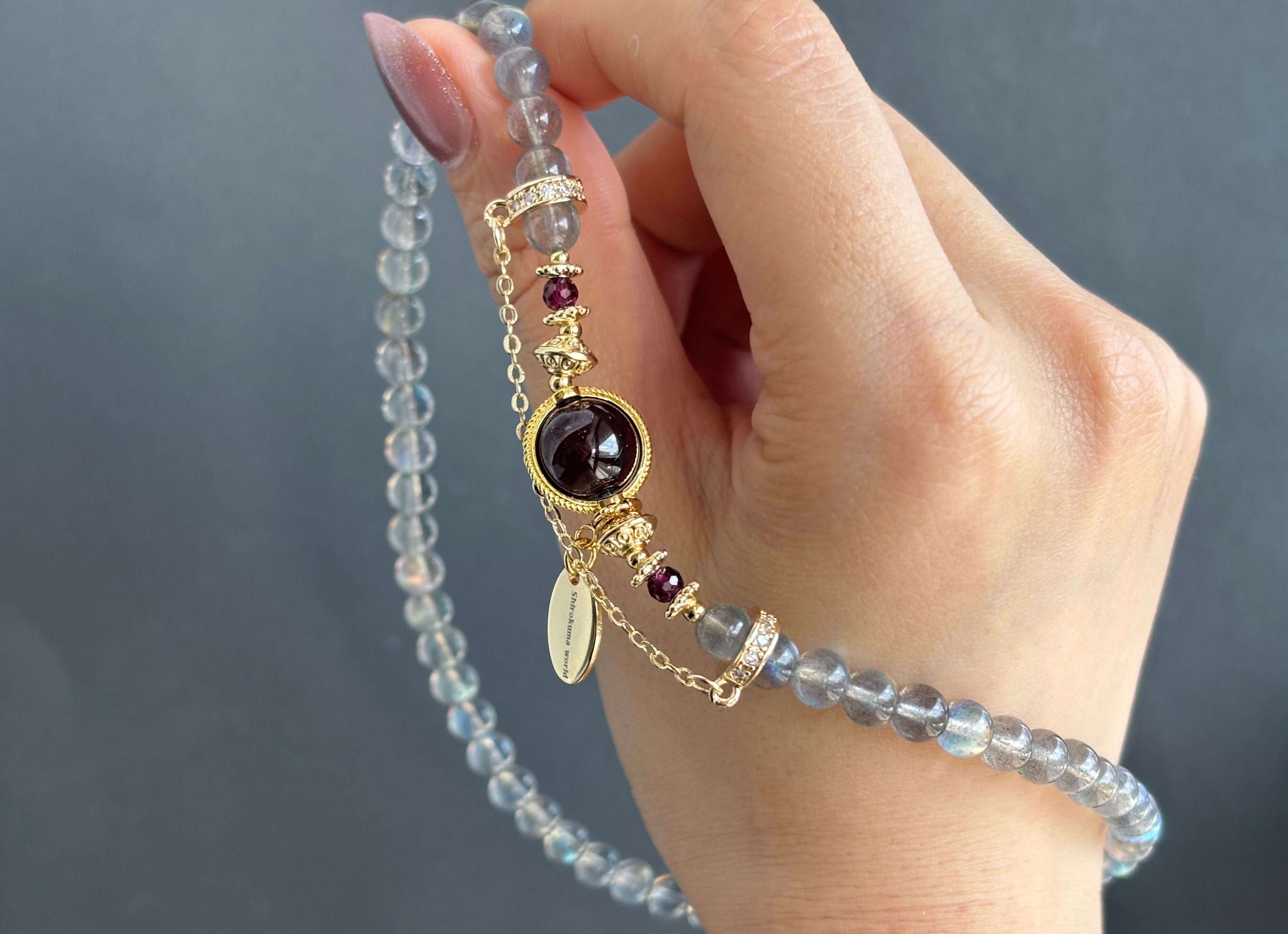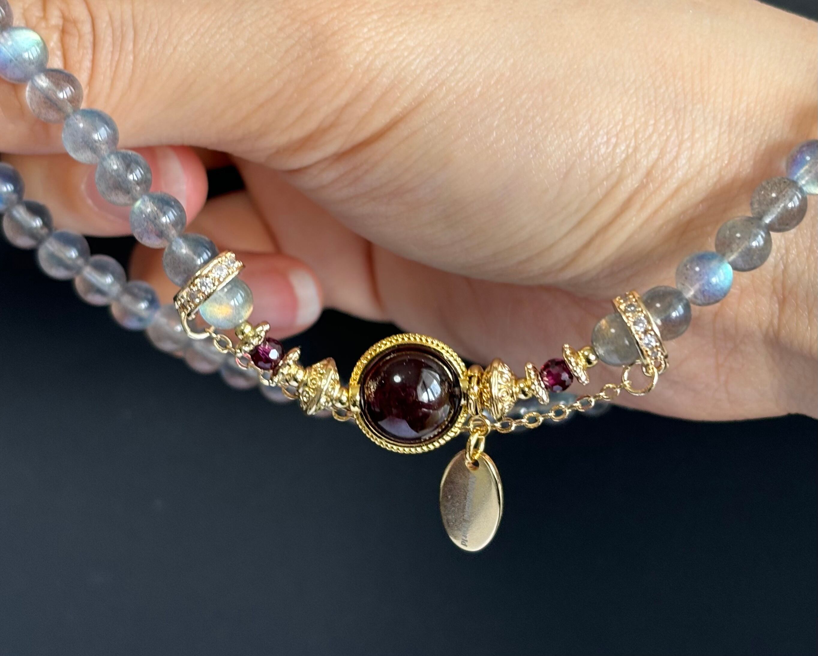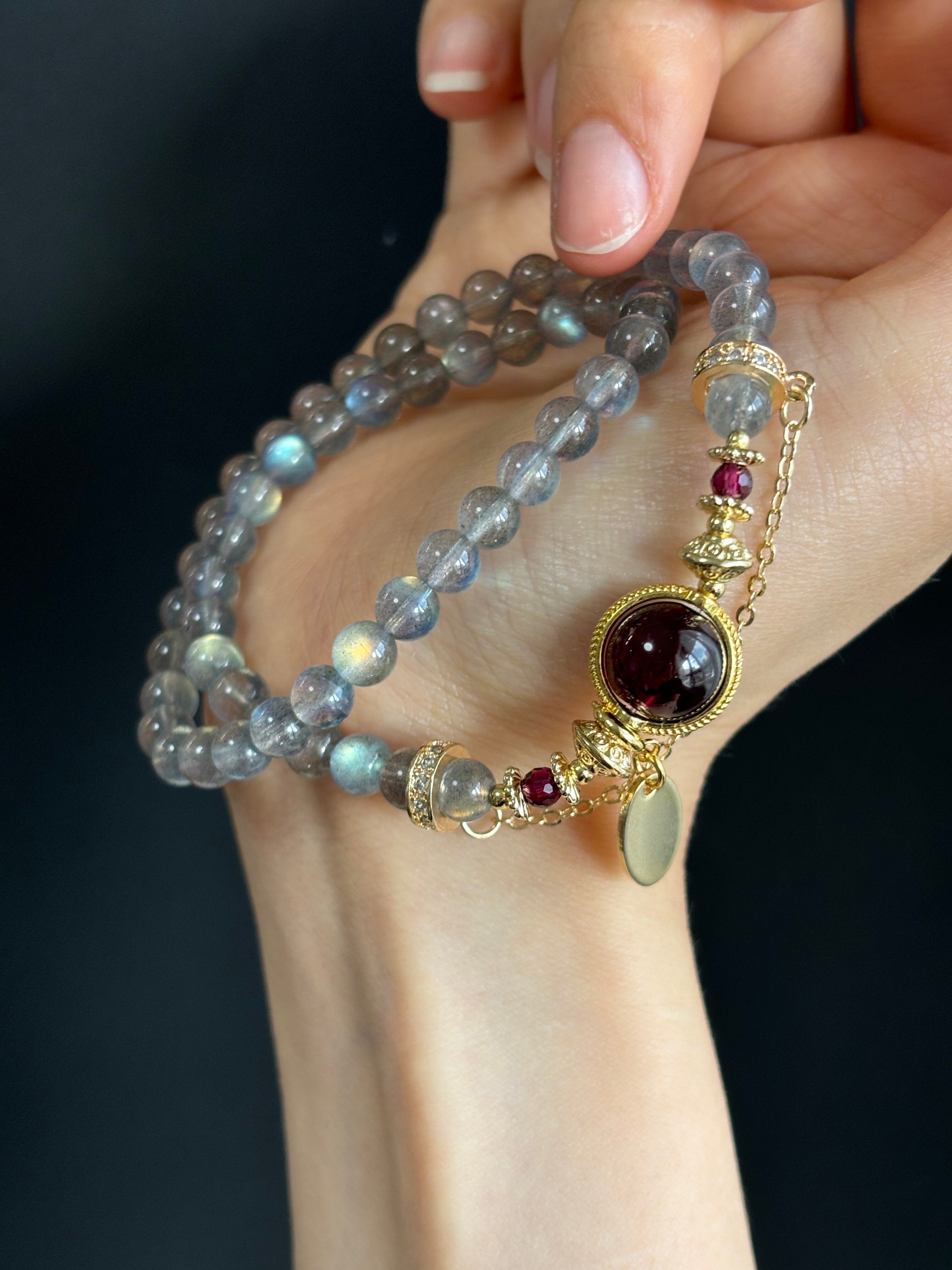 ロードライトガーネット ラブラドライト 2連デザインブレスレット