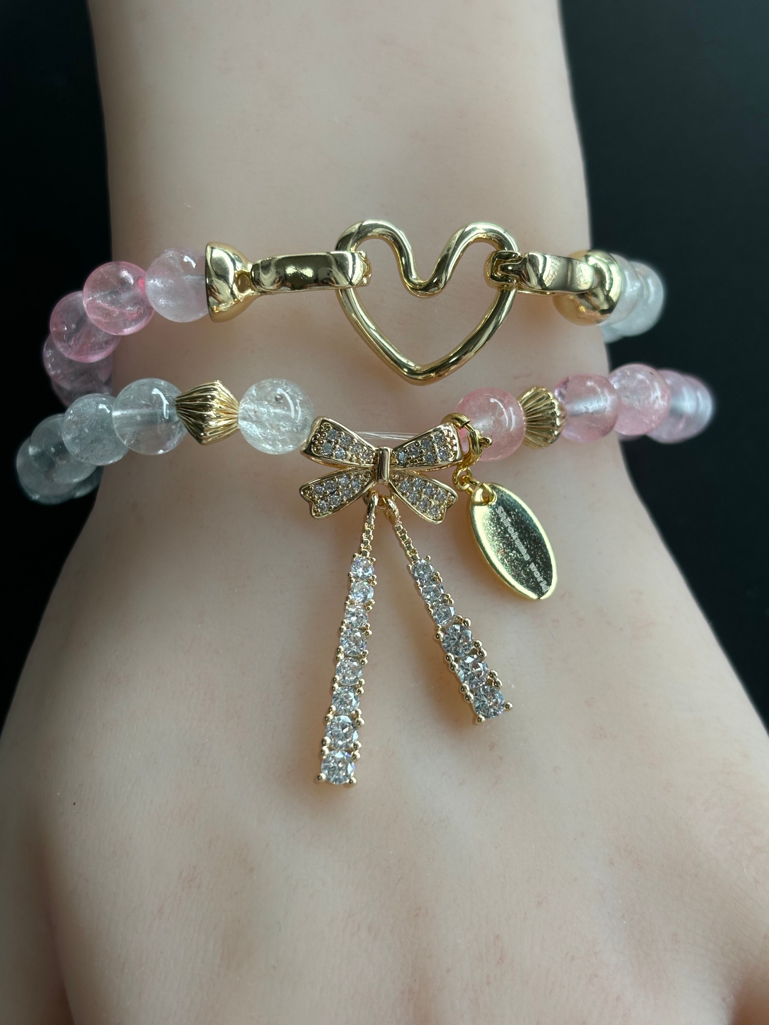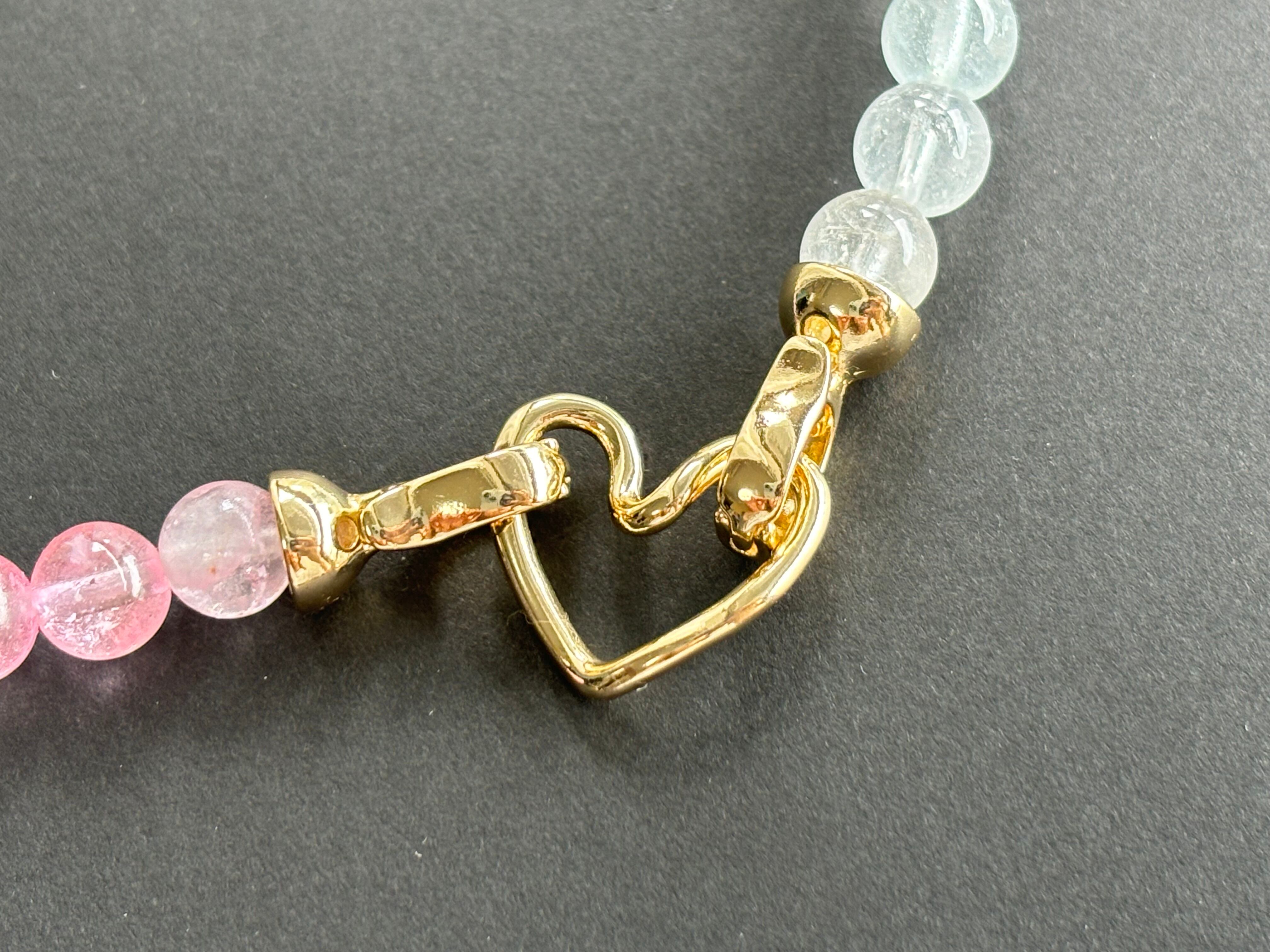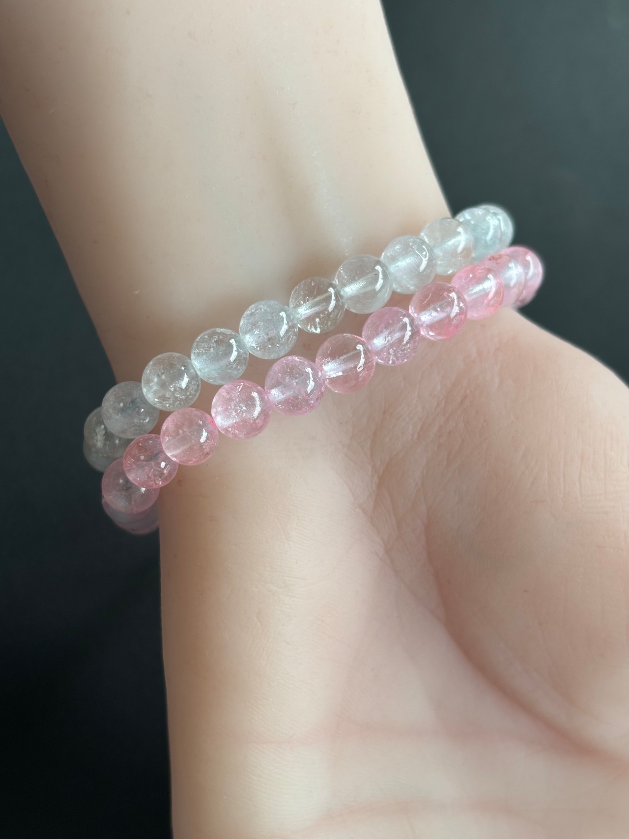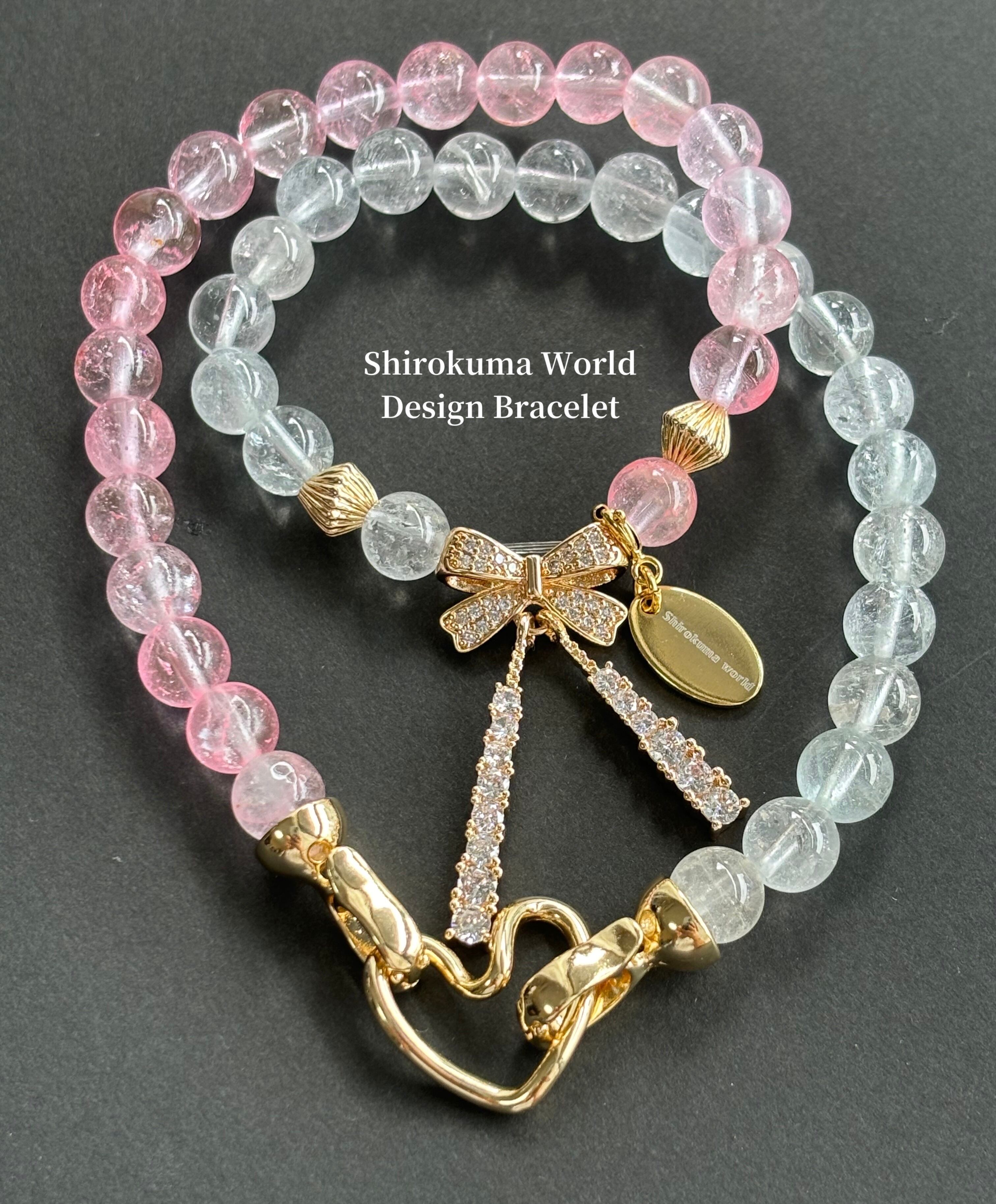 ピンクトパーズとホワイトトパーズの2連デザインブレスレットです