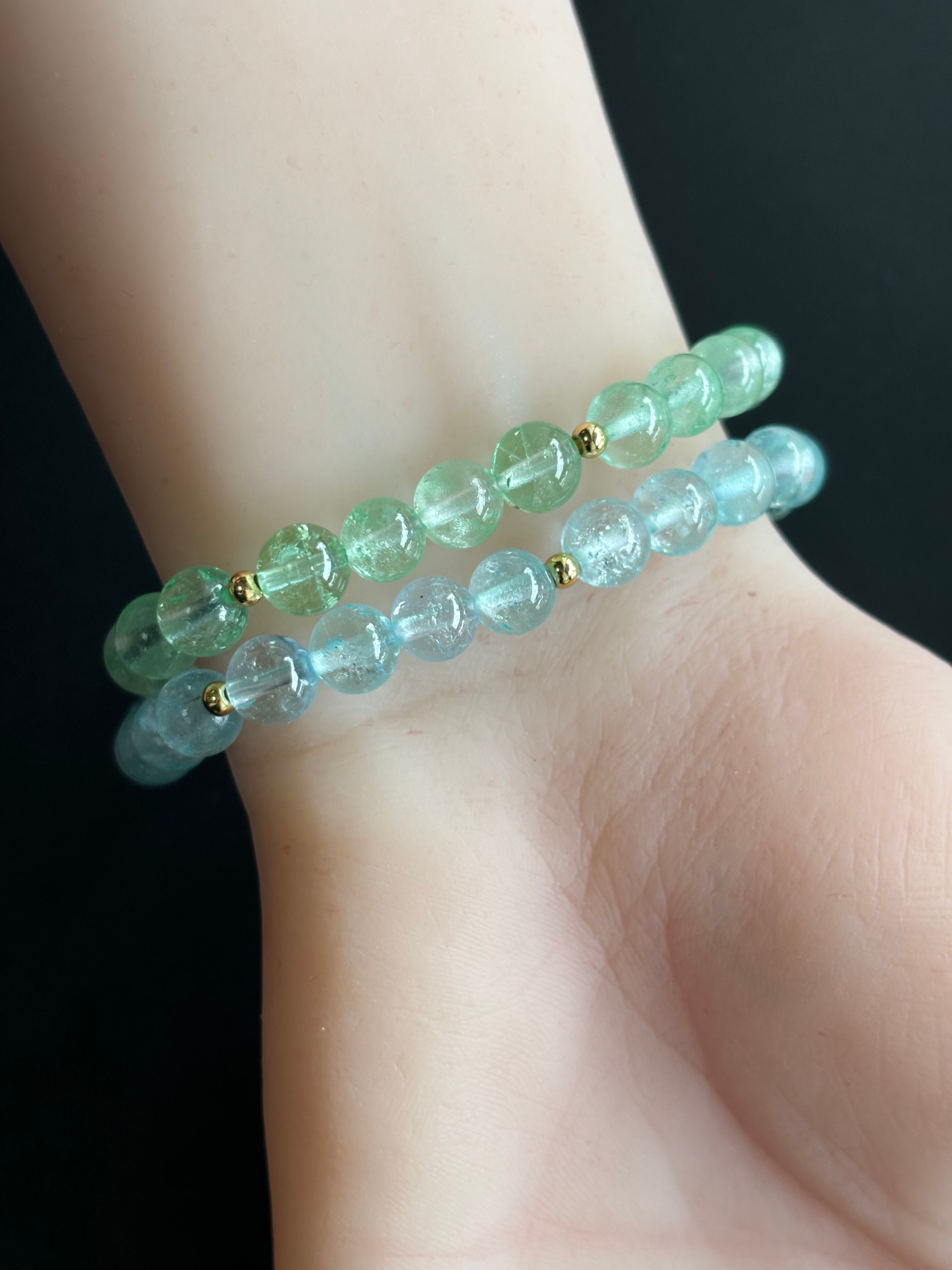 ブルー グリーン ホワイトのトパーズをグラデーションデザインの2連デザインブレスレットです(*´∀`*)