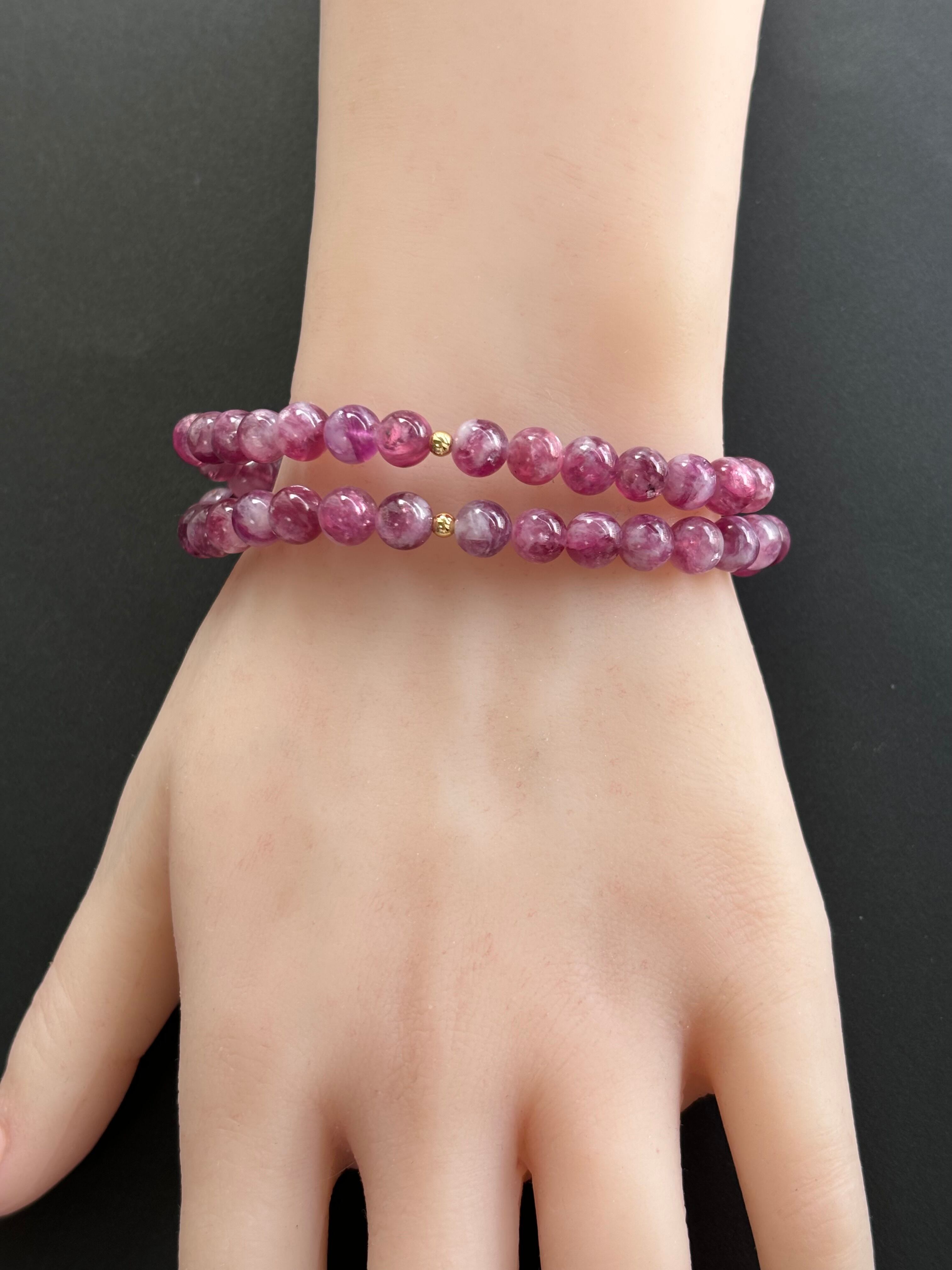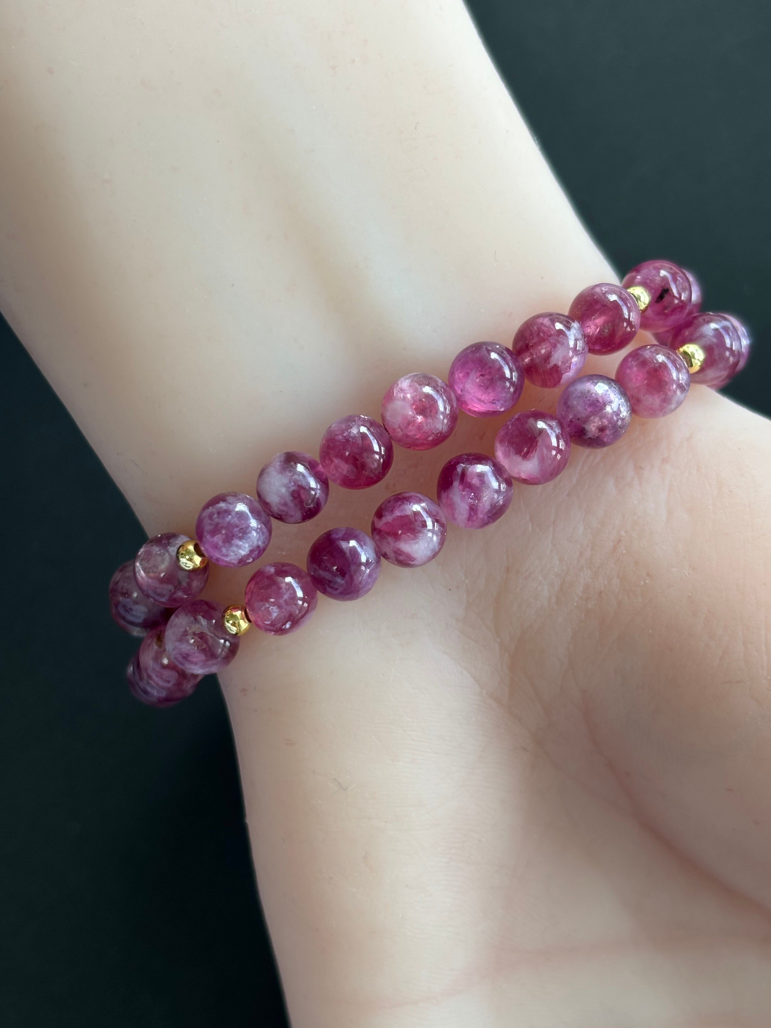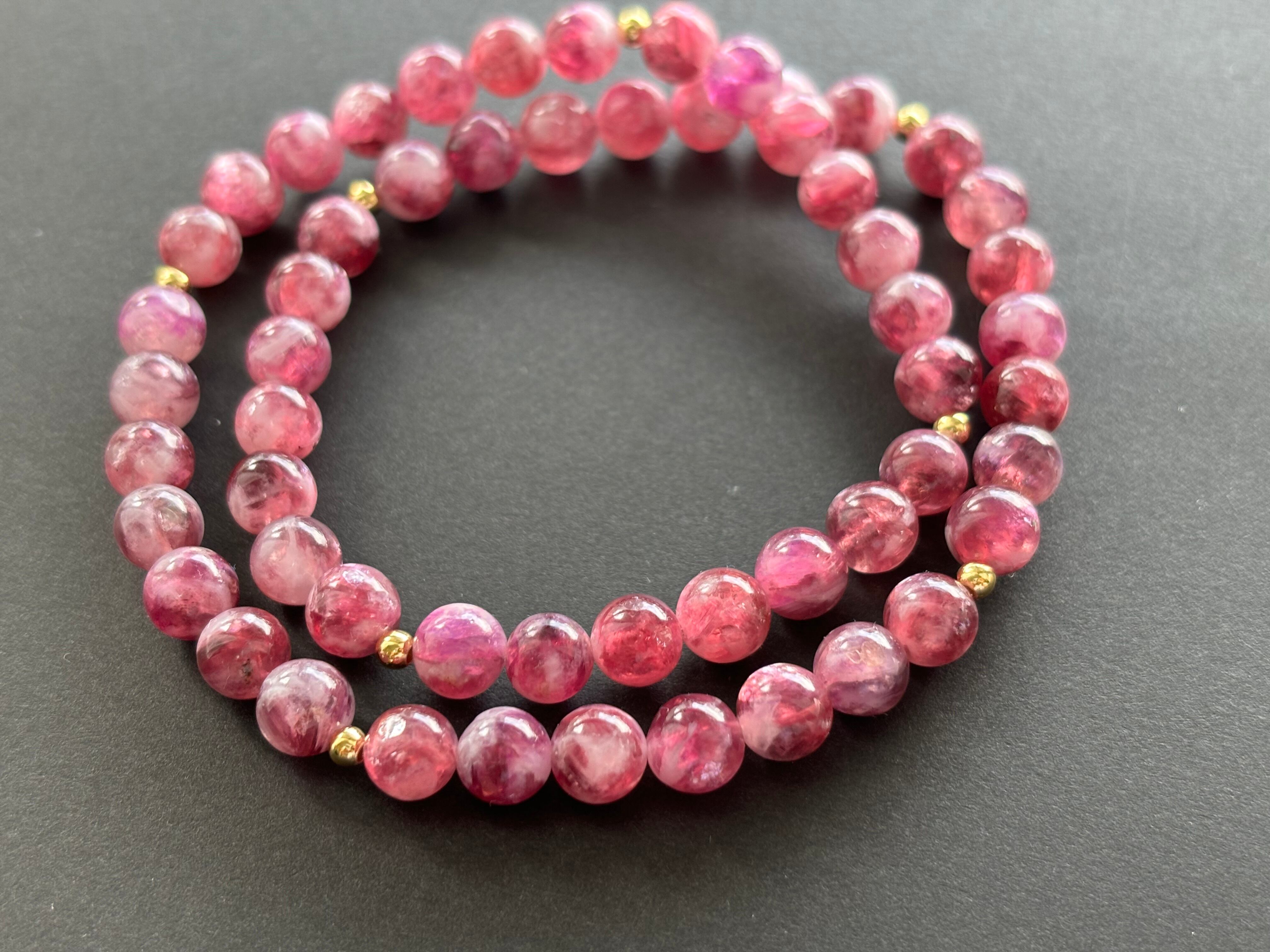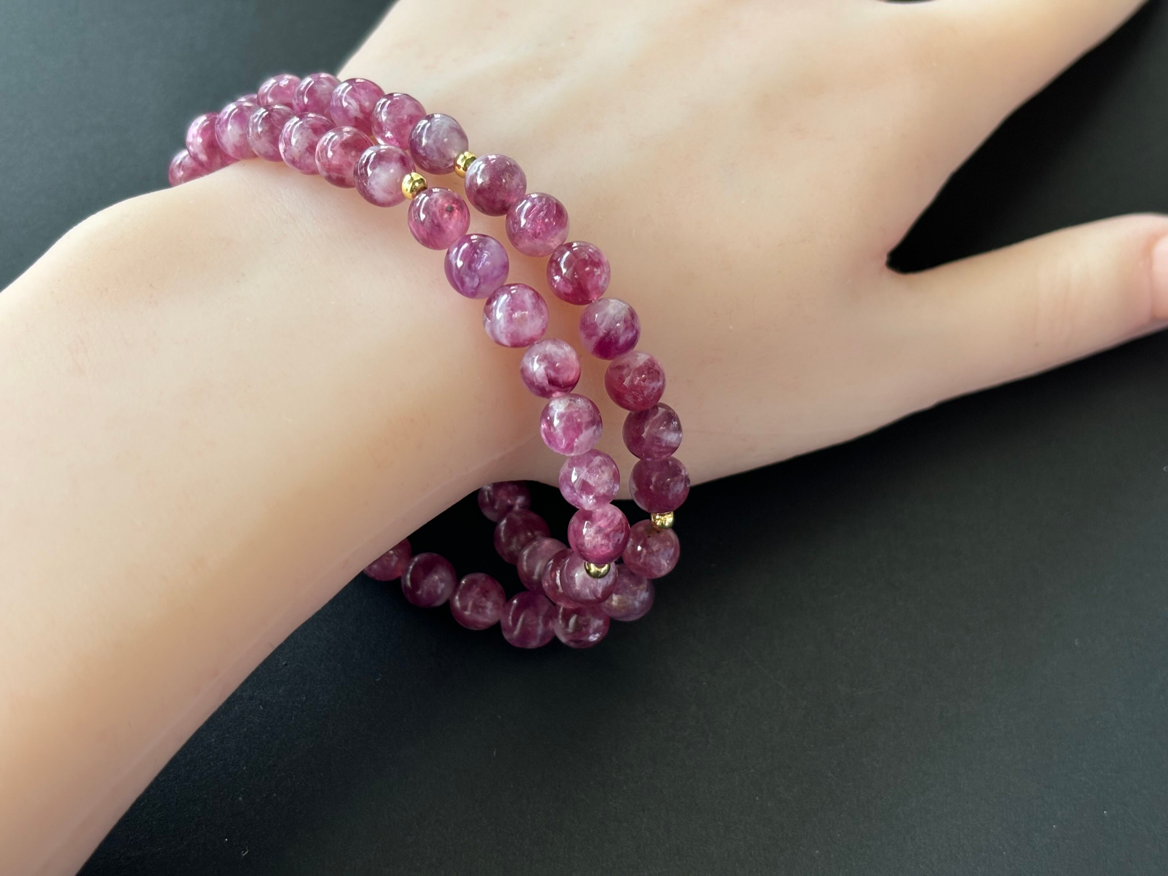 ピンクレピドライトインクォーツ ピンクマイカ 2連デザインブレスレット