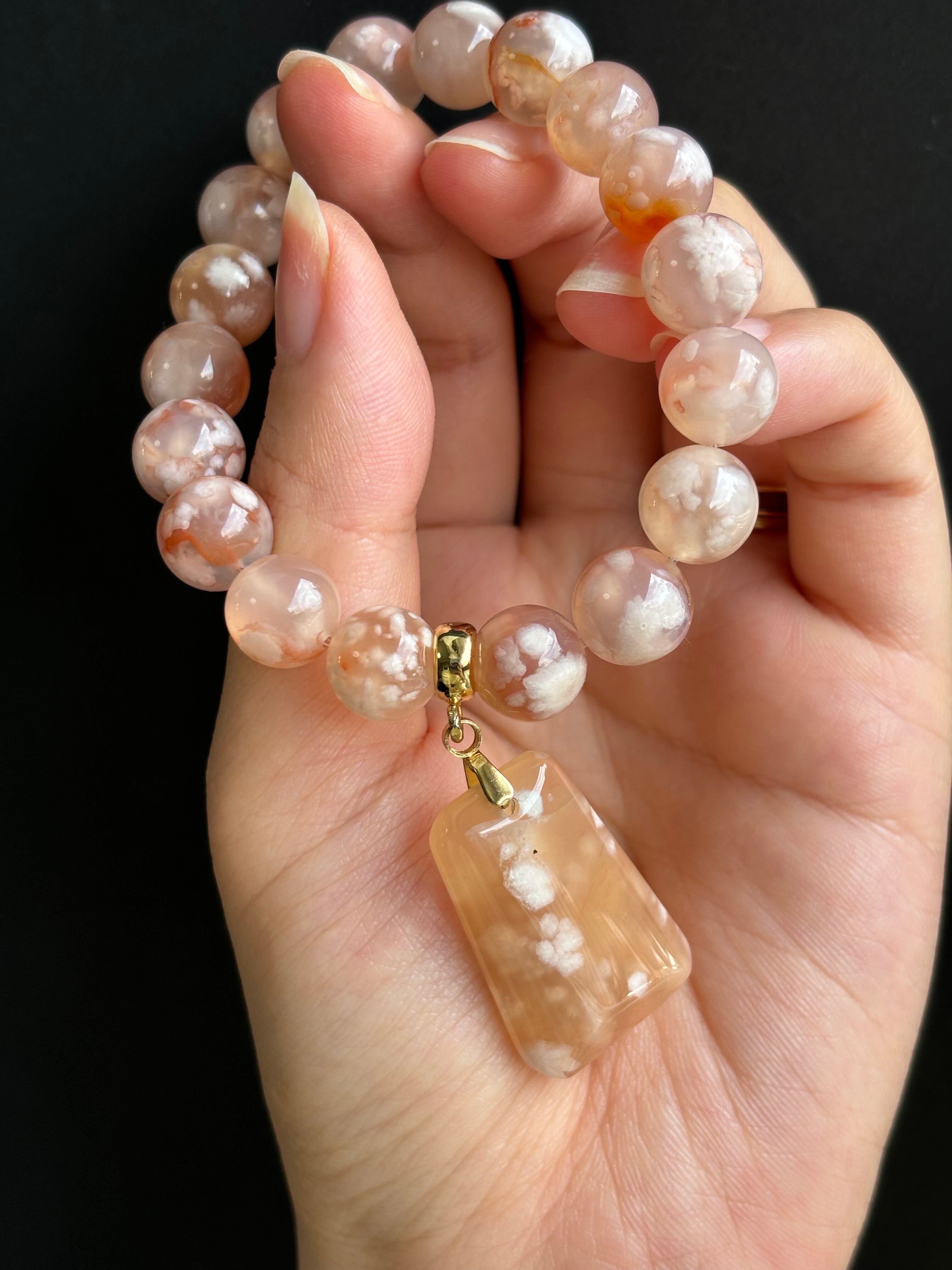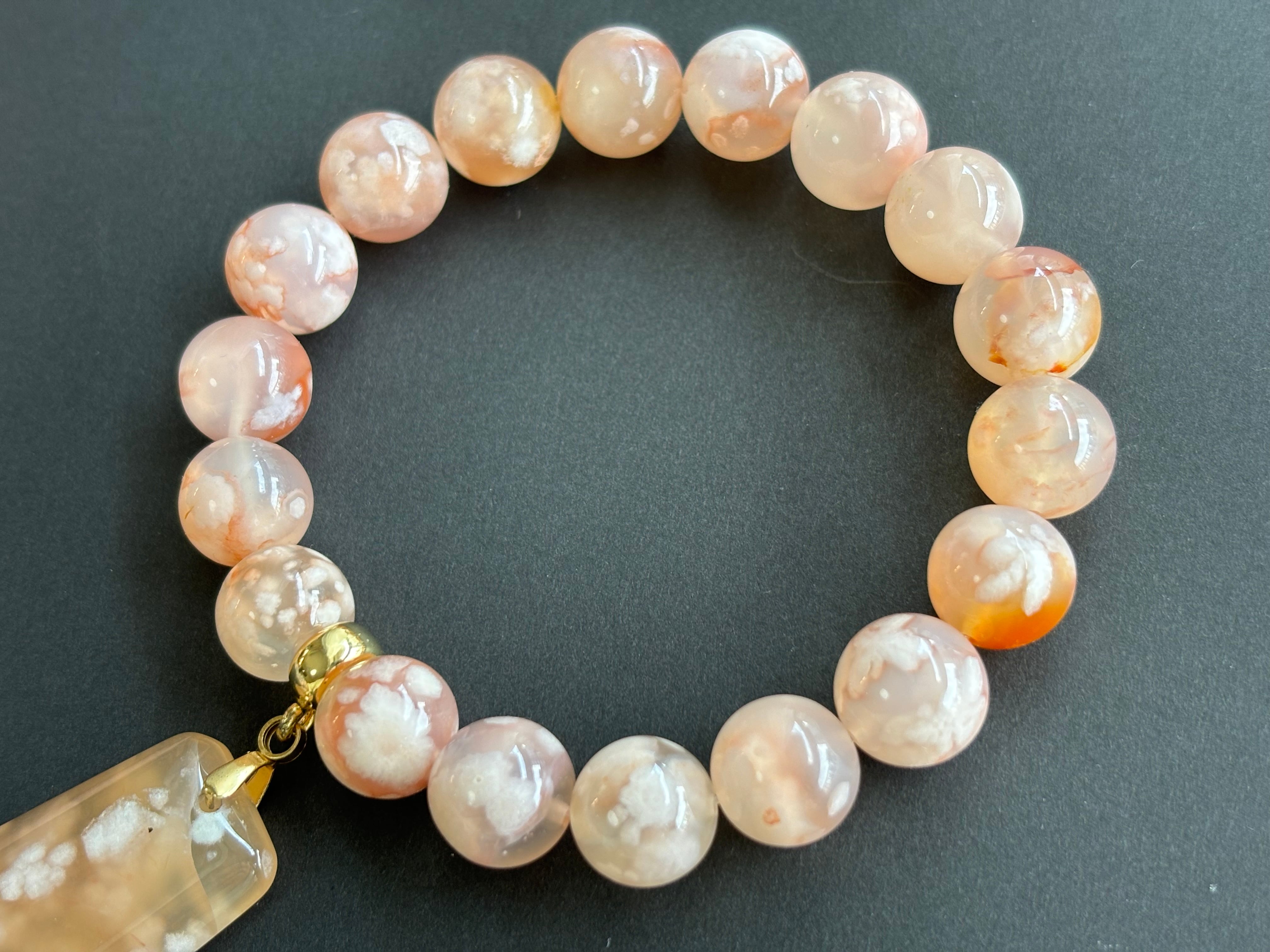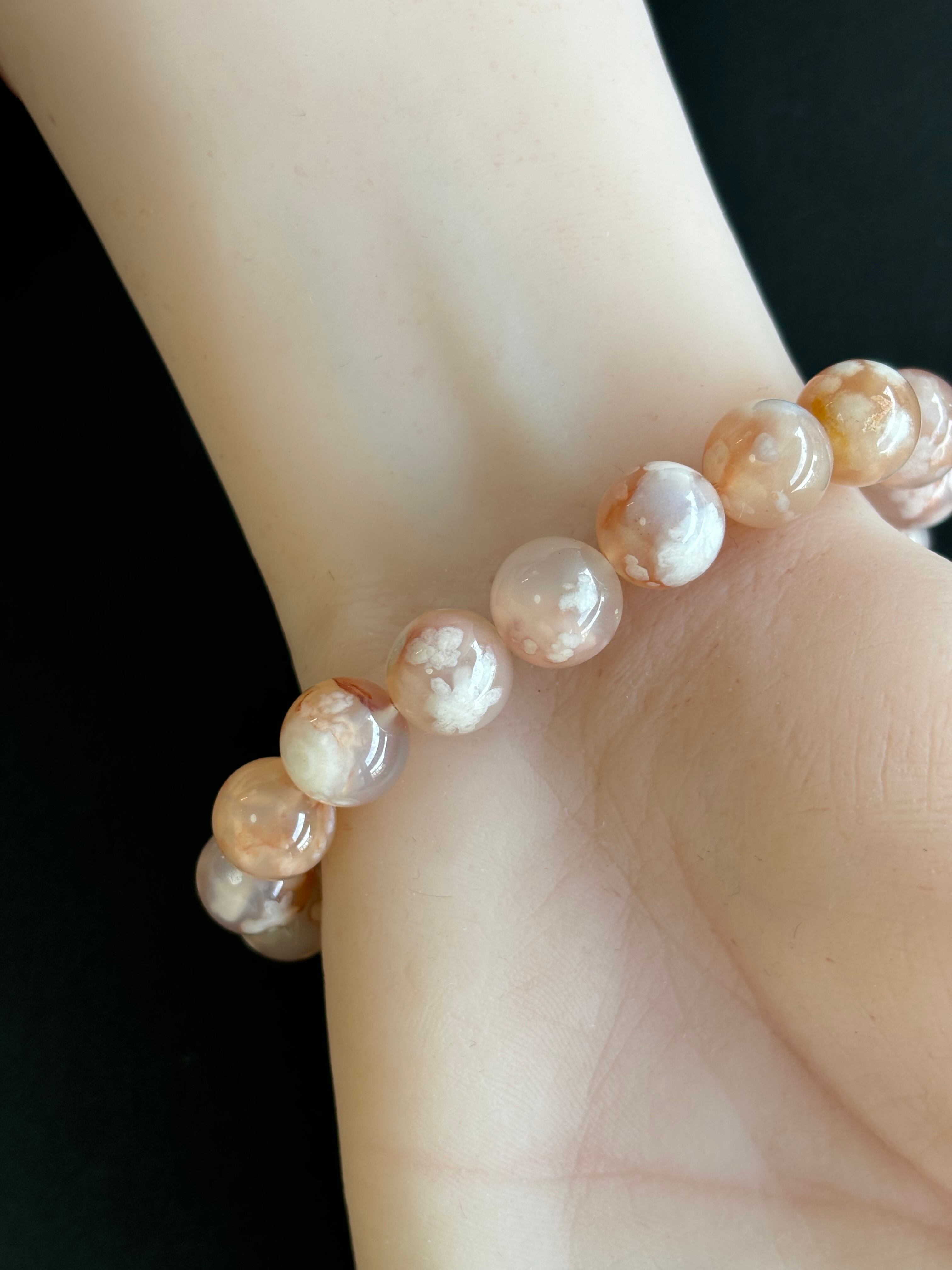 花びら模様が美しくピンクも濃く透明感高い高品質の桜瑪瑙のブレスレットです。