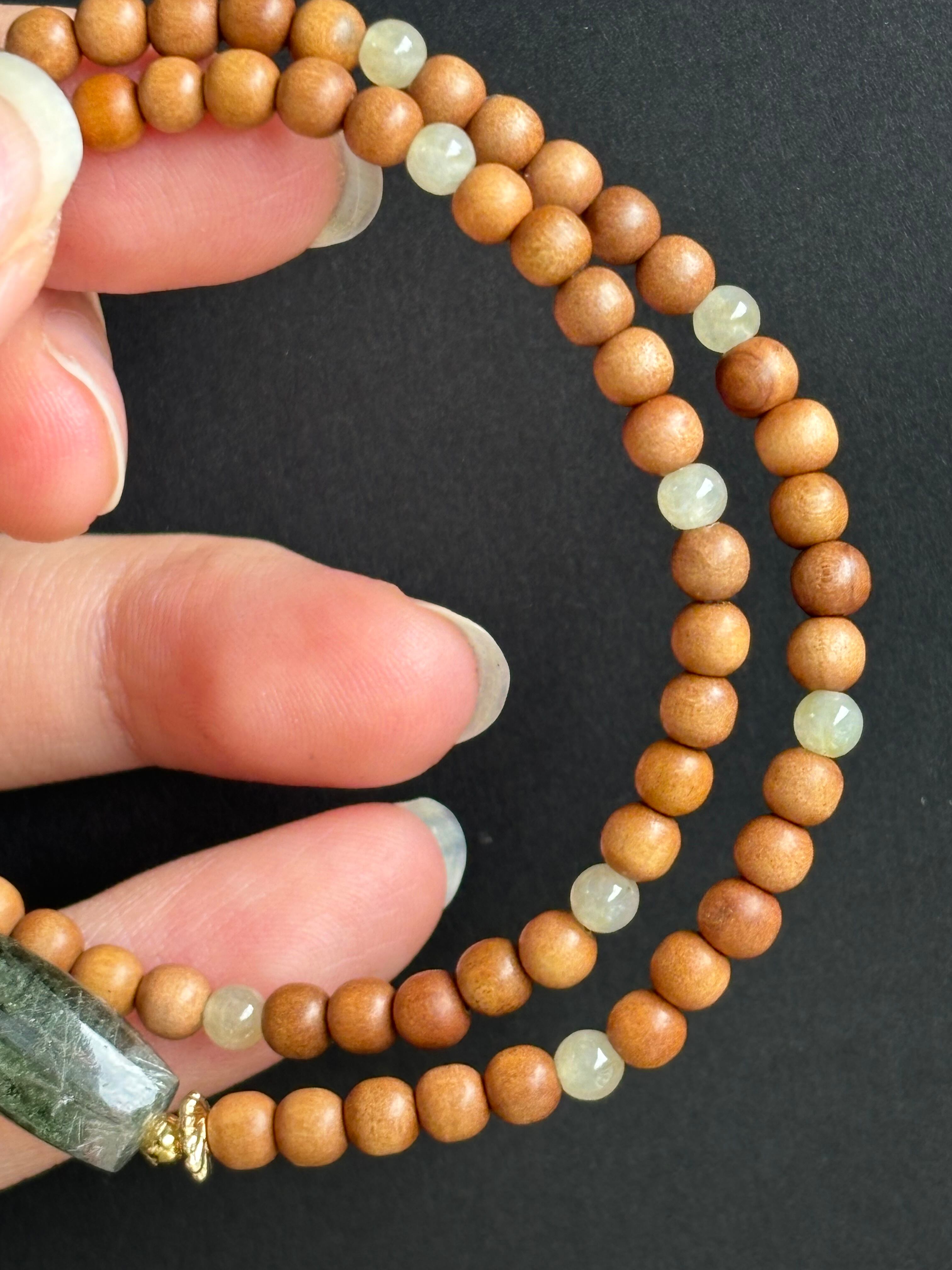ガネーシュヒマールバレルビーズ 香木老山白檀 ミャンマー翡翠 2連デザインブレスレット