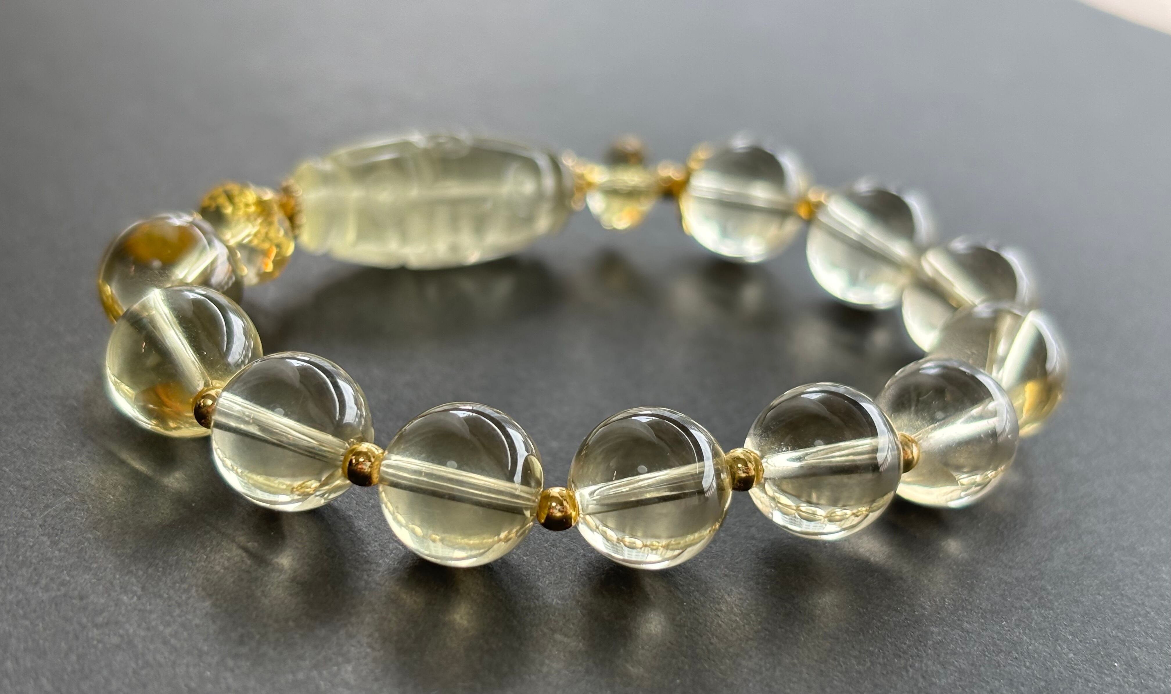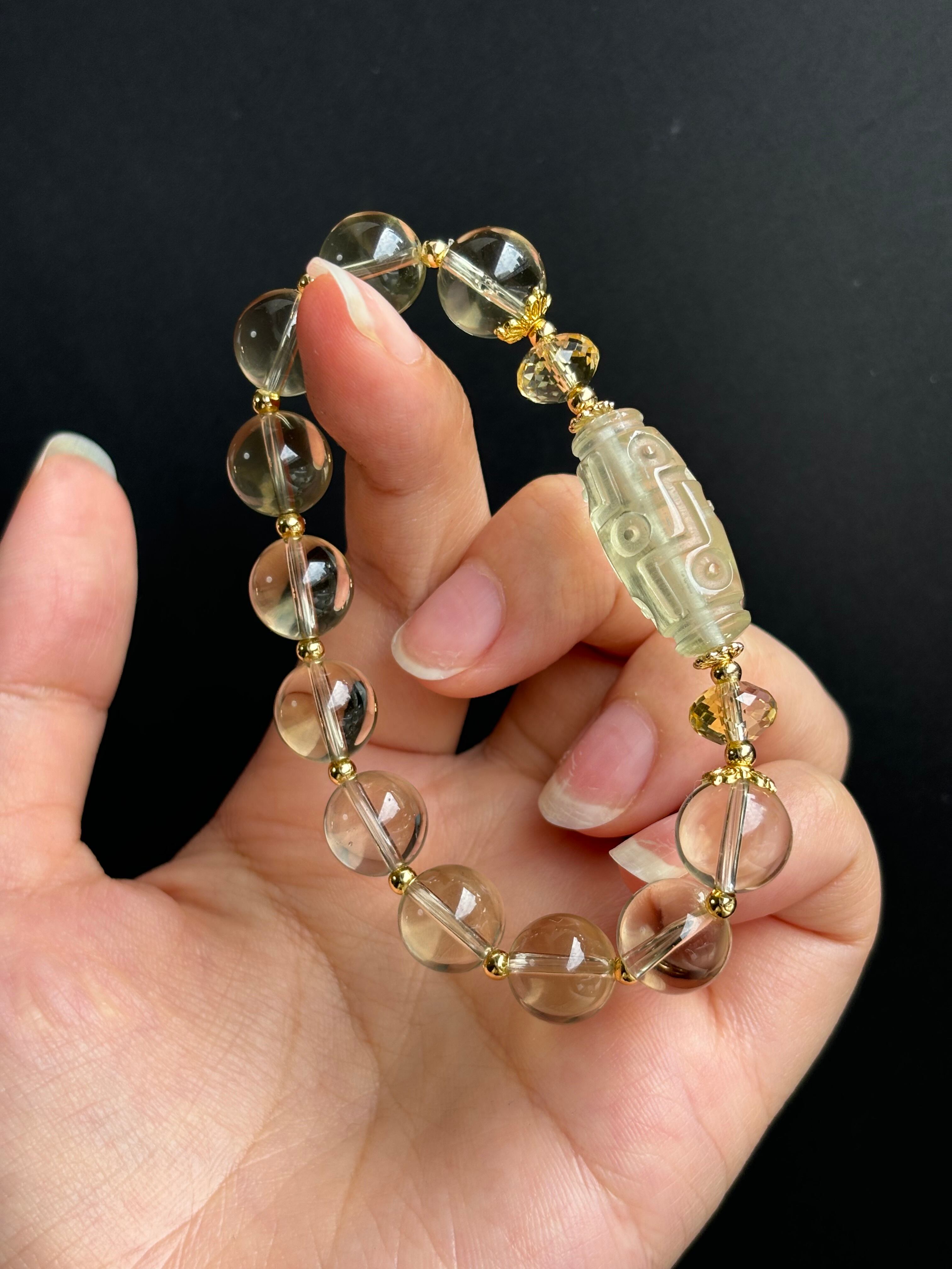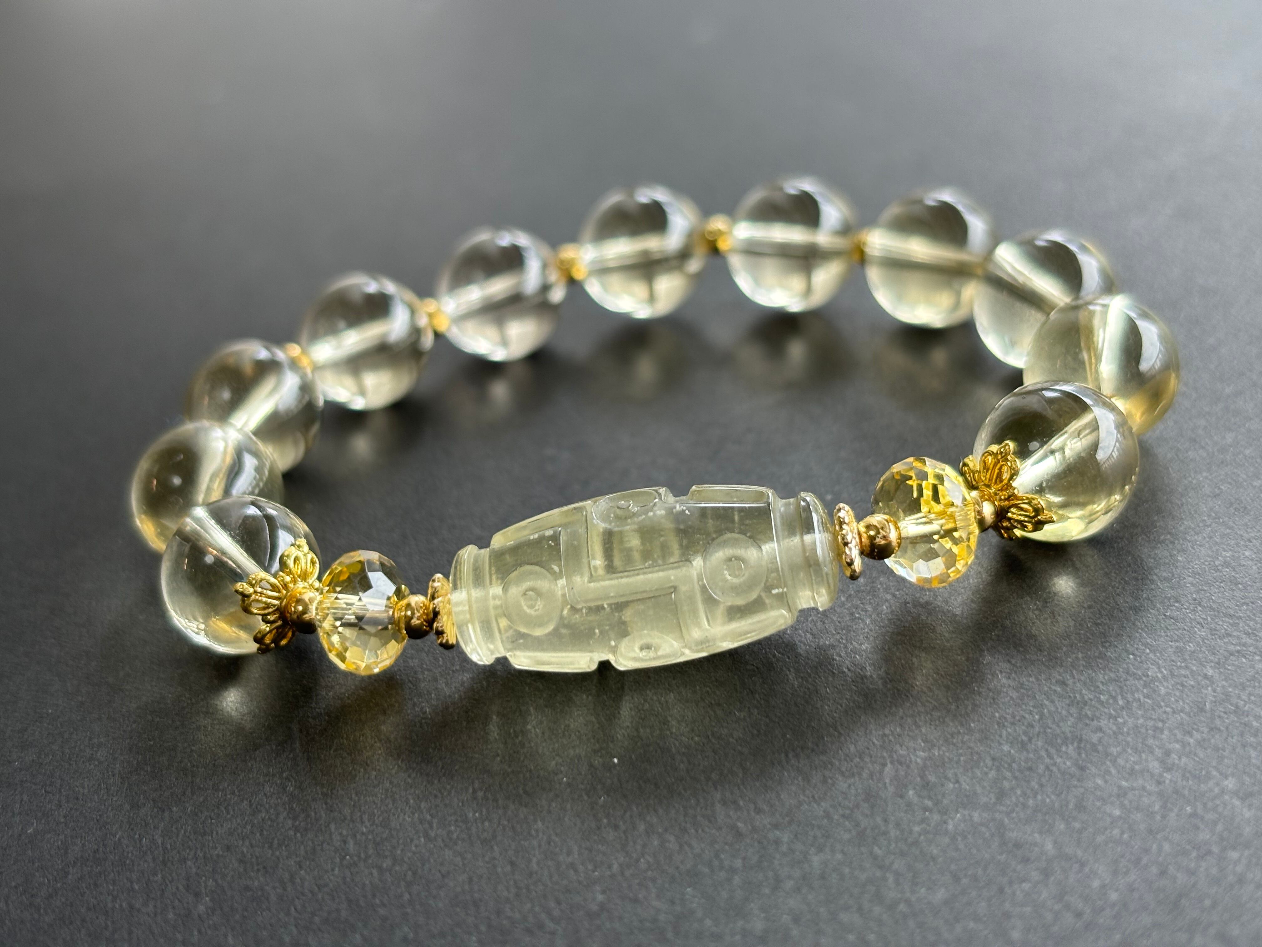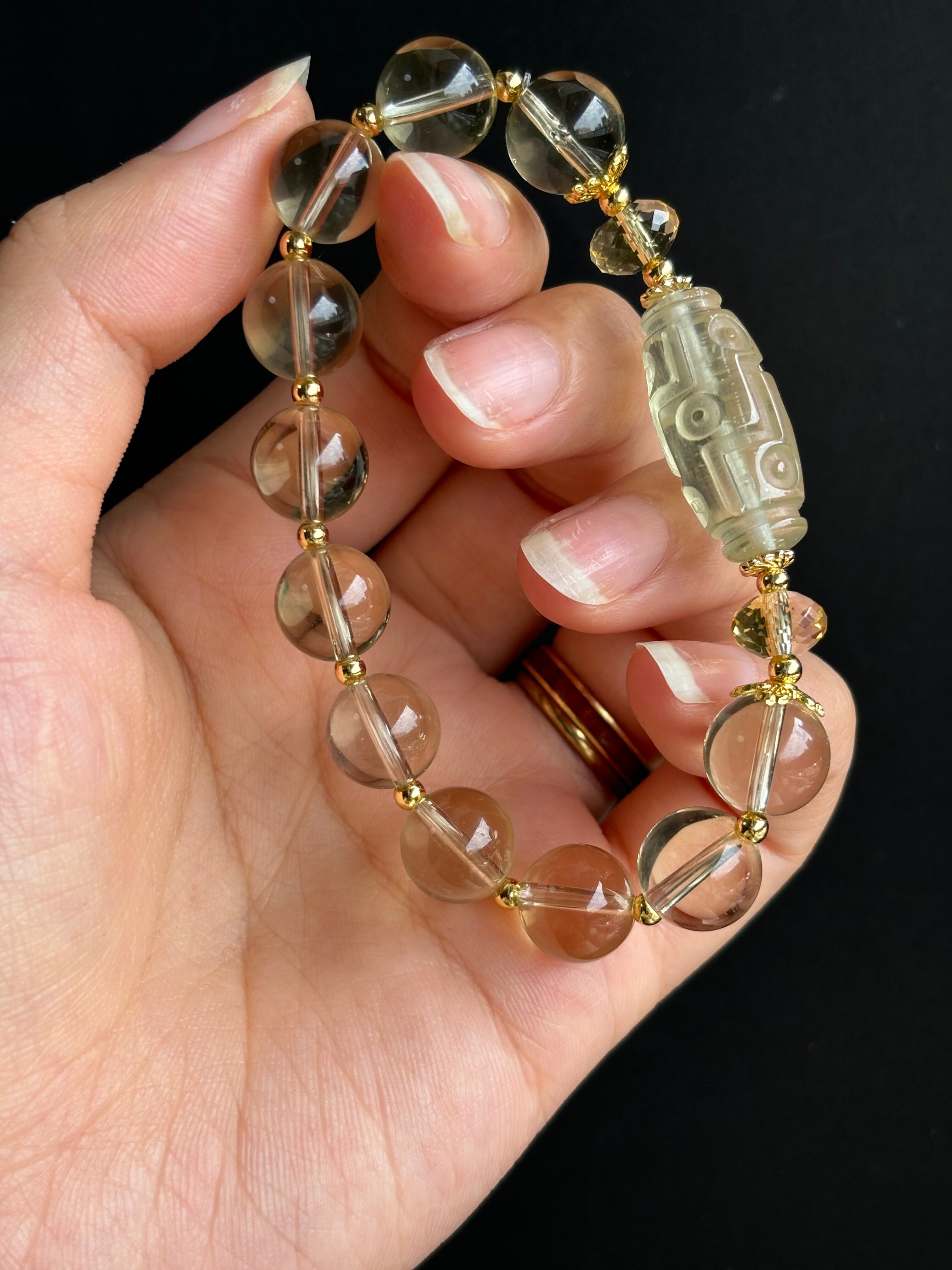 リビアングラス九眼天珠 オウロベルデ 宝石カットシトリン デザインブレスレット