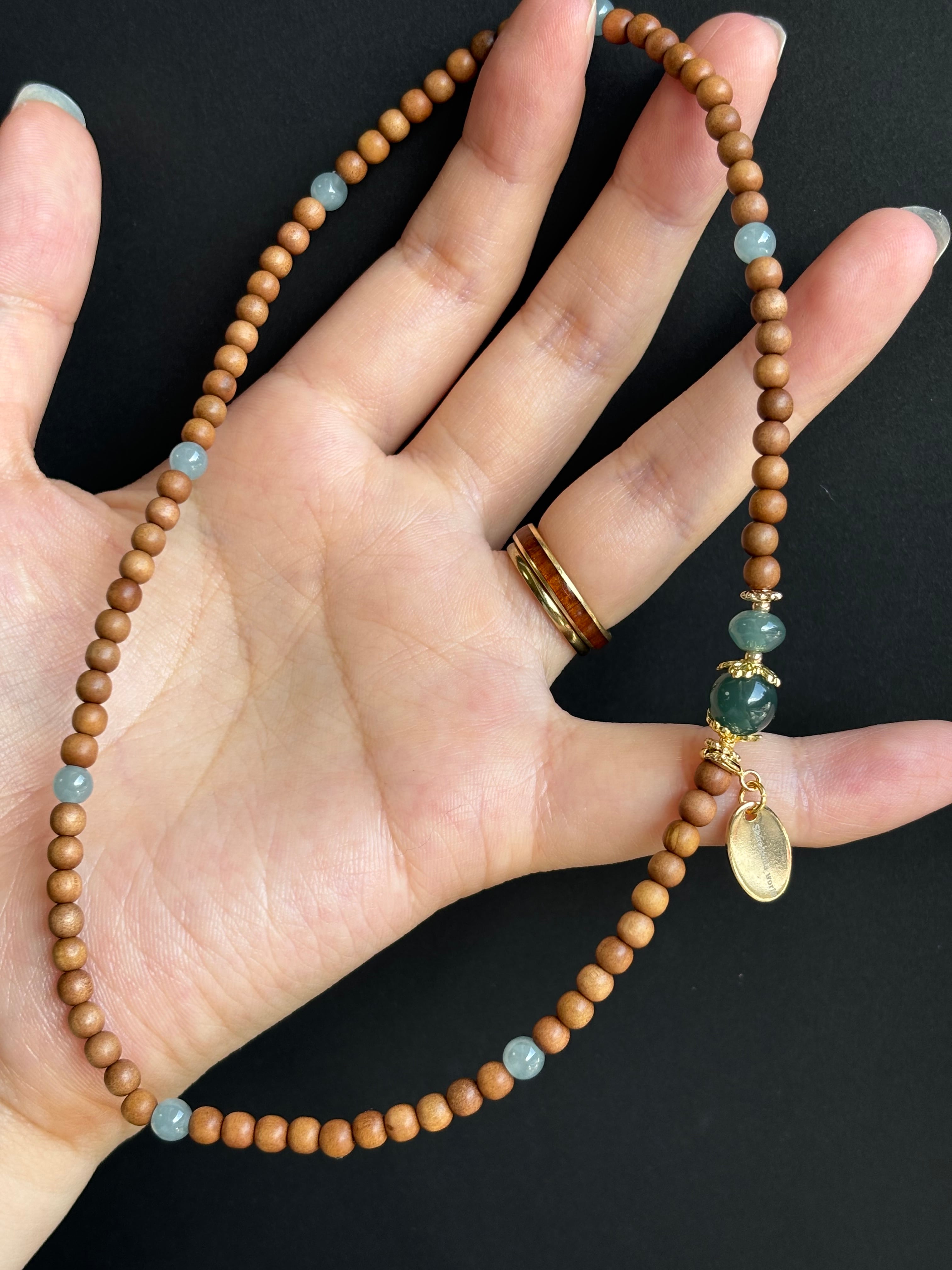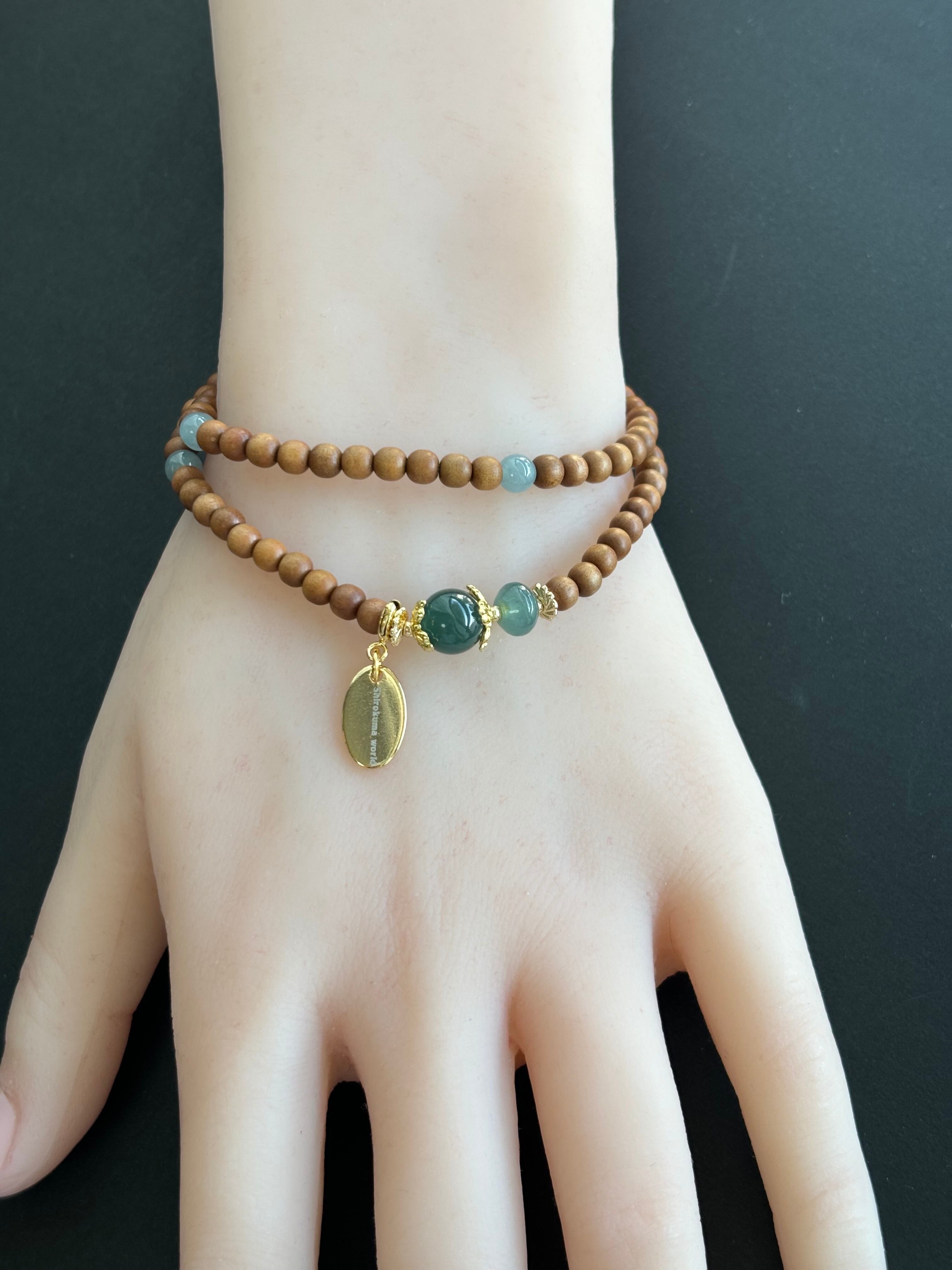 グアテマラ翡翠 香木老山白檀 香木 2連デザインブレスレット