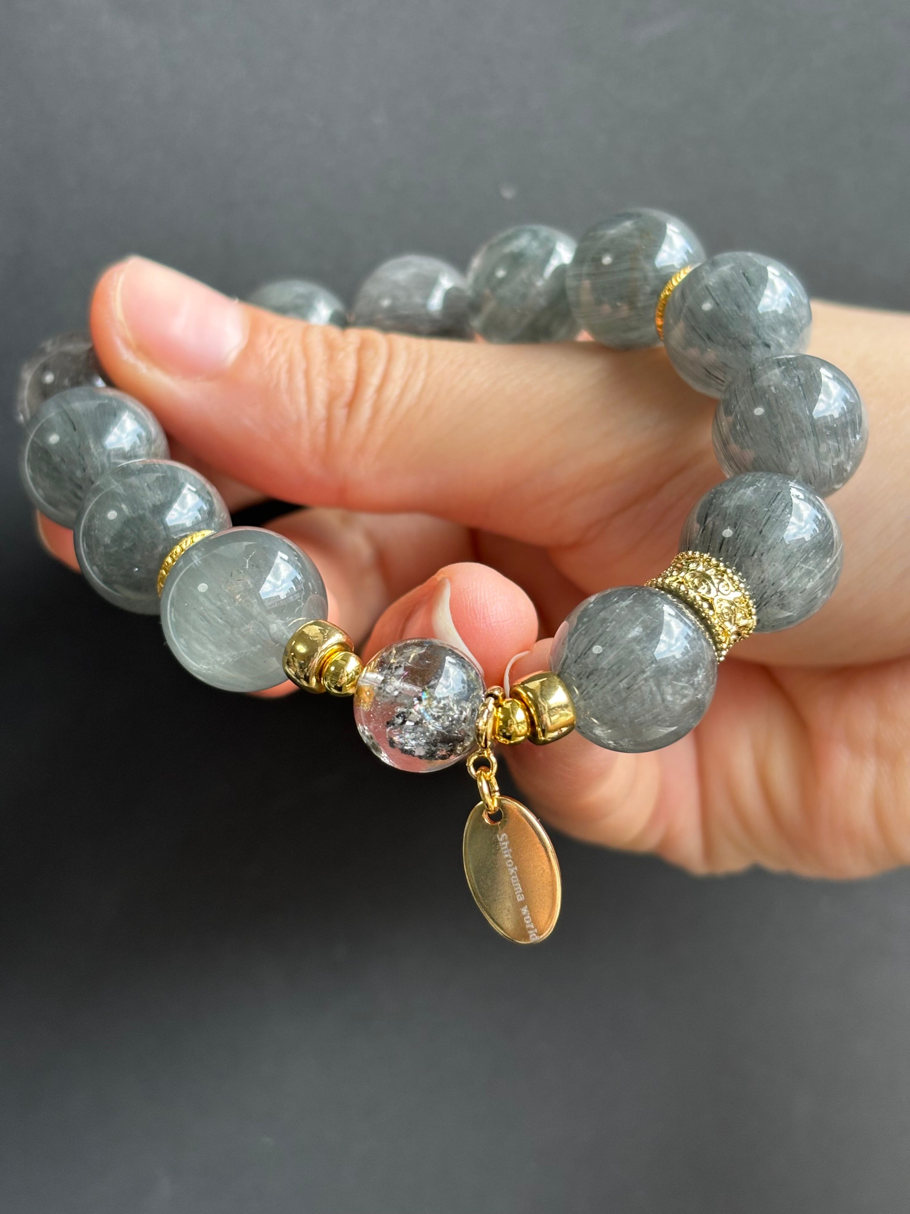 水入り水晶 グレーサゲニティッククォーツ デザインブレスレット