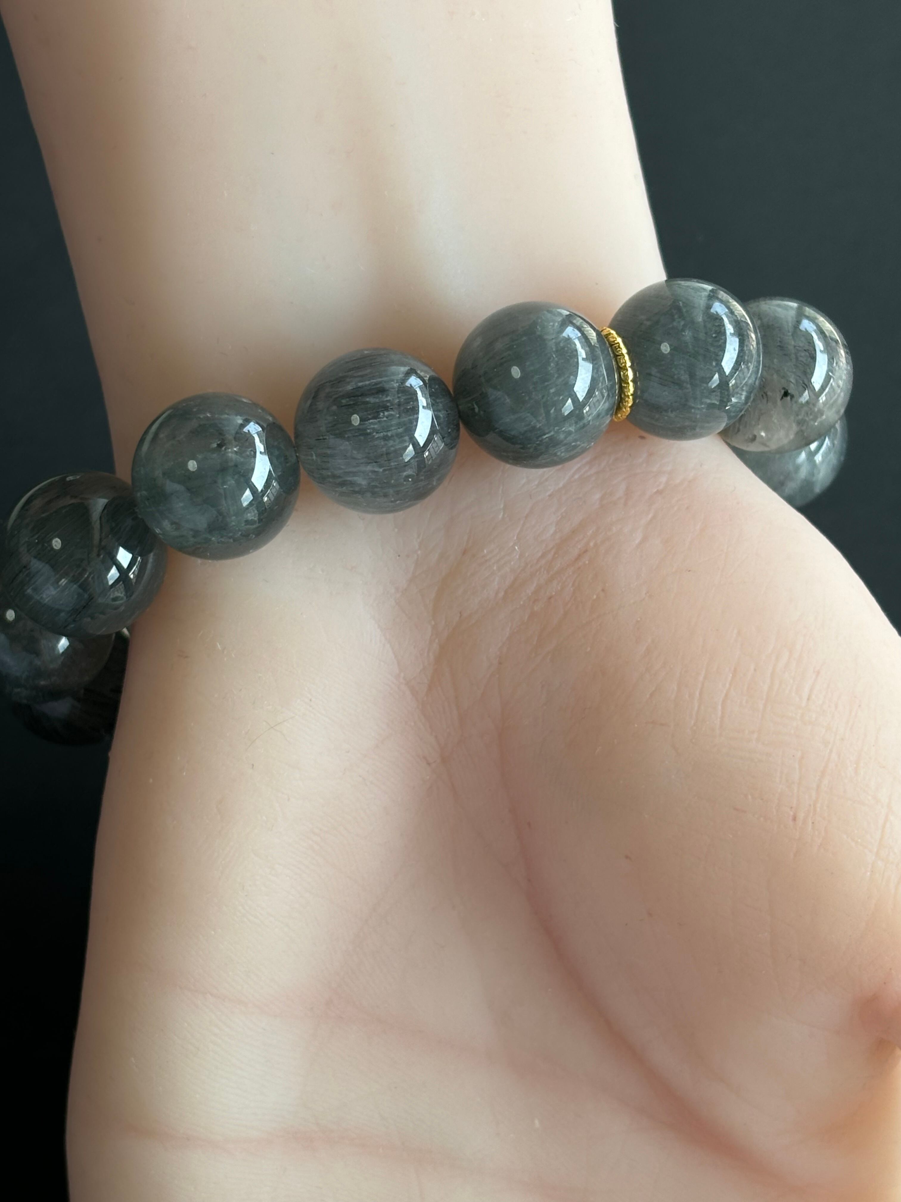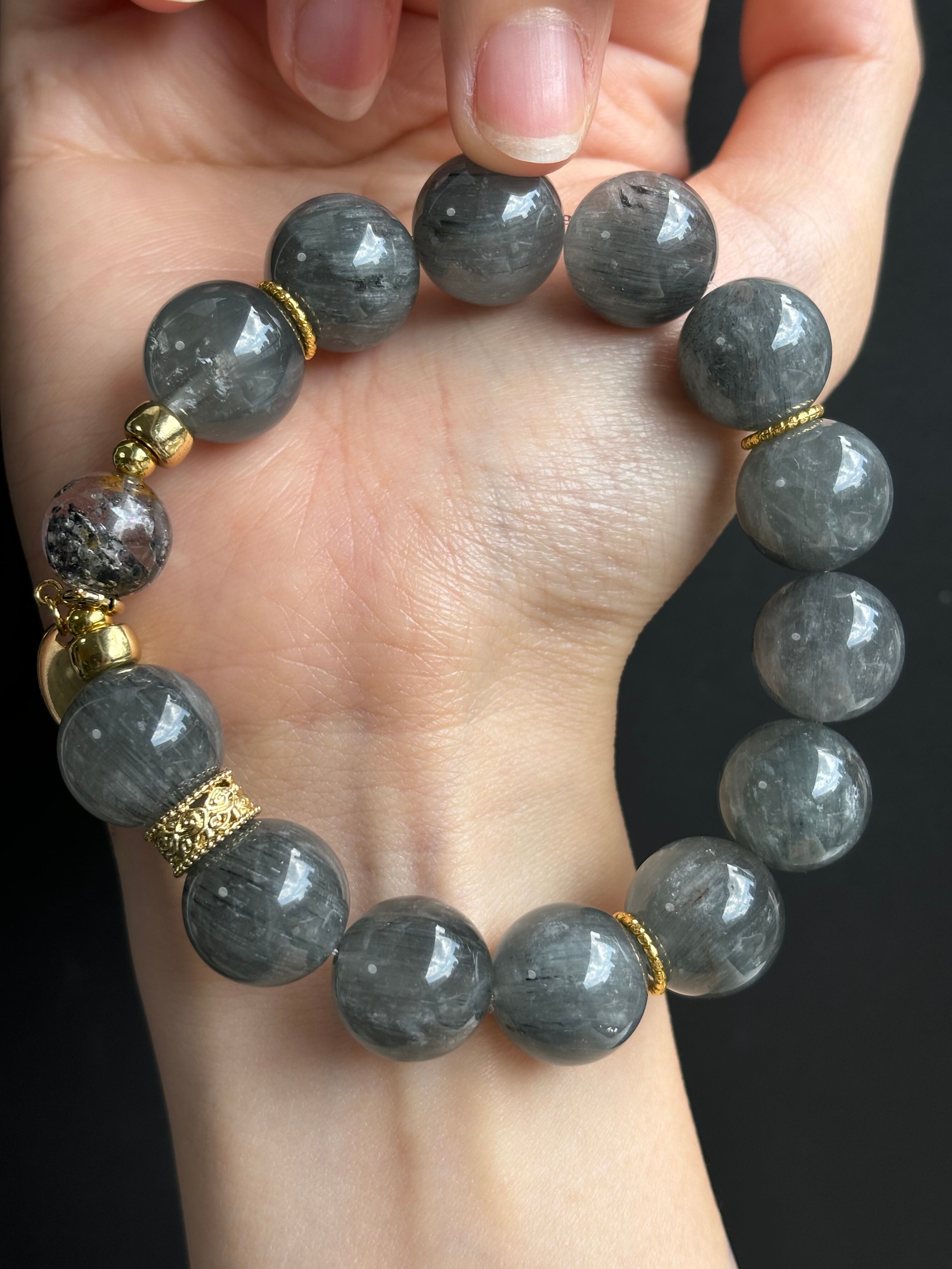 ブレスレット部分のグレーサゲニティッククォーツは針の揃いも綺麗な粒が多いです