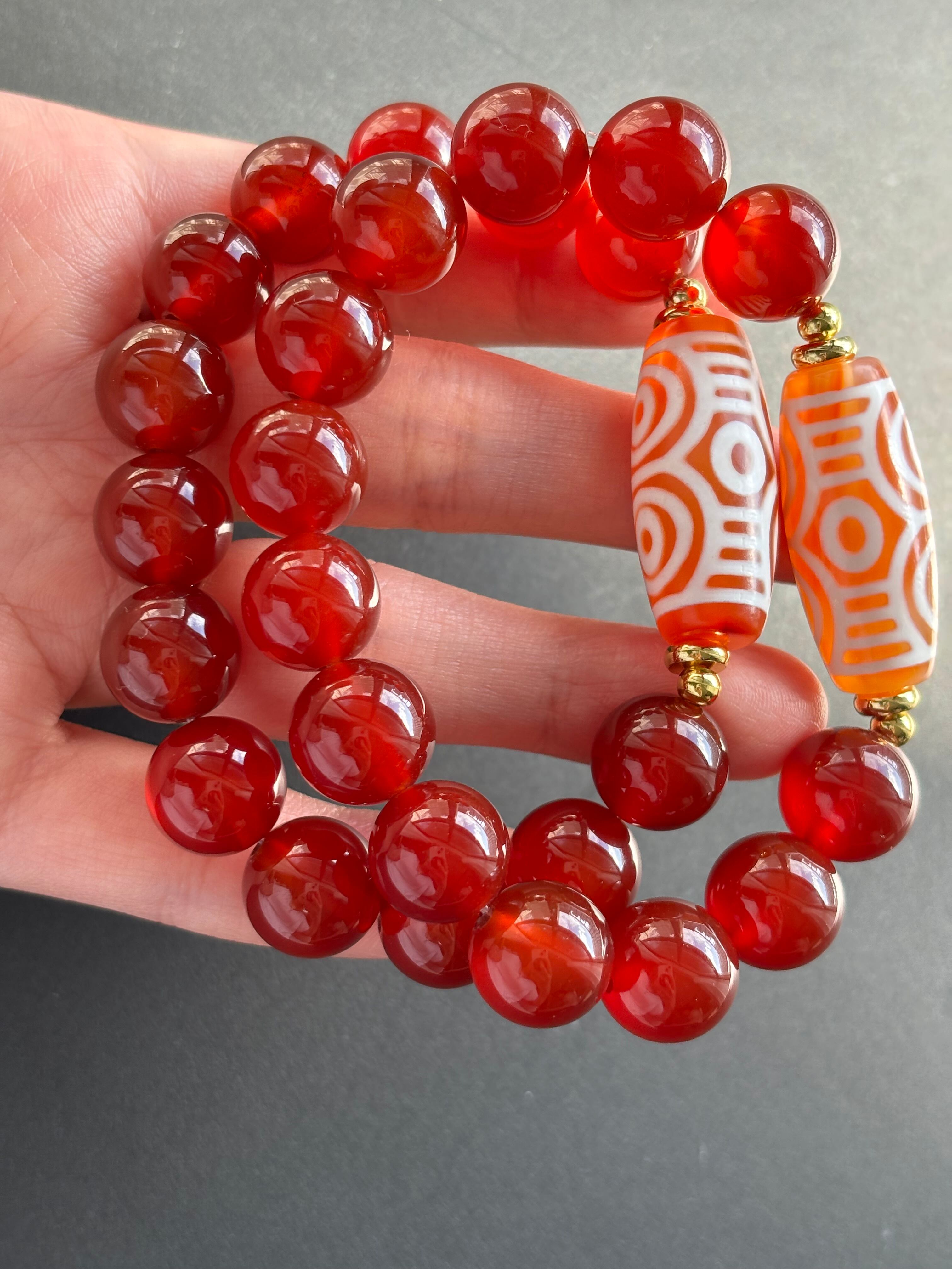 龍眼天珠ととってもうる艶透明感の綺麗な天然カーネリアンのブレスレットです♪