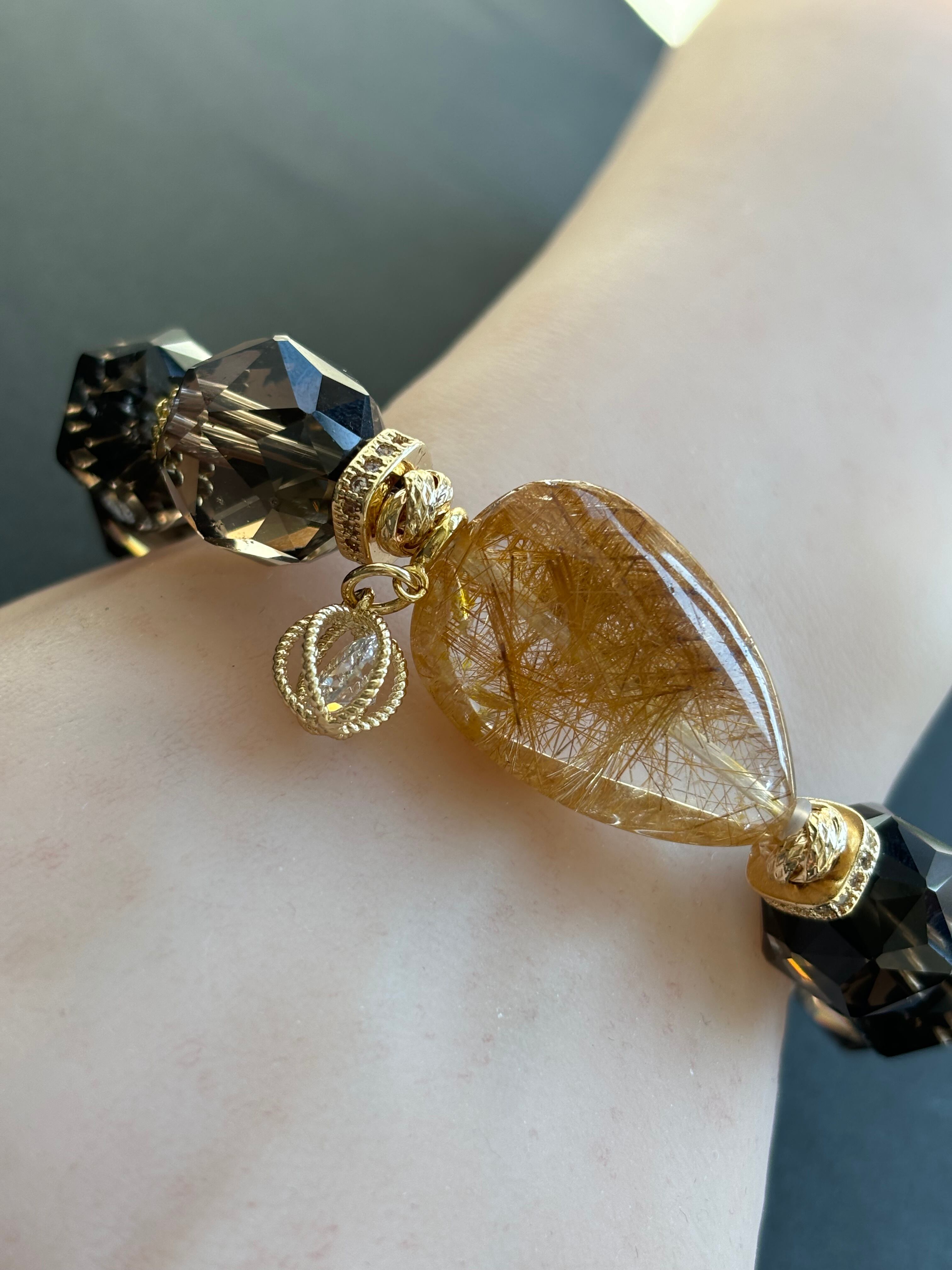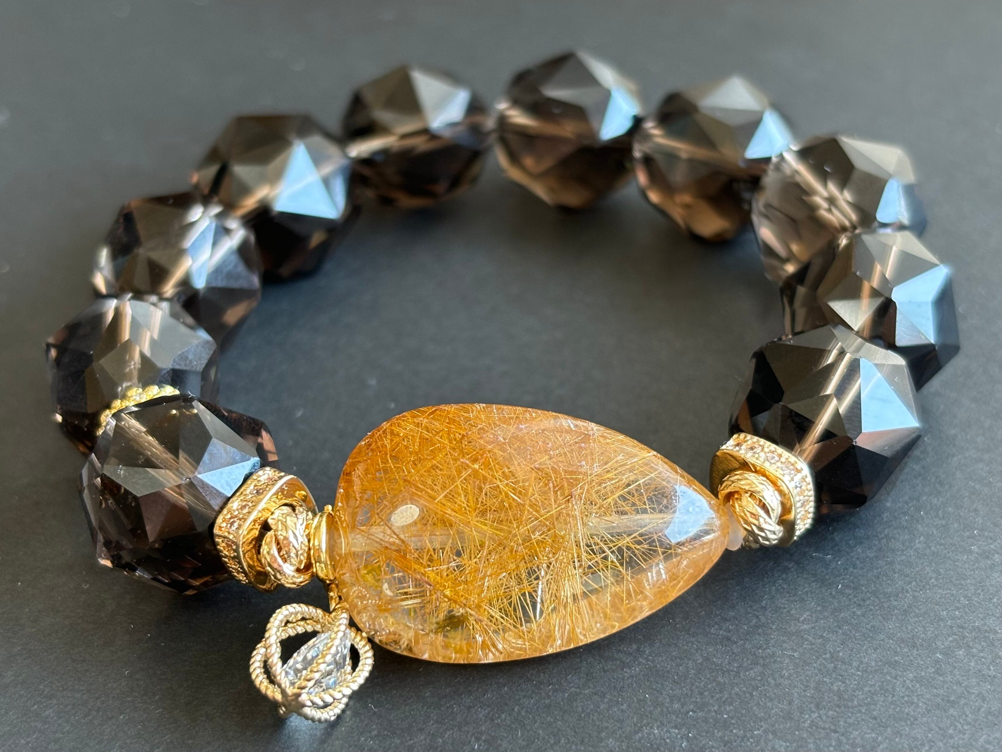 ルチルクォーツ スターカットスモーキークォーツ デザインブレスレット