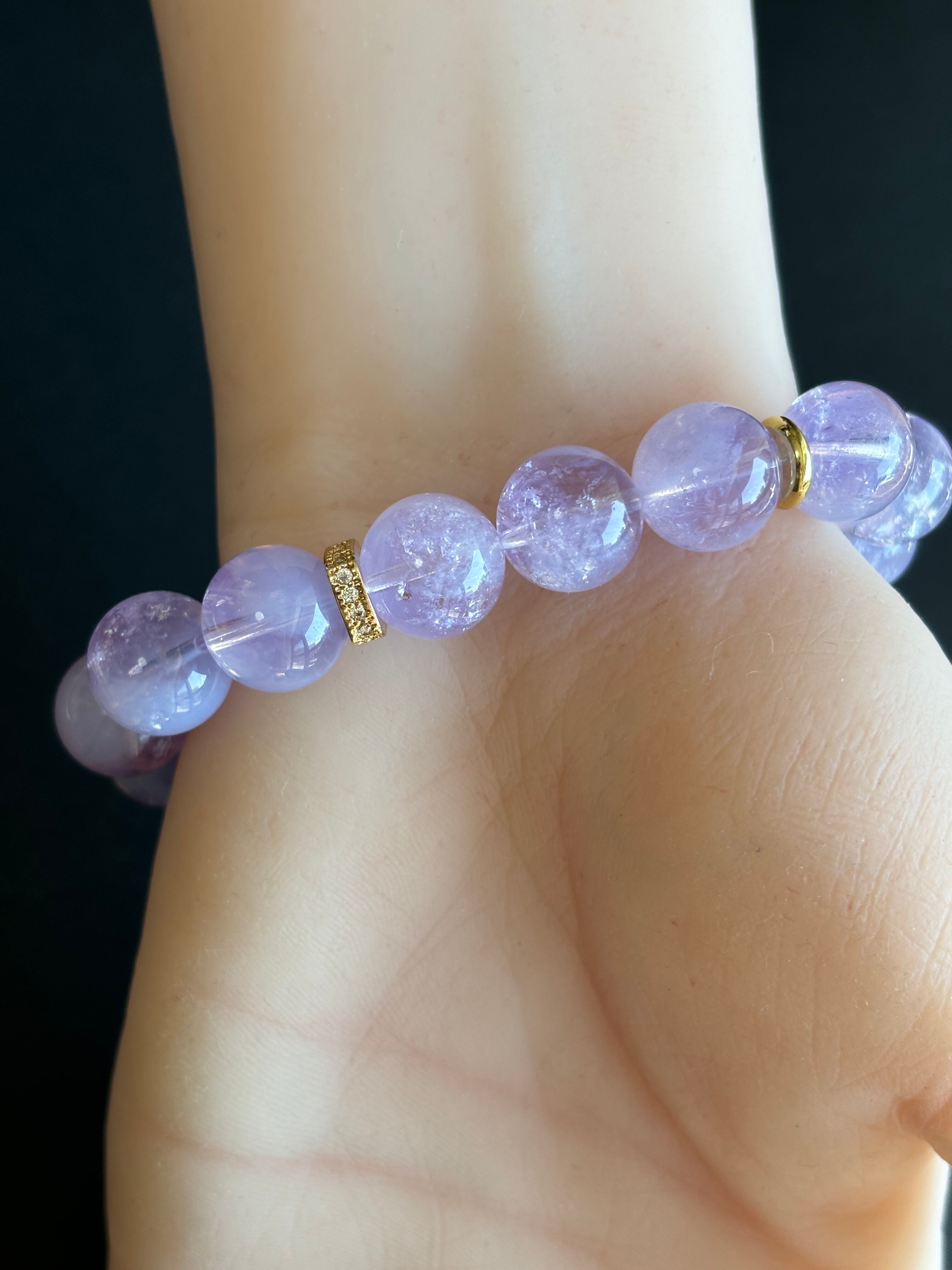綺麗なアメジストが揃って居たのでこれはオールアメジストで作成したいと思い、作成した甘可愛いブレスレットです