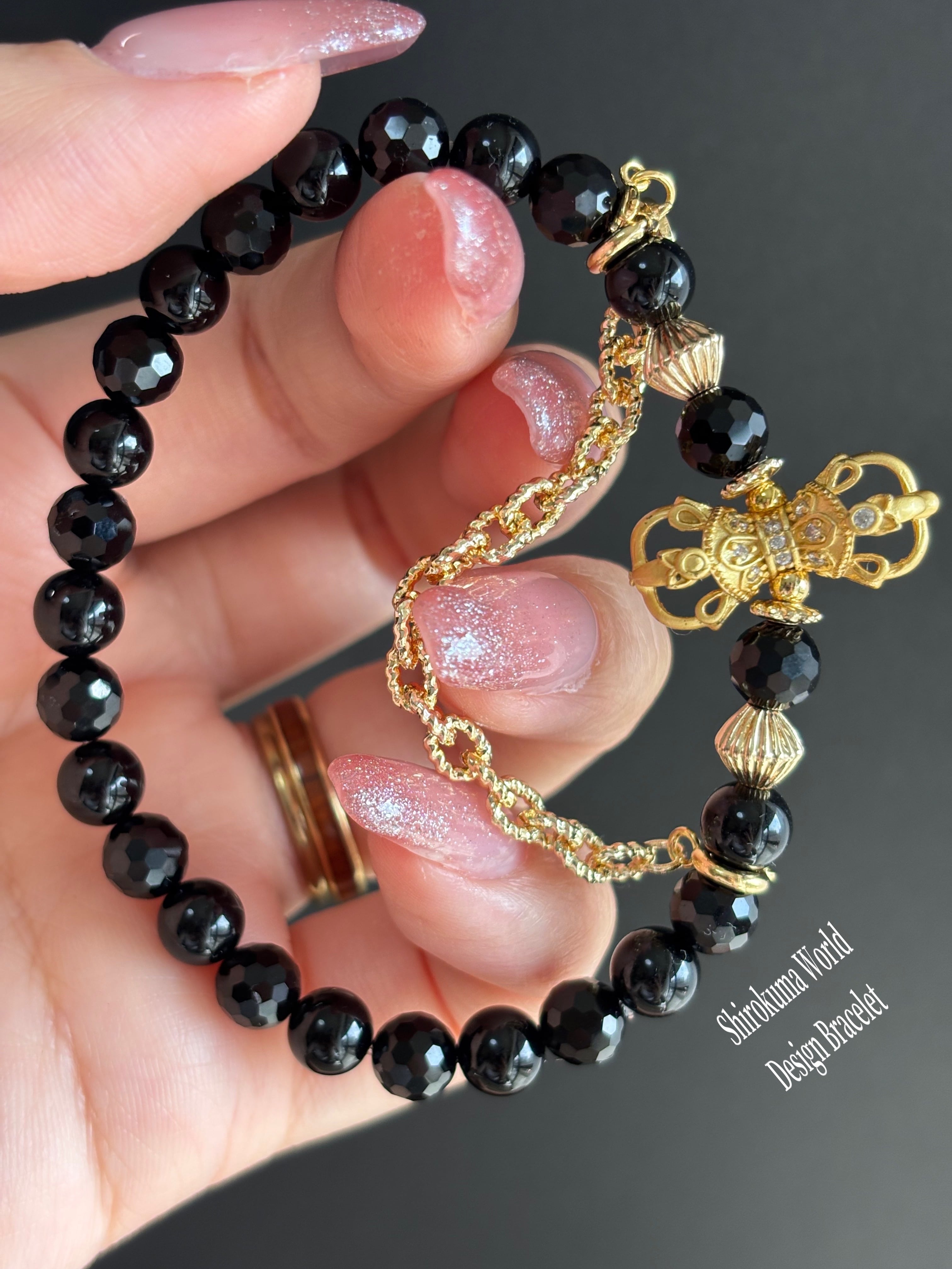 ゴールドバジュラパーツと高品質丸玉モリオンと宝石カットモリオンを入れたブレスレットです(*´▽`*)