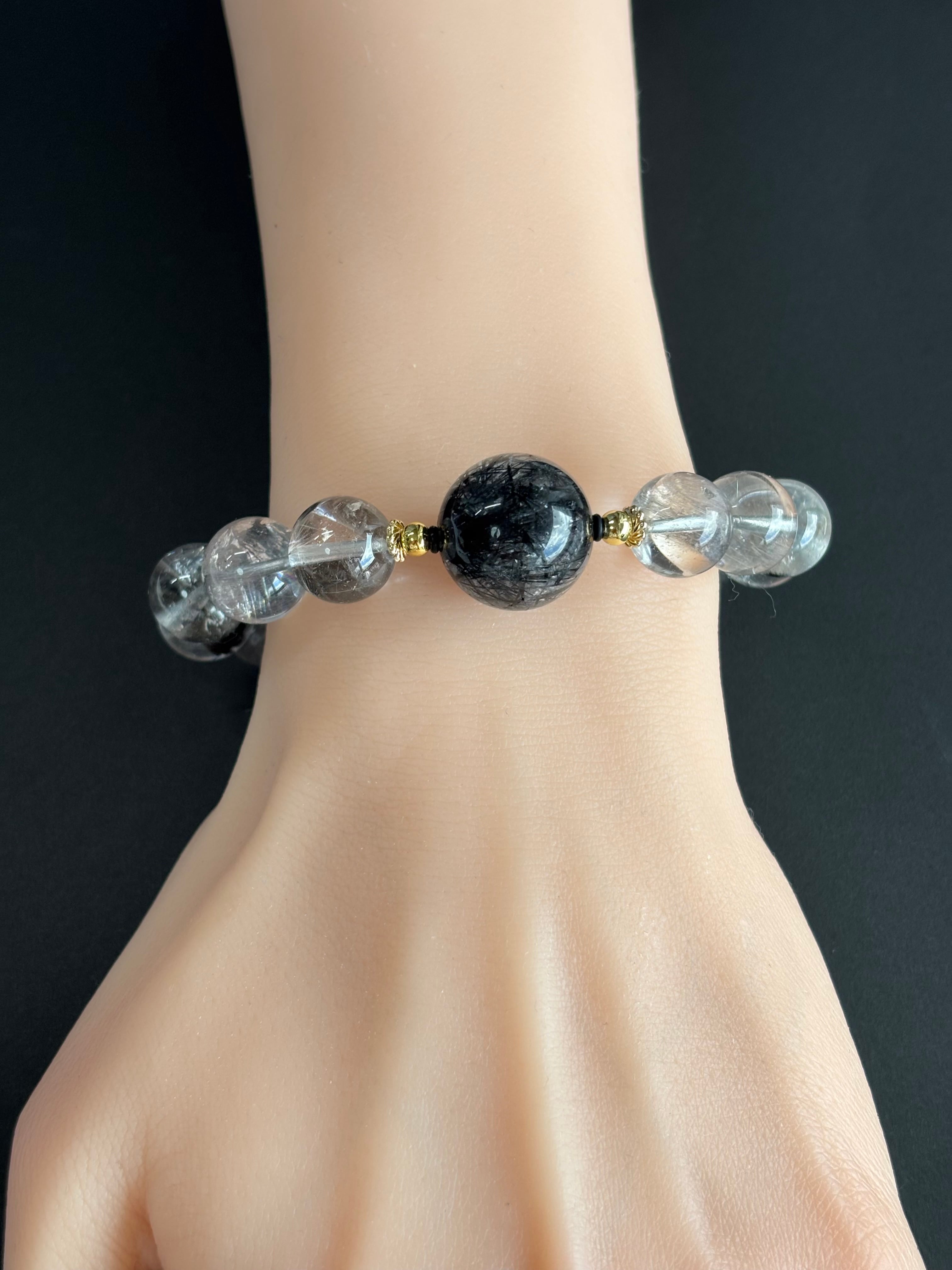 プラチナルチルクォーツ ブラックルチルクォーツ デザインブレスレット