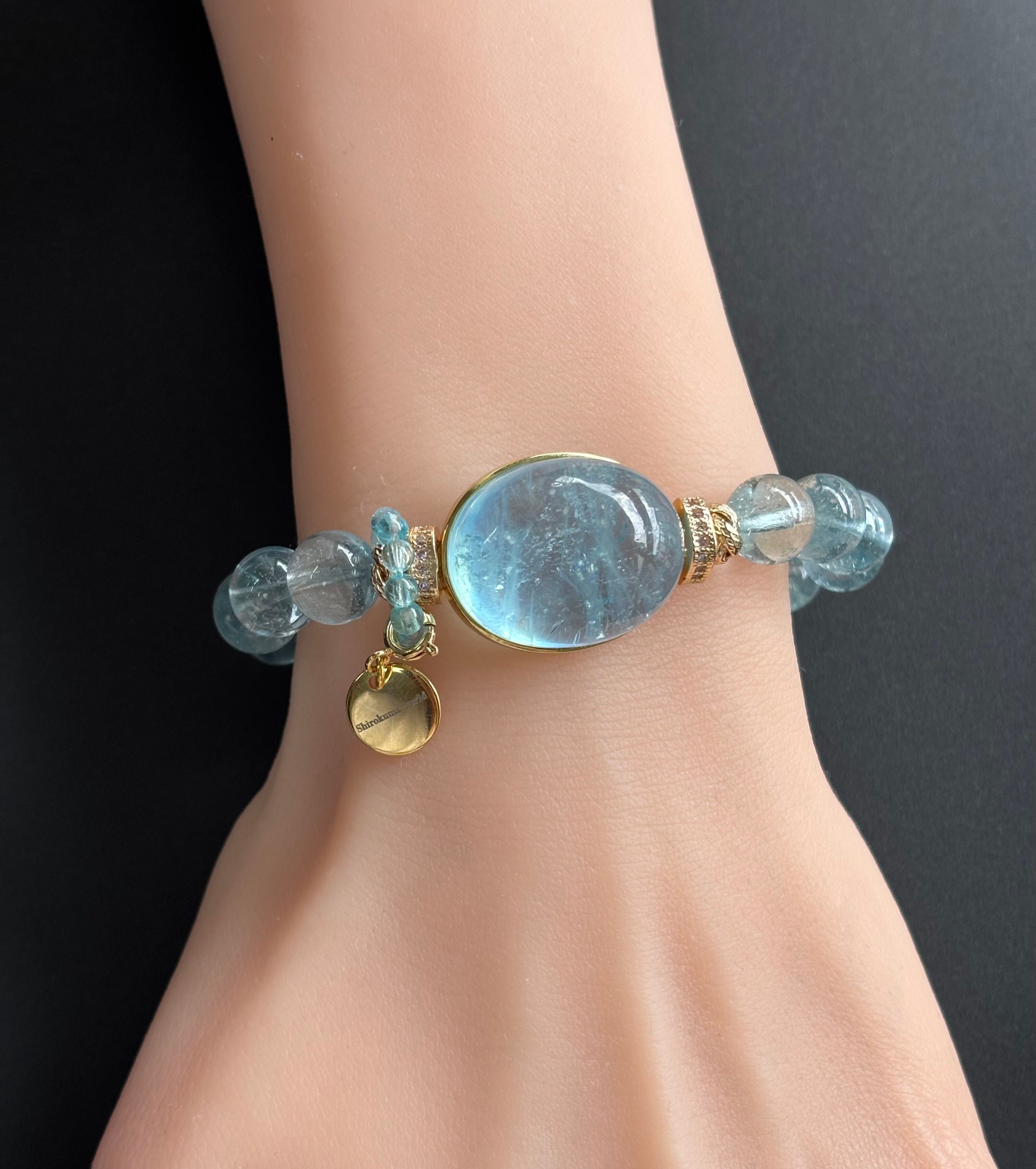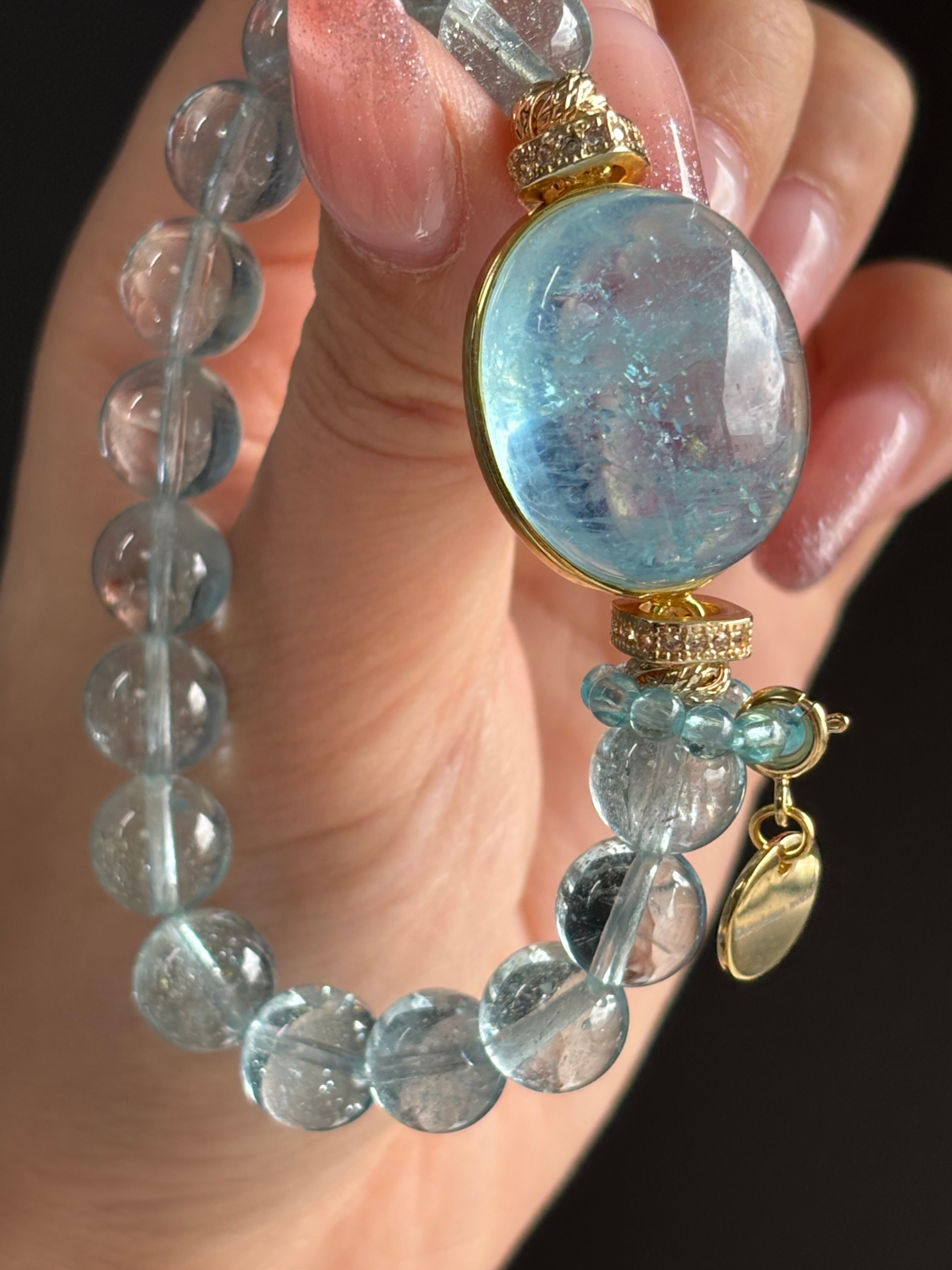 透明感 シラー 煌めき どれも綺麗な夏の海を思わせるようなぷっくりボリュームあるアクアマリンのトップにシュワシュワ炭酸ソーダのような高品質なブルートパーズと組みました!