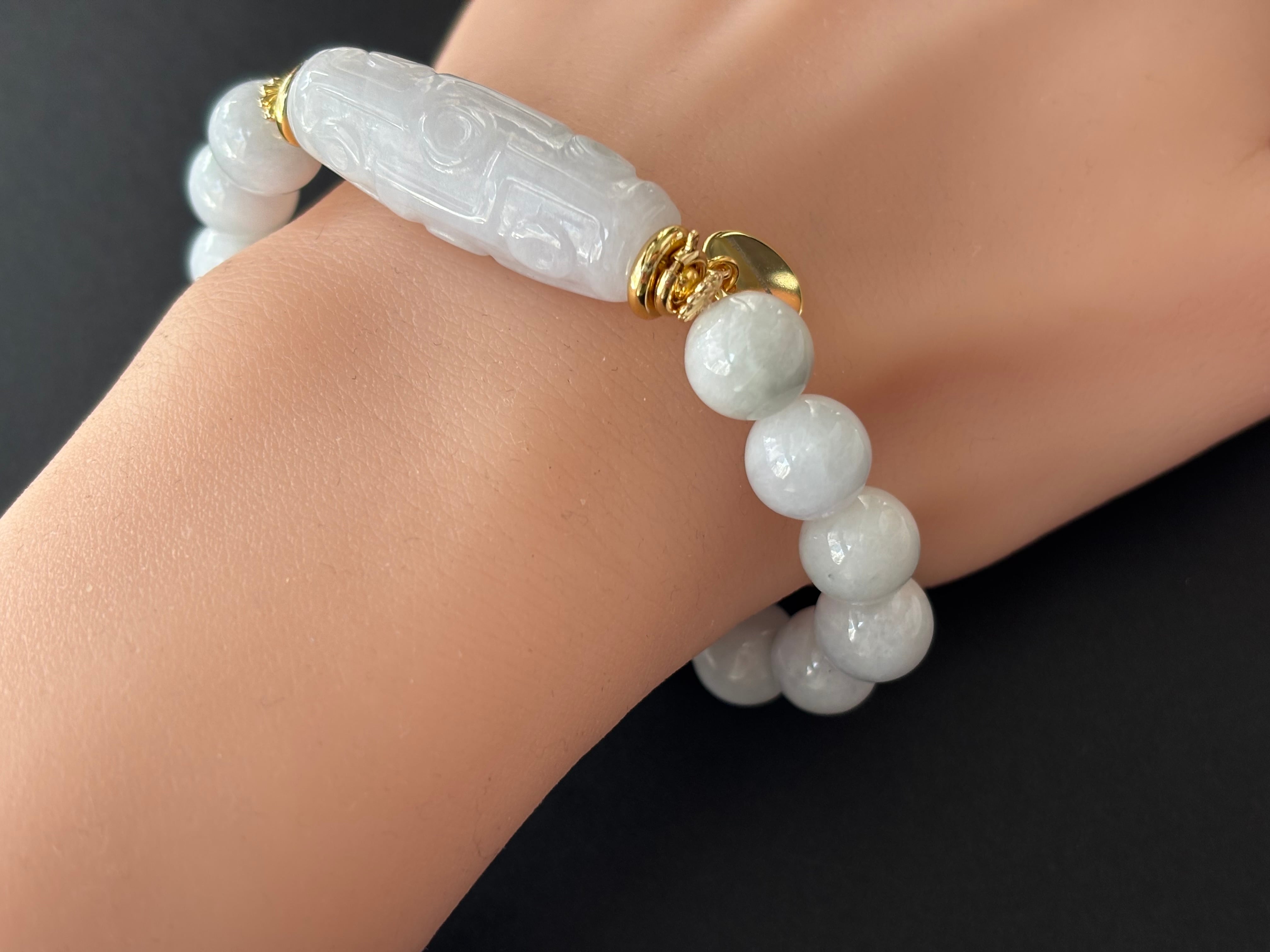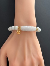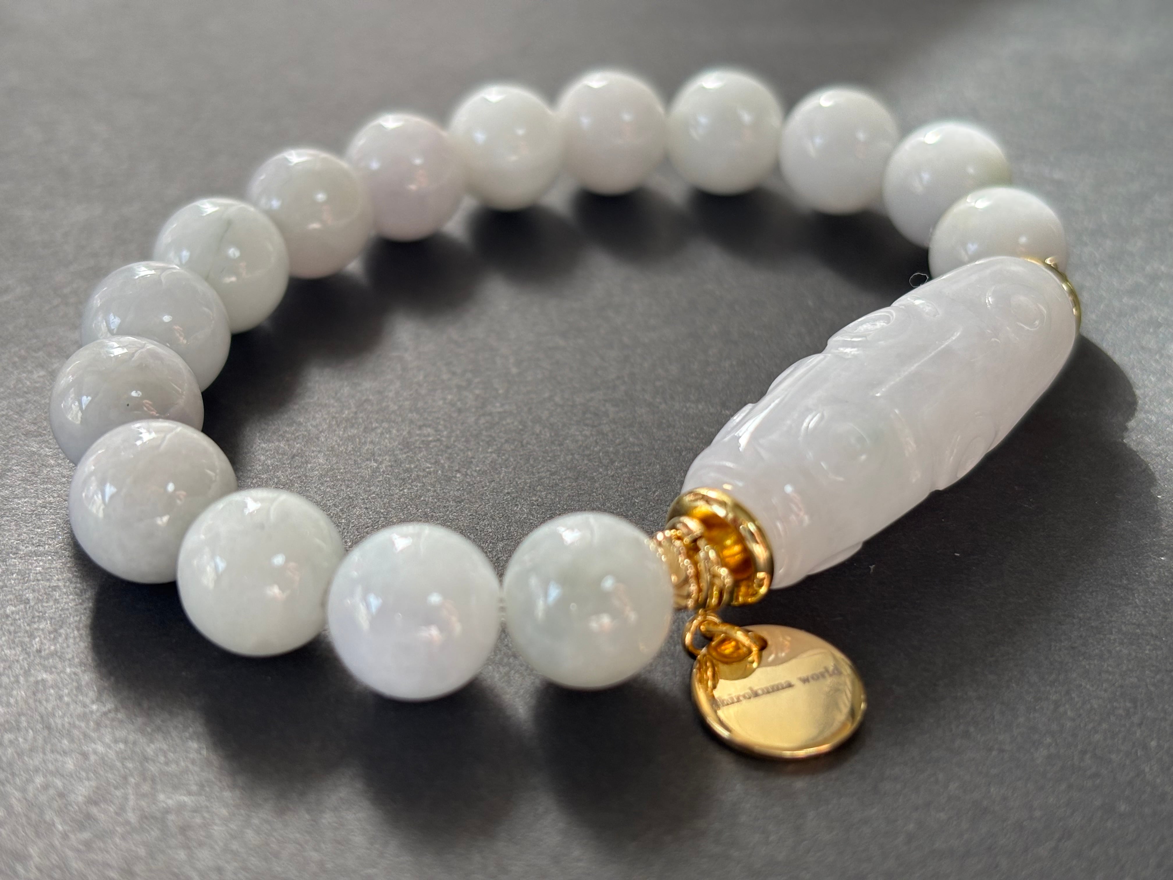ミャンマー産地の綺麗な白翡翠九眼天珠のブレスレットです