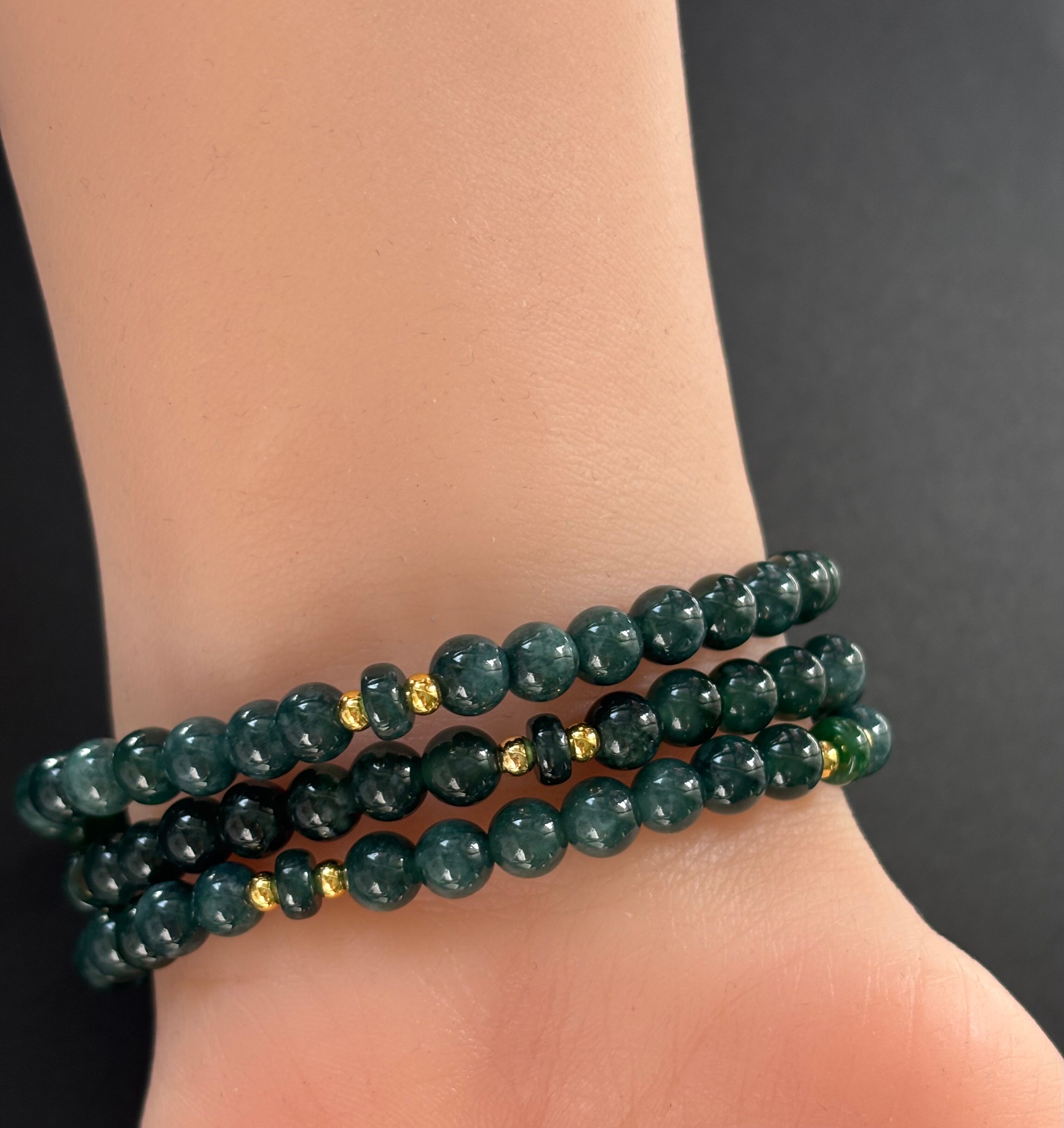 濃厚な深緑のグアテマラ産地翡翠の3連ブレスレットです(*^^*)