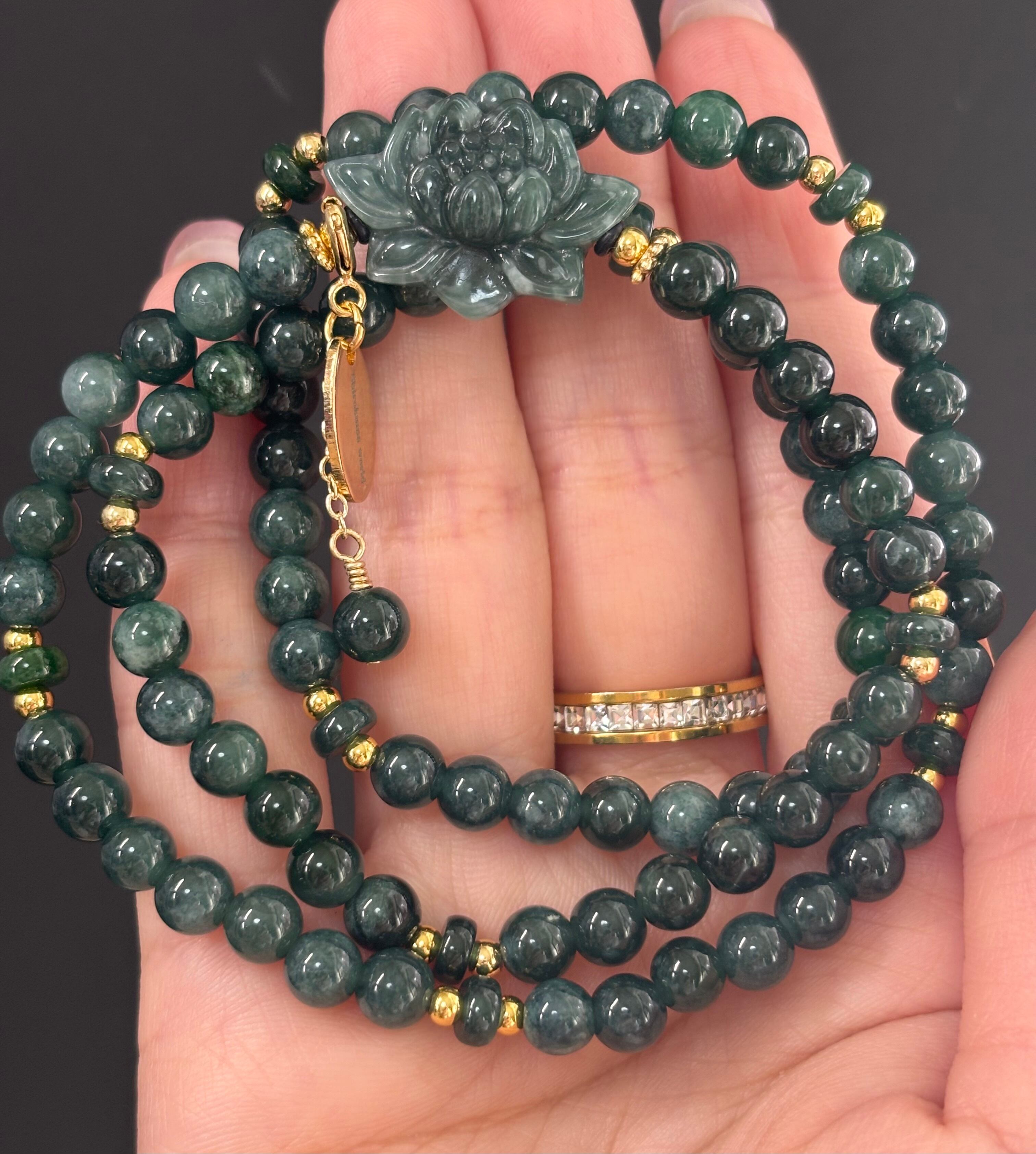 グアテマラ産 翡翠 蓮 3連デザインブレスレット