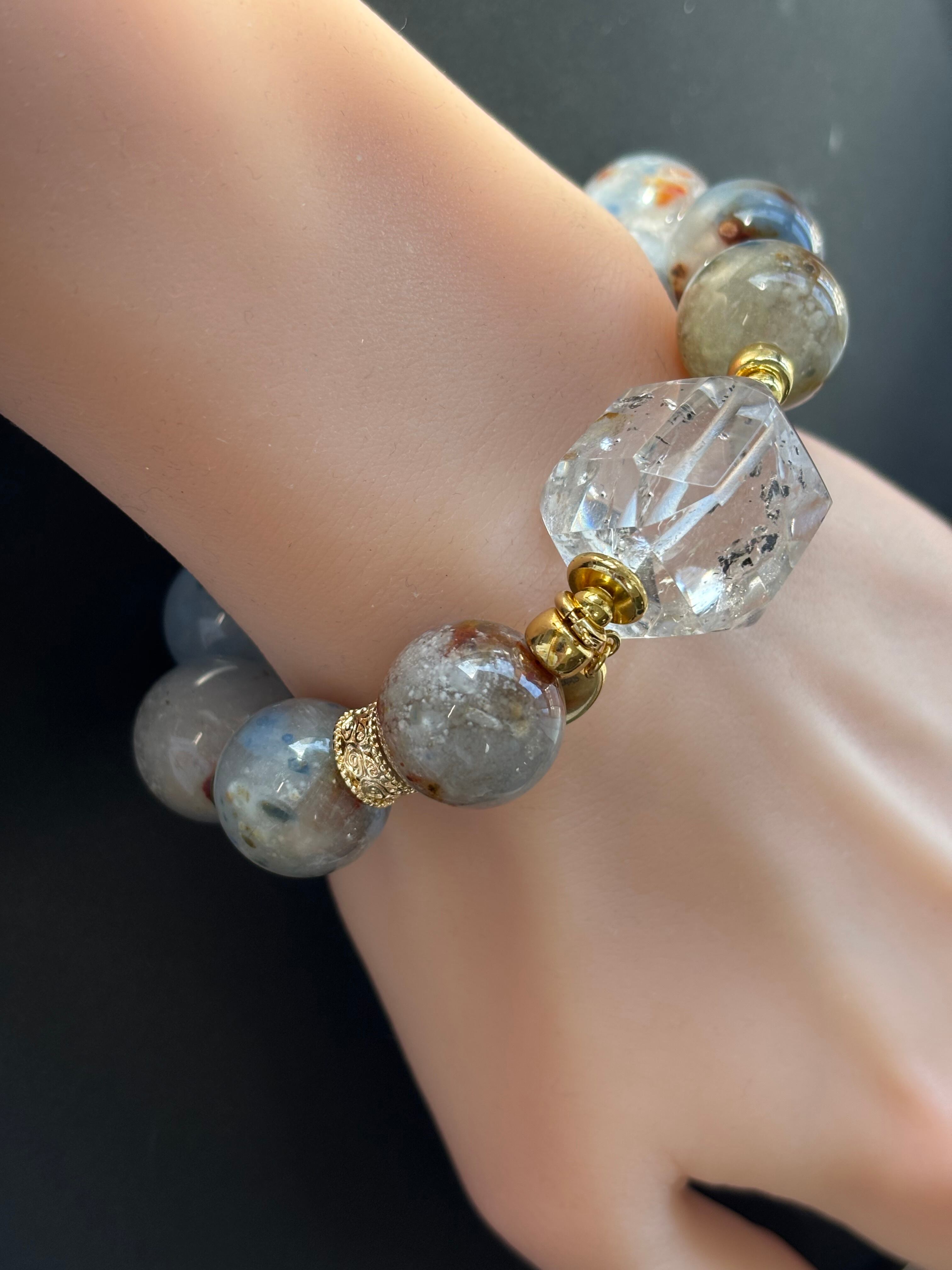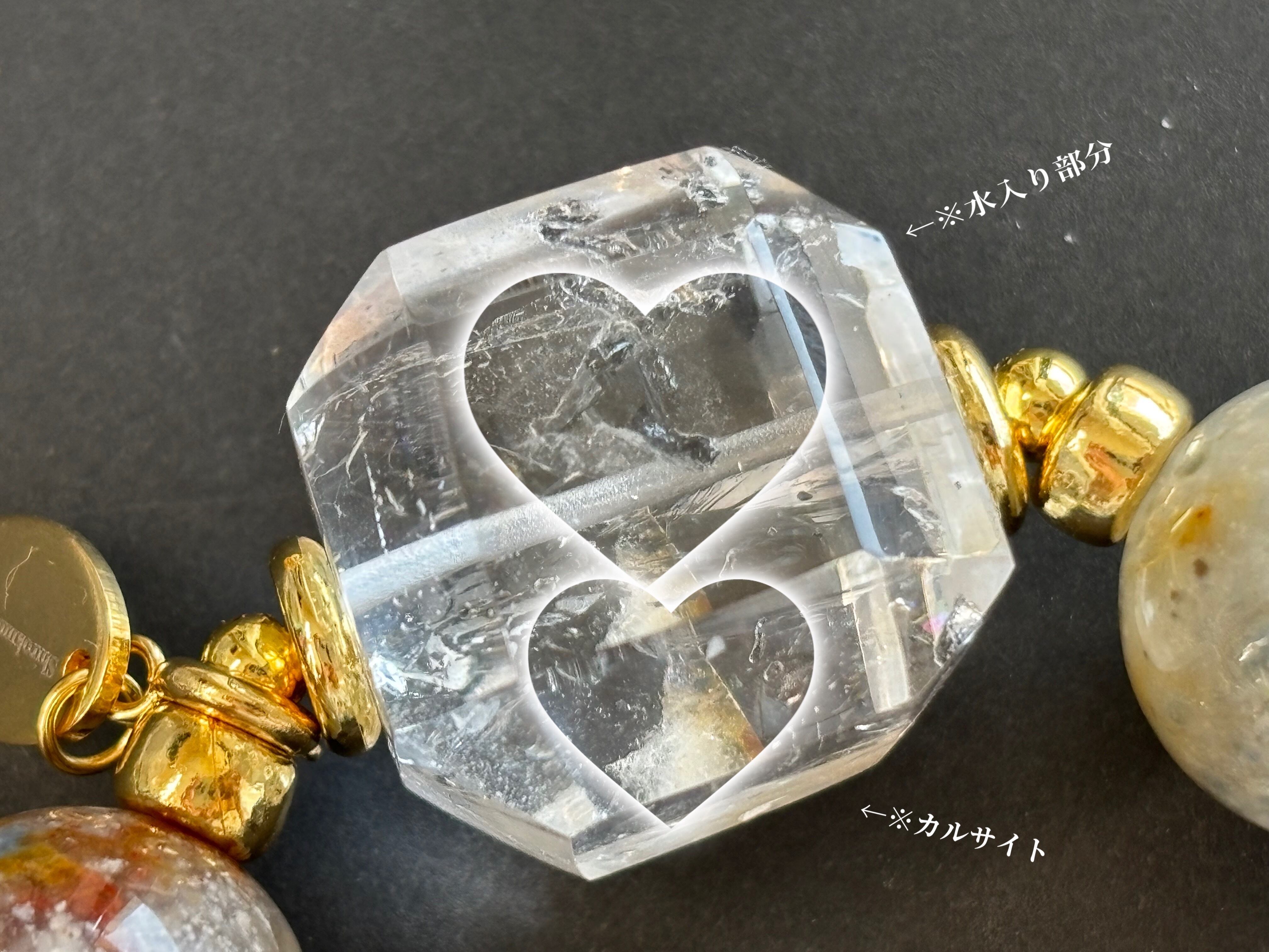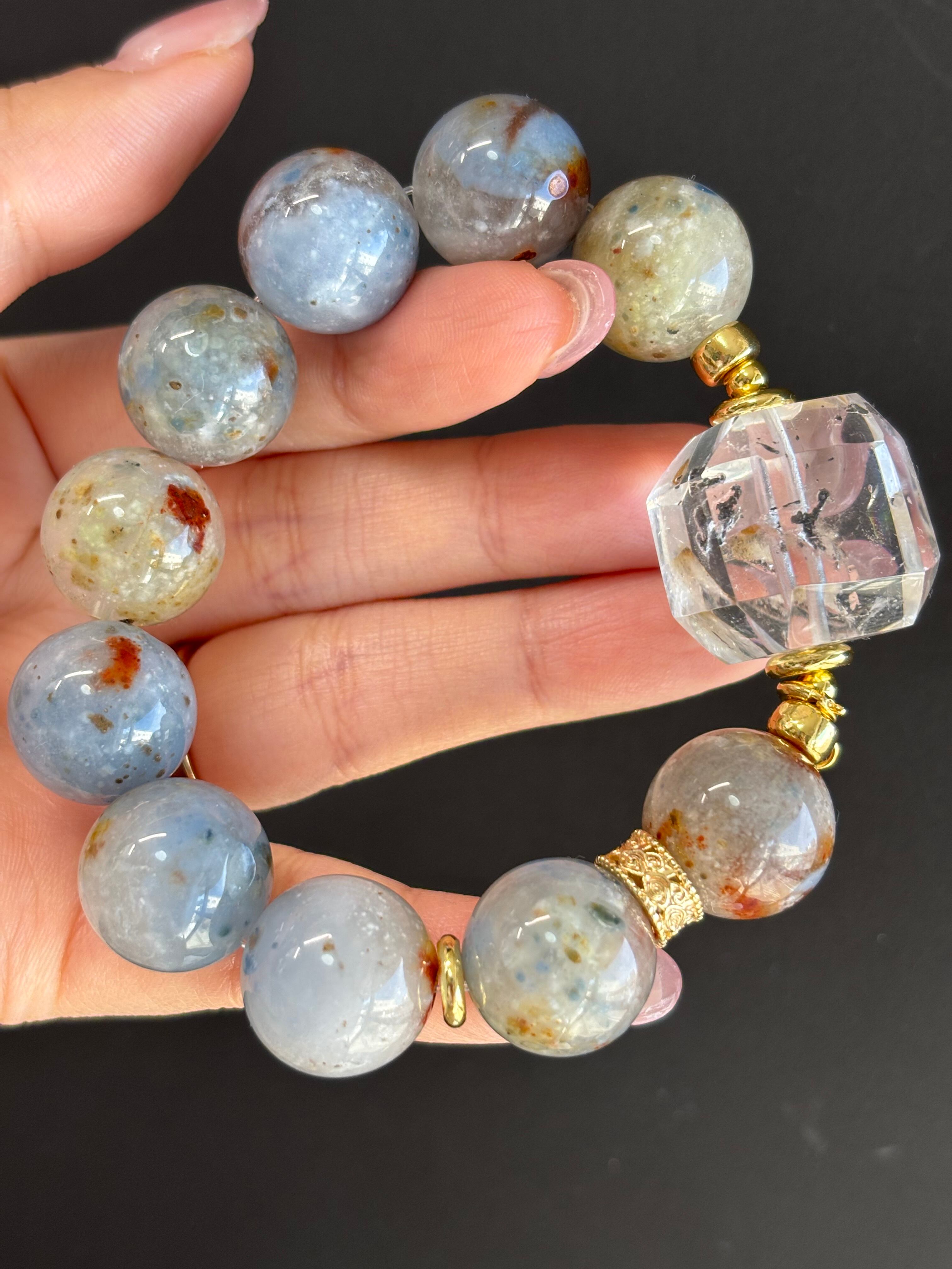 水入り水晶キューブ ブルーアンフィボールクォーツデザインブレスレット