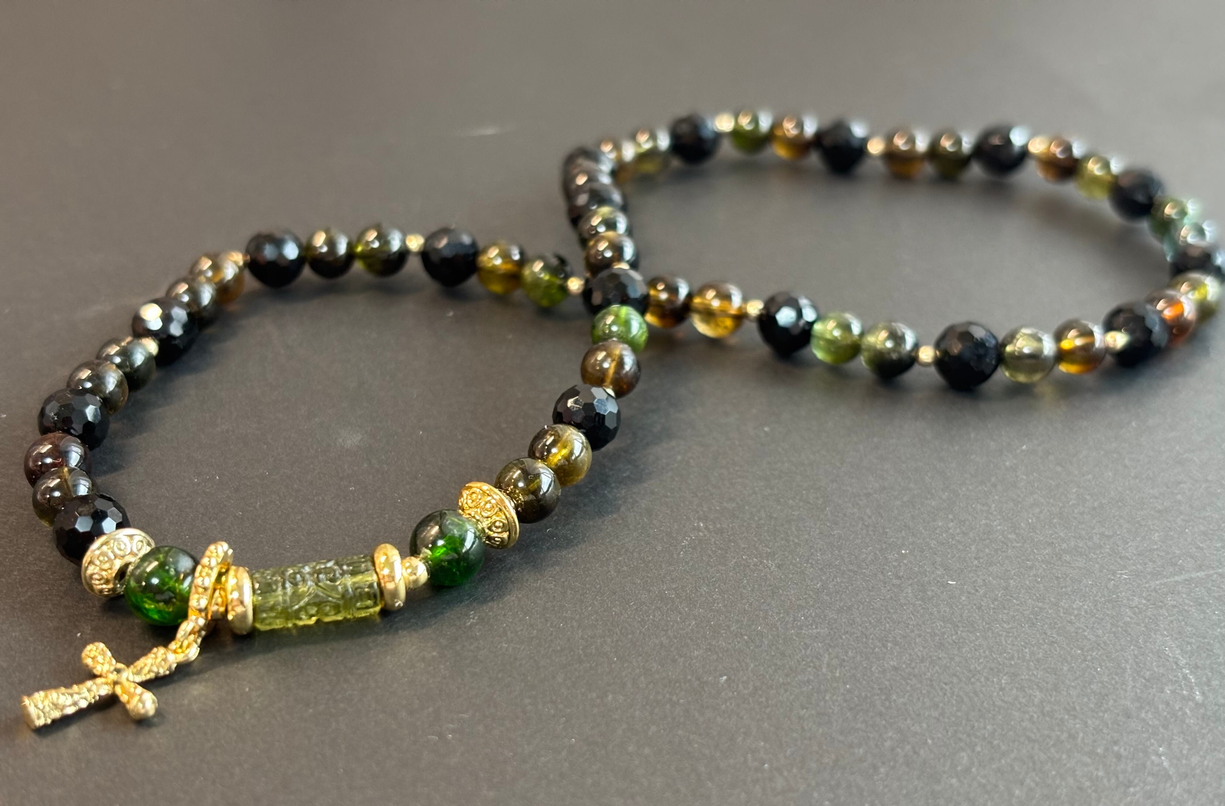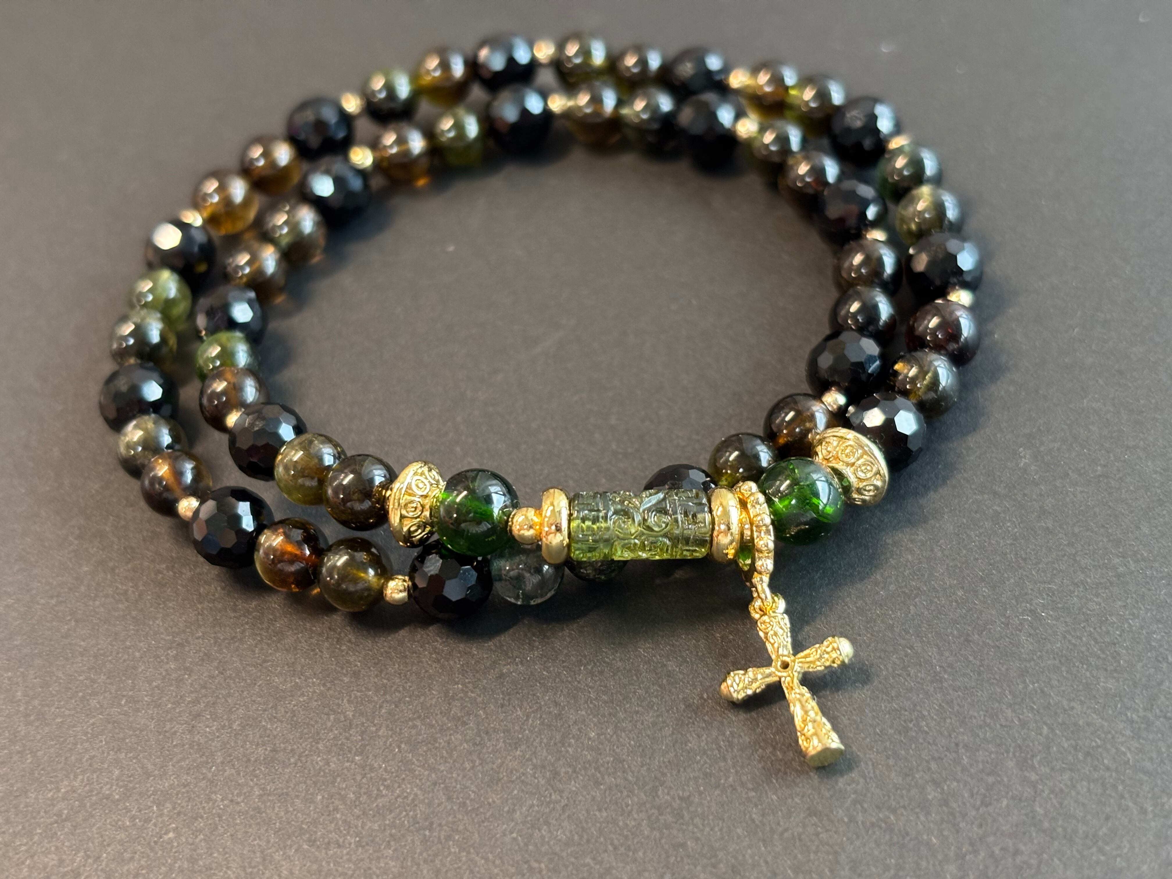 グリーントルマリン クロムダイオプサイト 2連デザインブレスレット