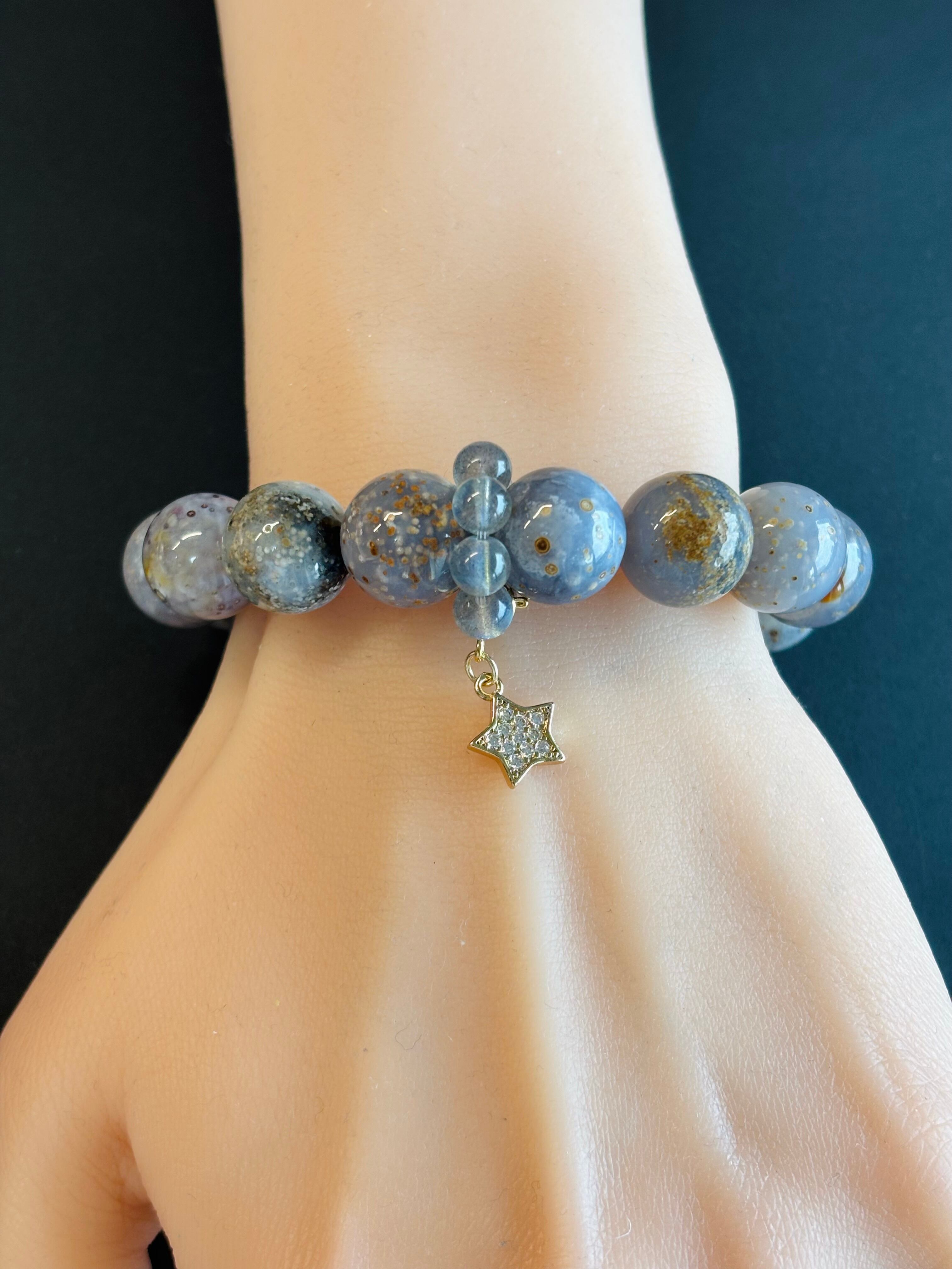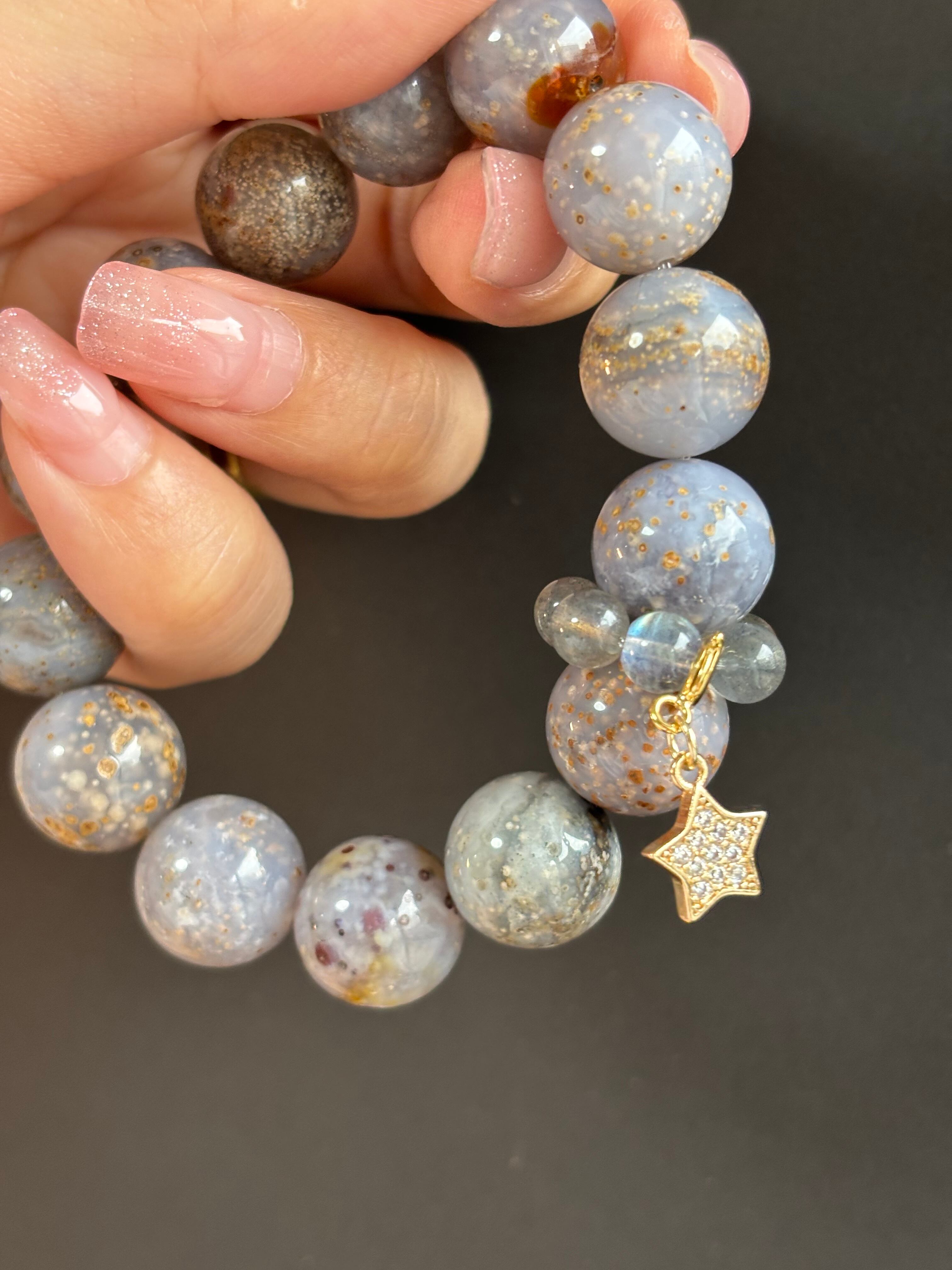 ポイントに高品質なラブラドライトの粒ででロンデル状にし星のチャームを付けました!