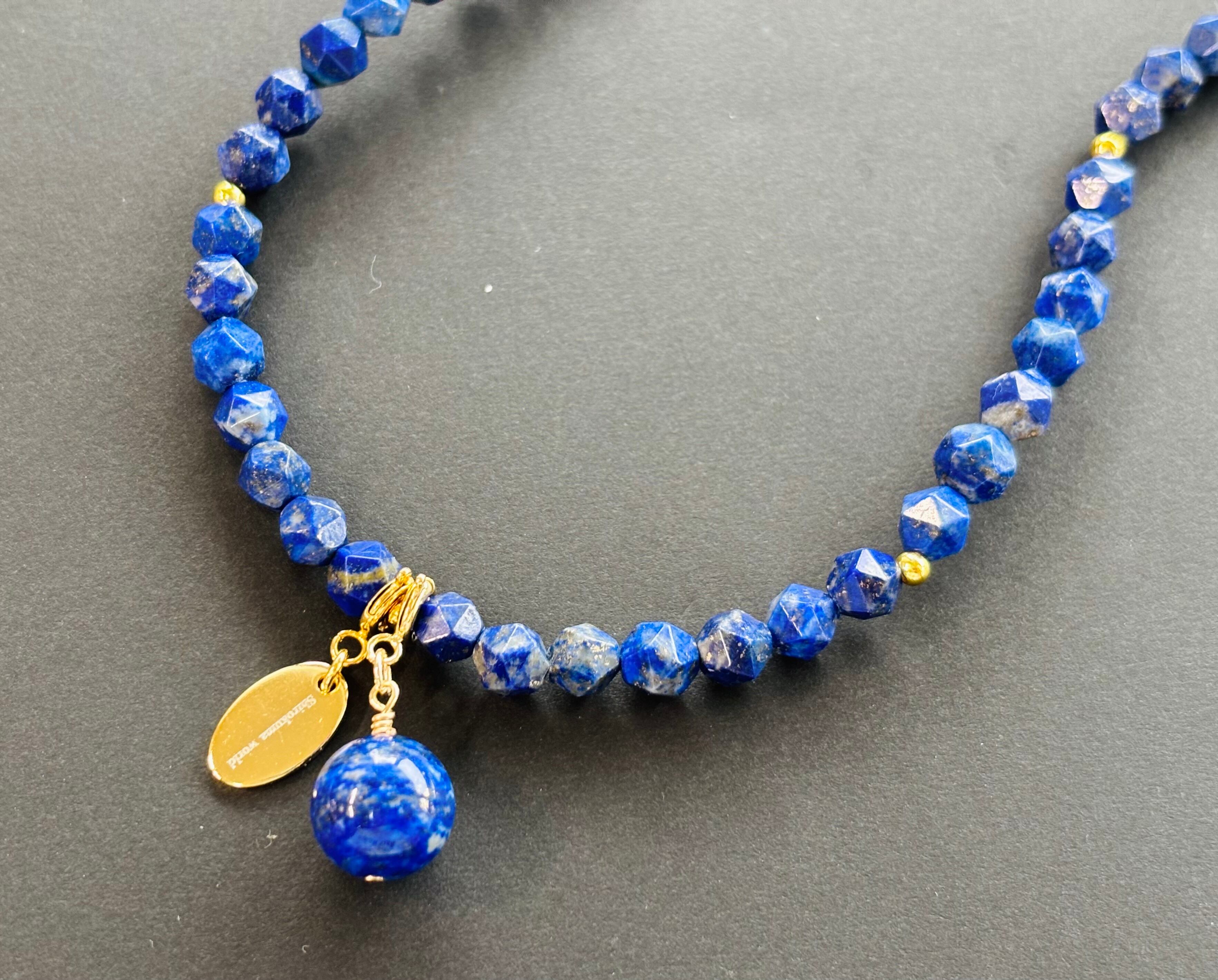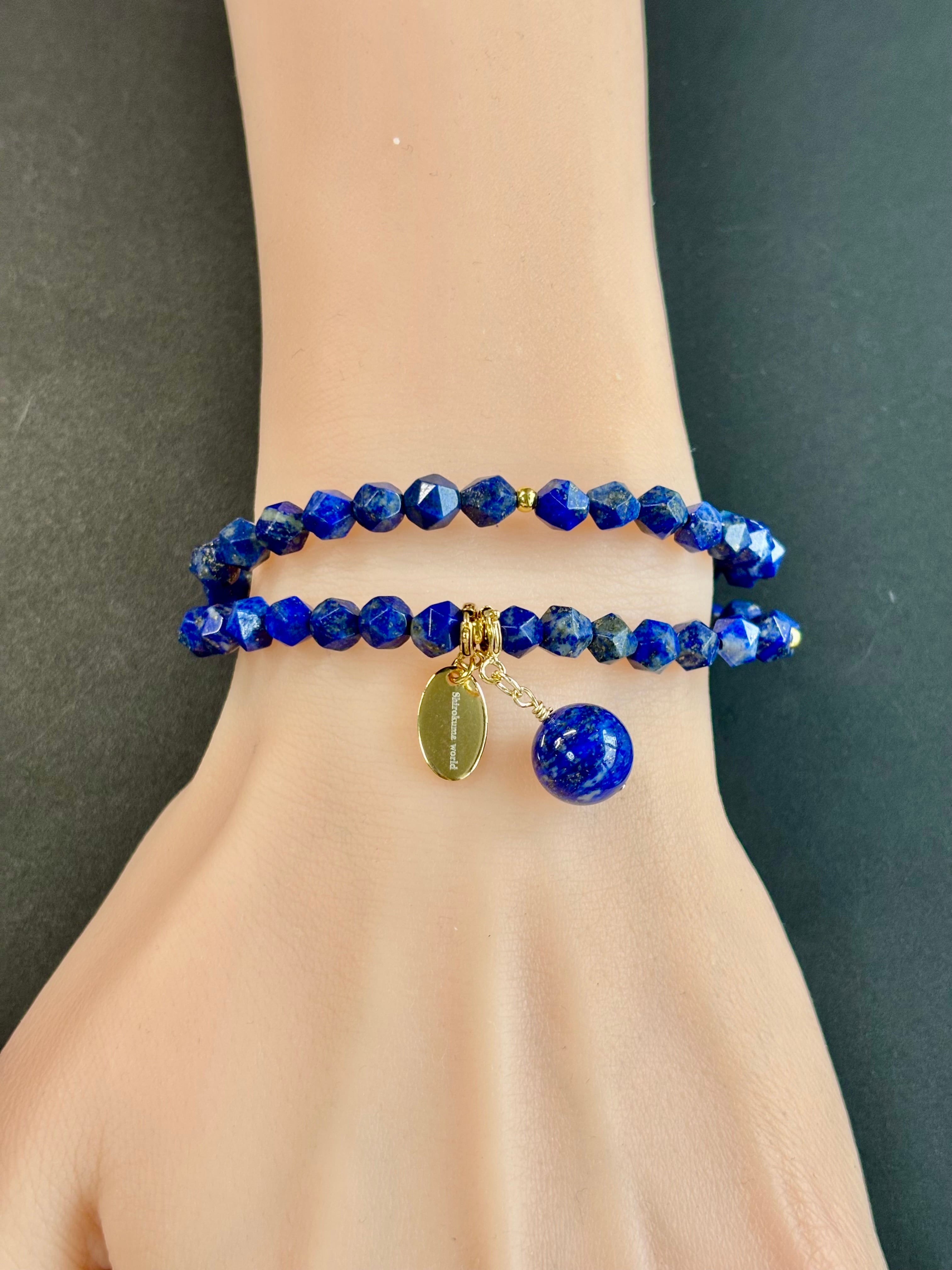 深いブルーが綺麗なスターカットのラピスラズリ2連ブレスレットです♪