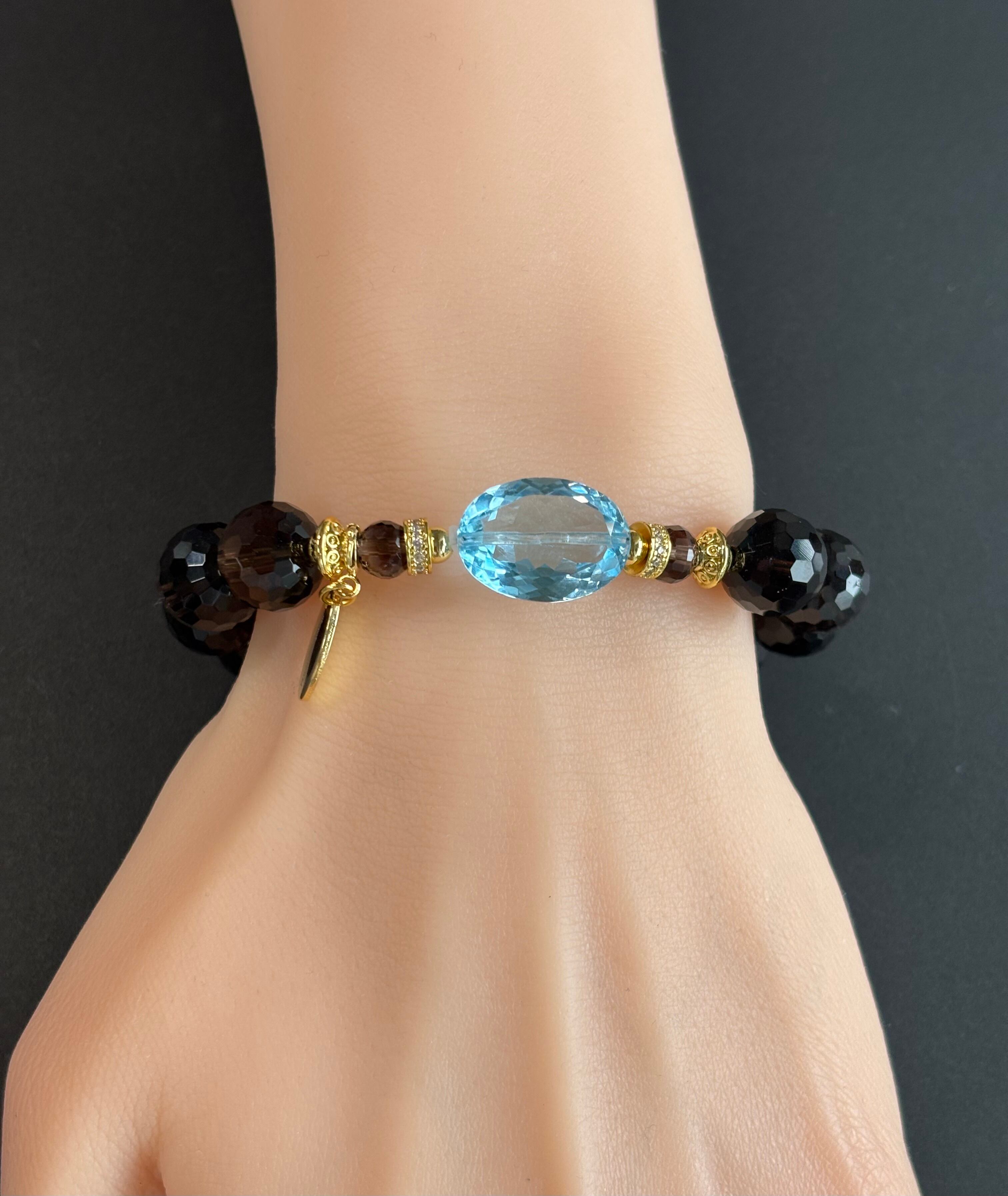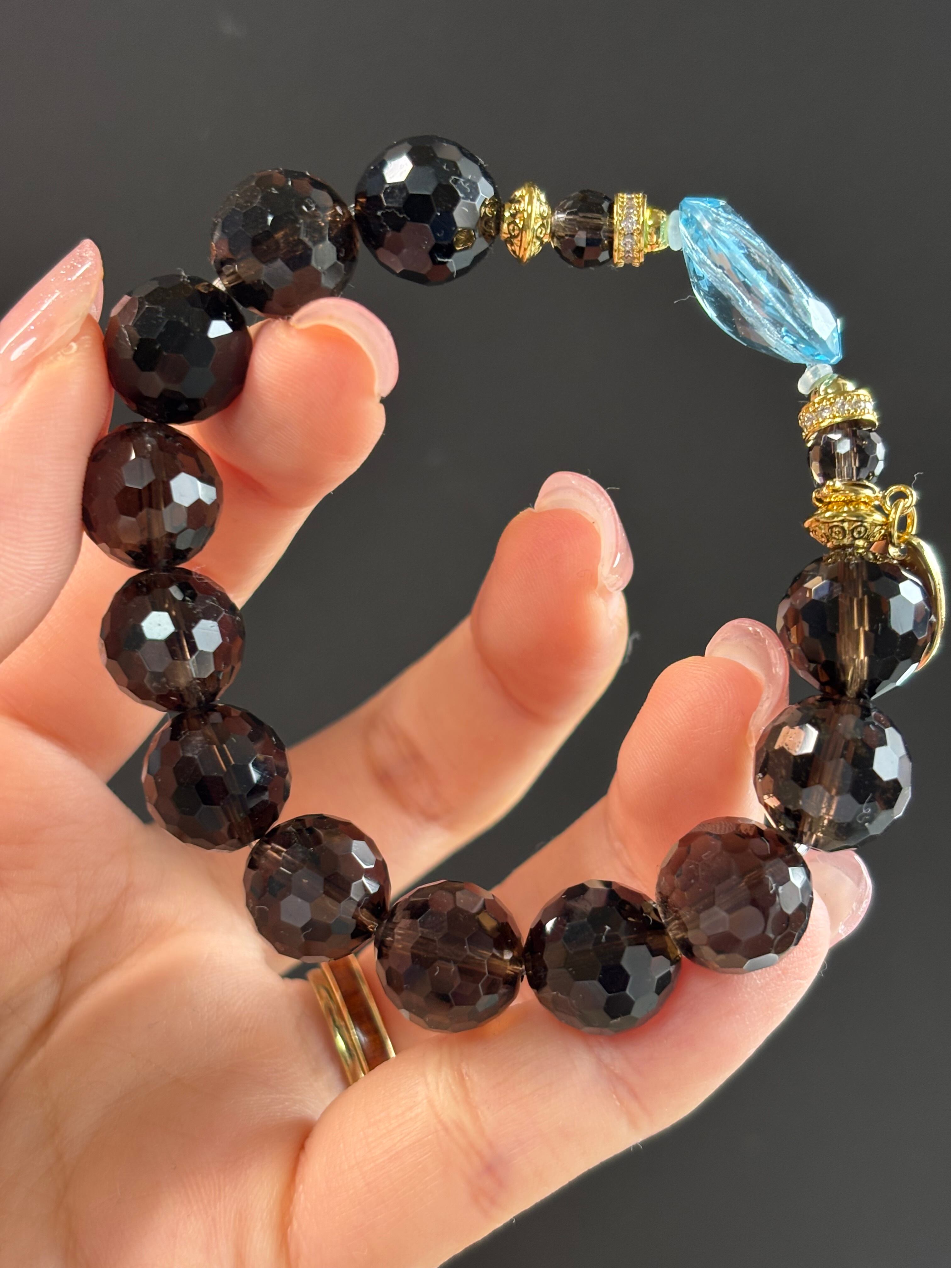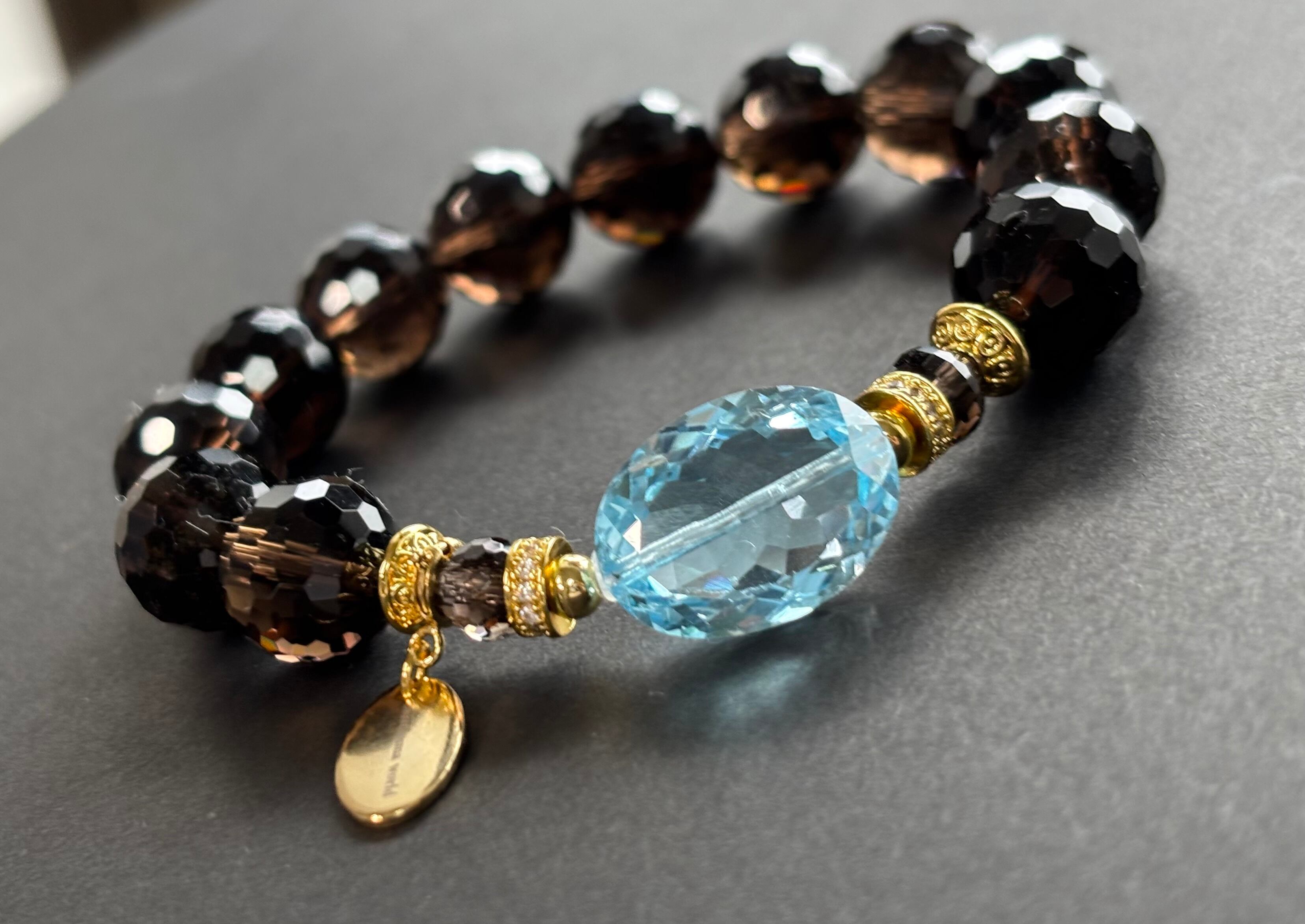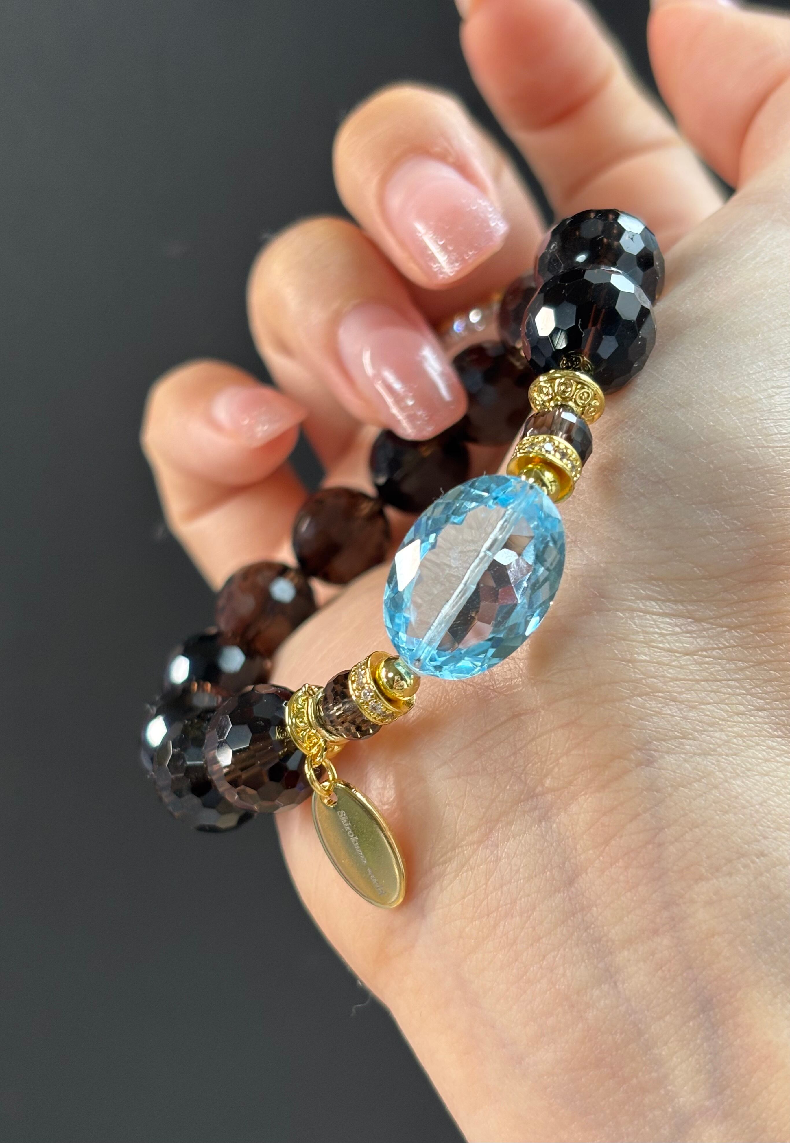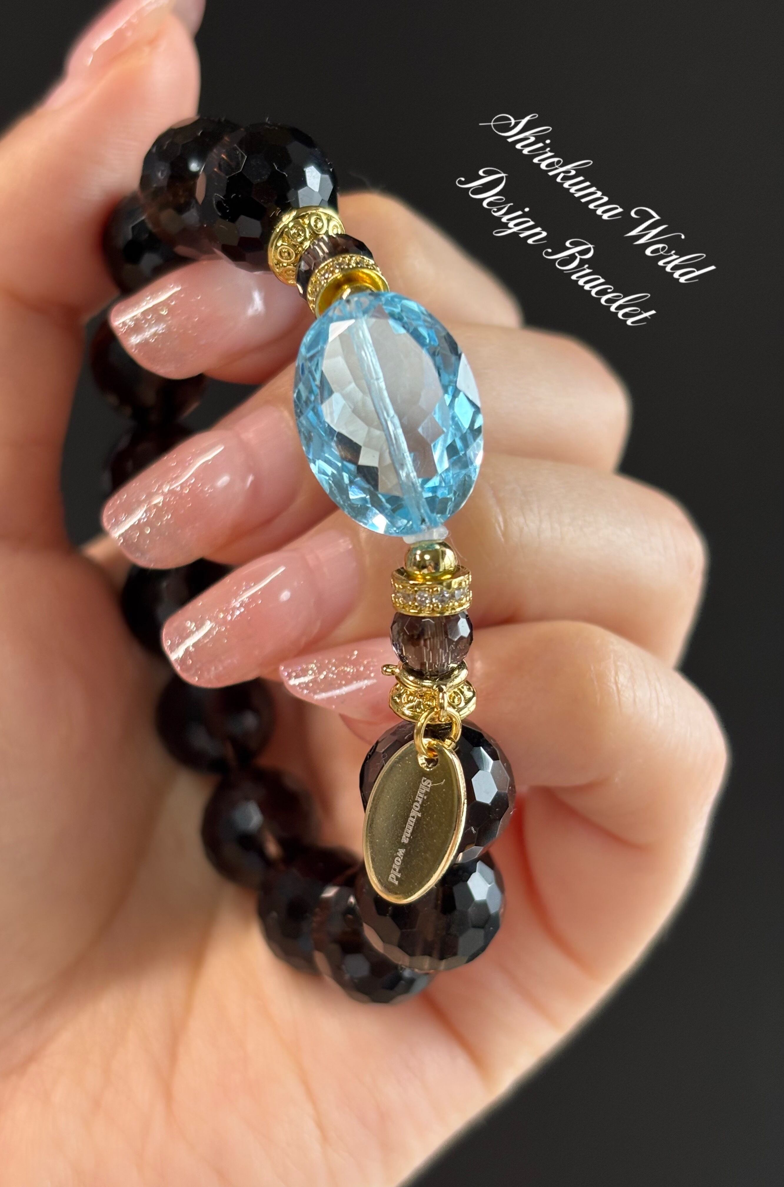 スカイブルートパーズ宝石ルース ミラーボールカットスモーキークォーツ デザインブレスレット