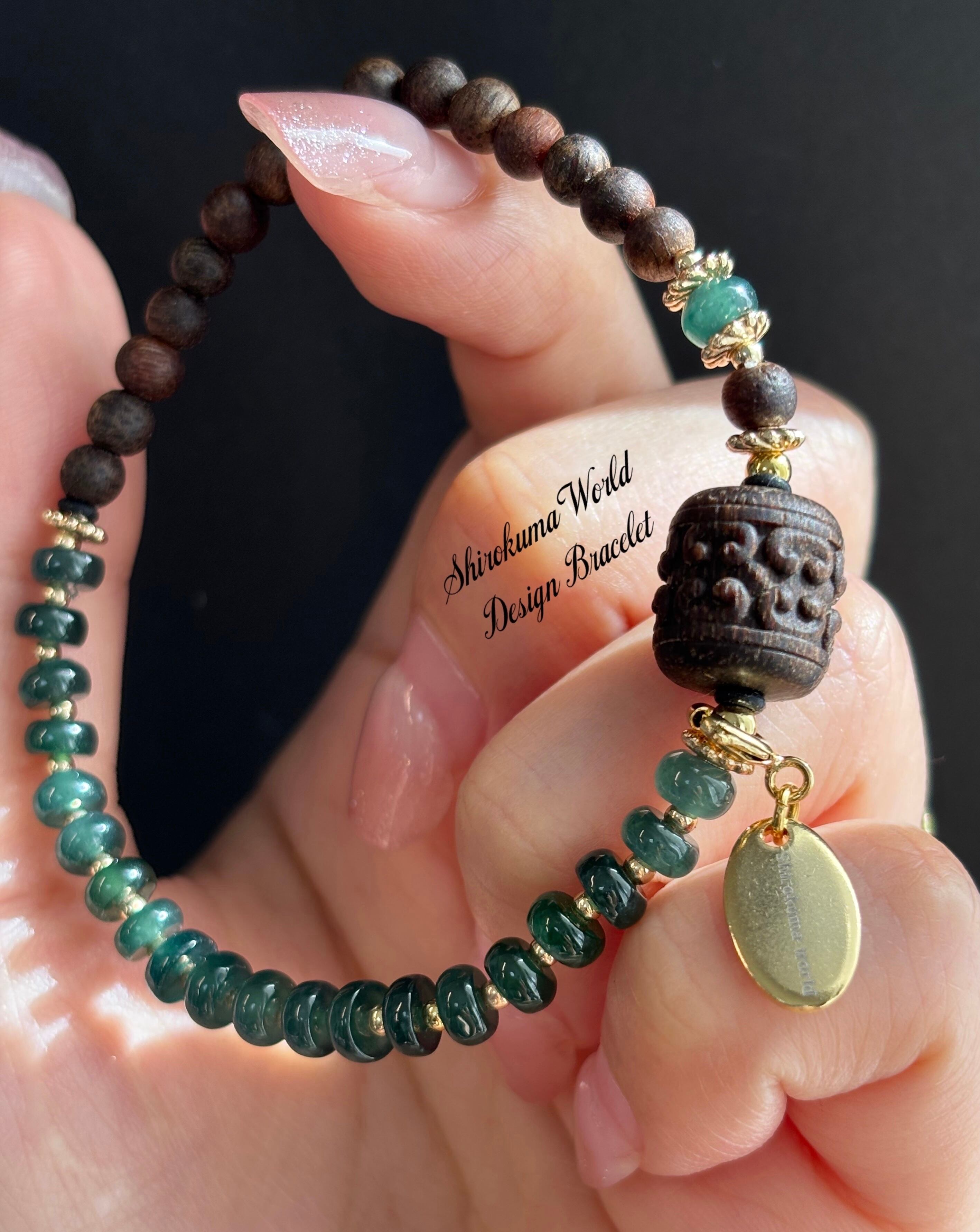 グアテマラ翡翠 沈香木 回文殊 デザインブレスレット