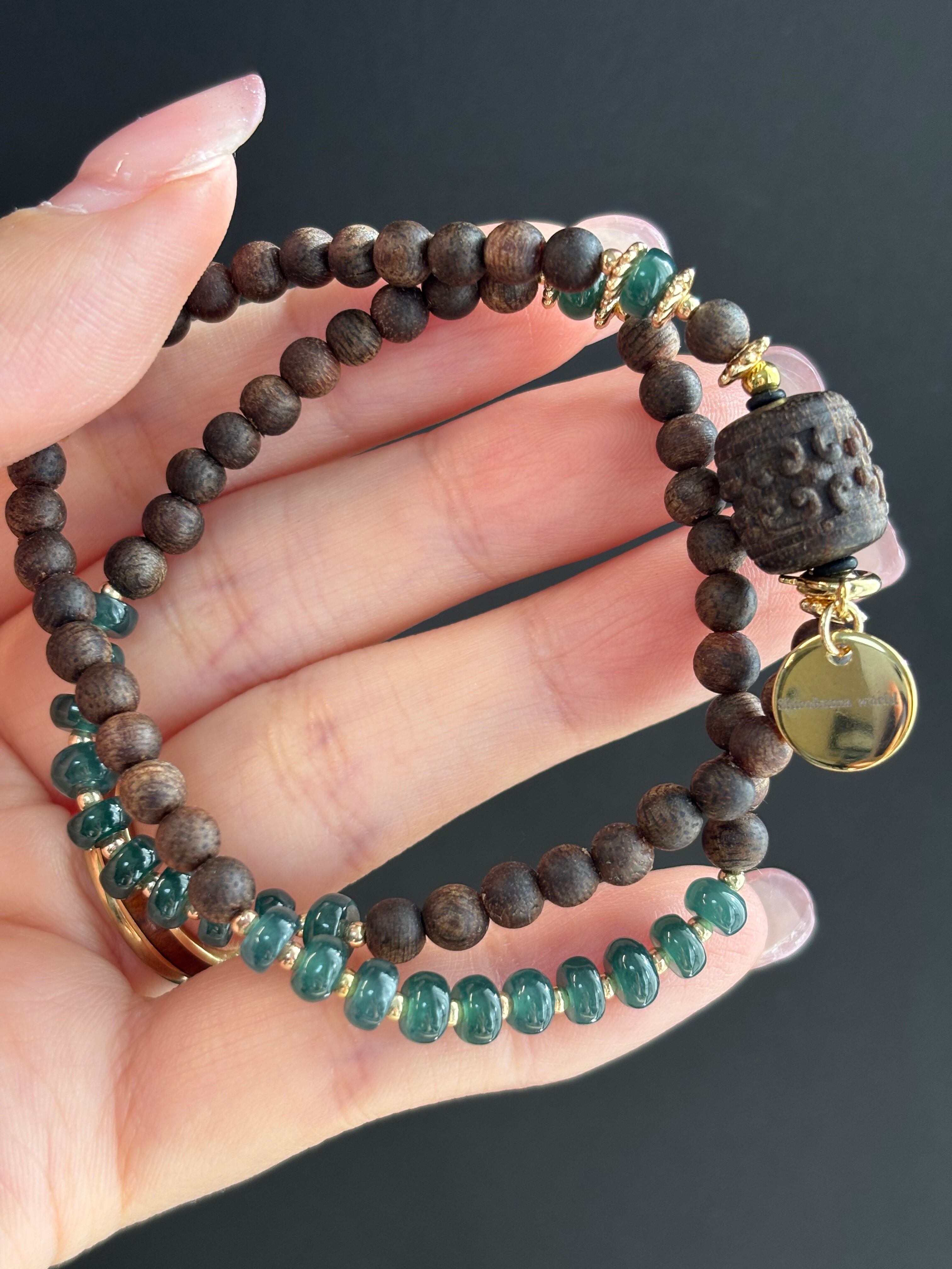 グアテマラ翡翠 沈香木 回文殊 2連デザインブレスレット