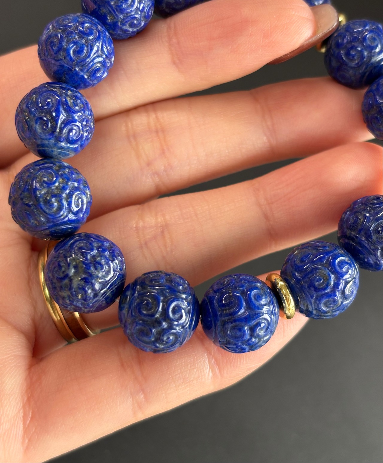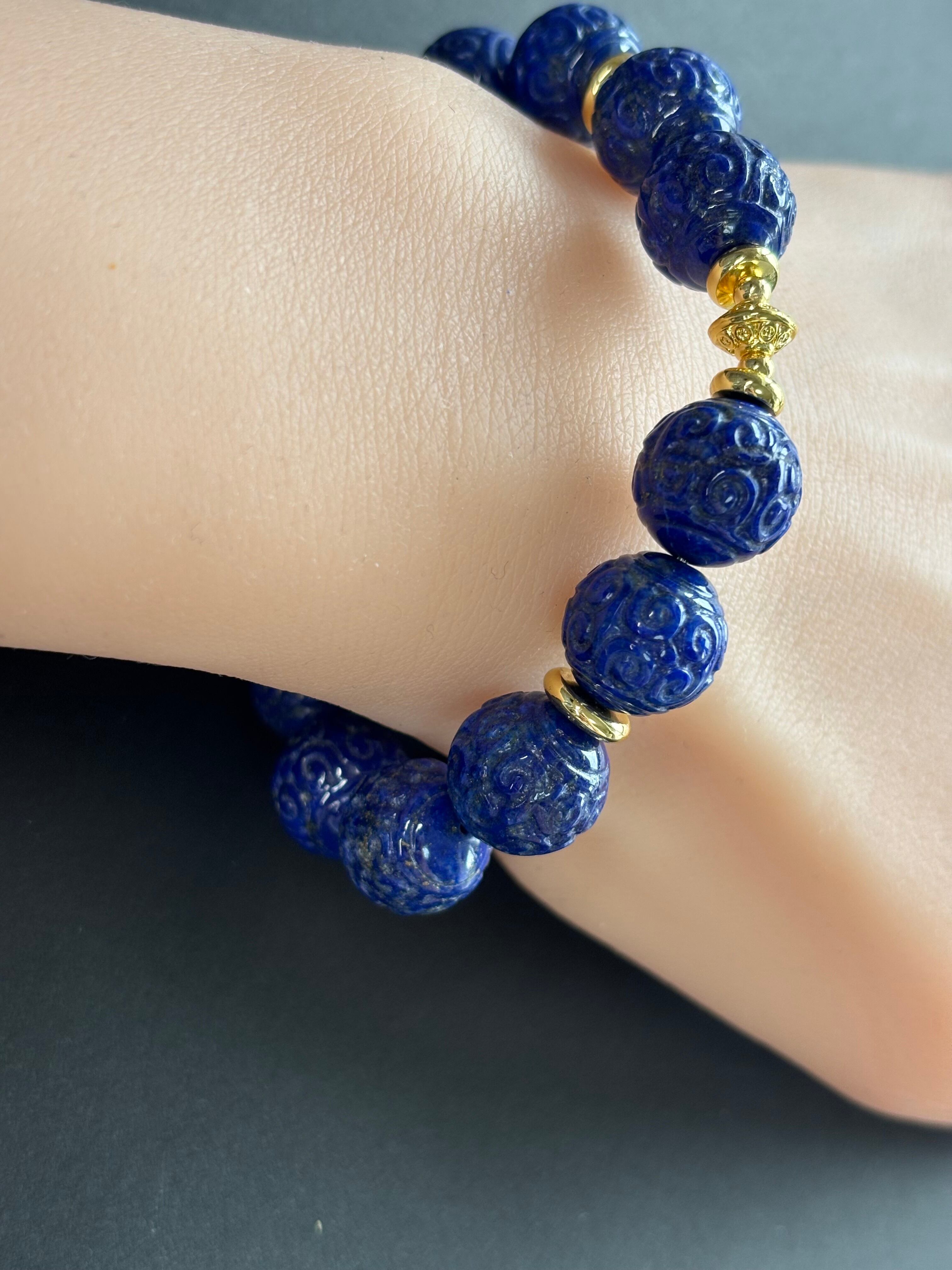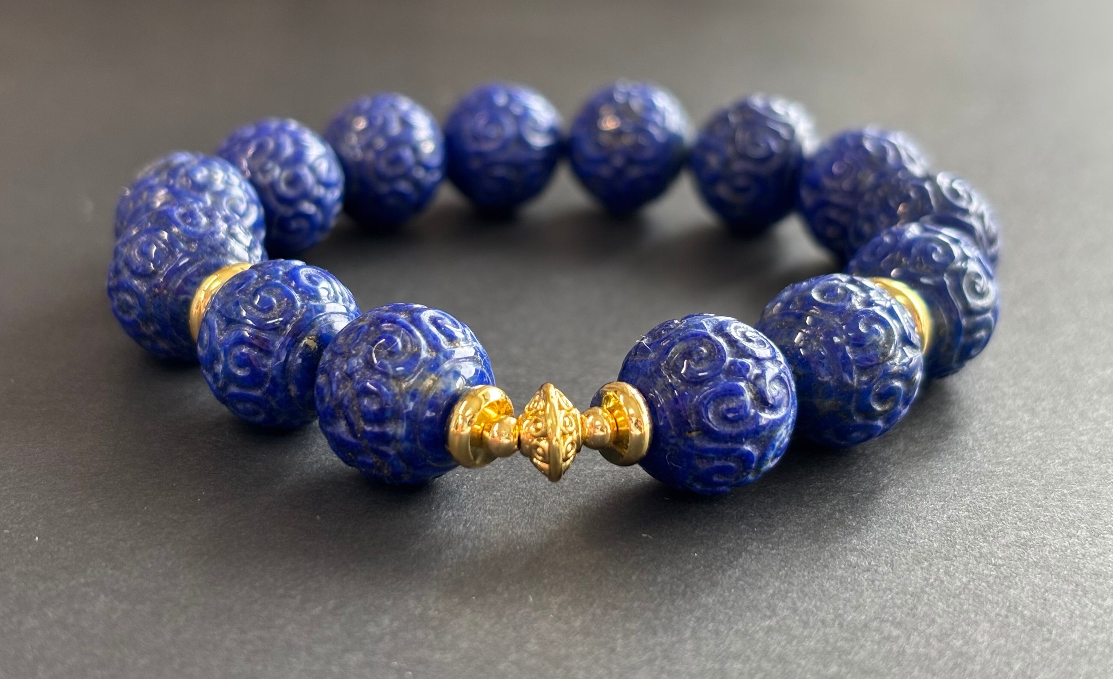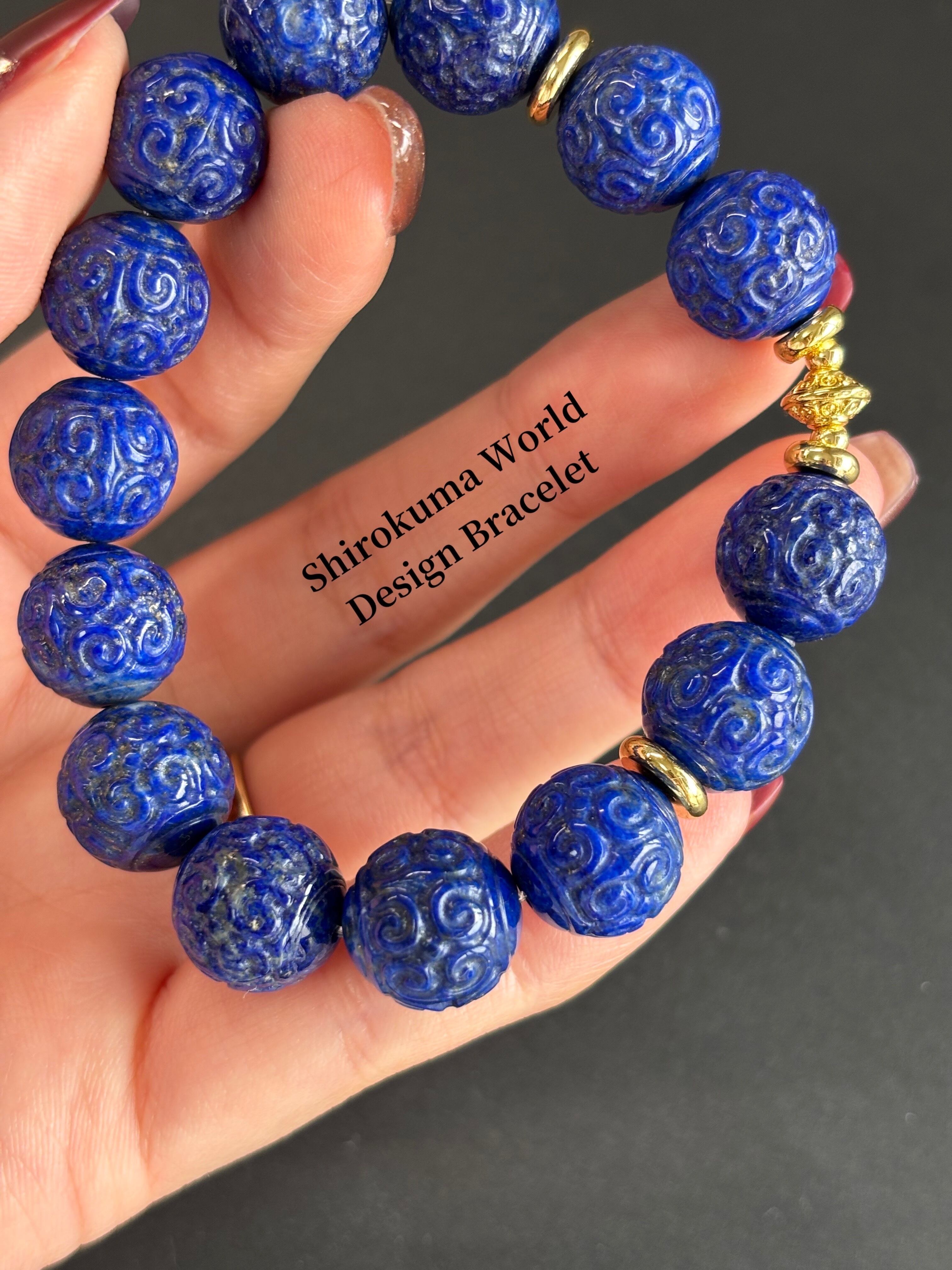 天然 染め無しの高品質 ラピスラズリの手彫り彫刻の回文殊ブレスレットです(*^^*)