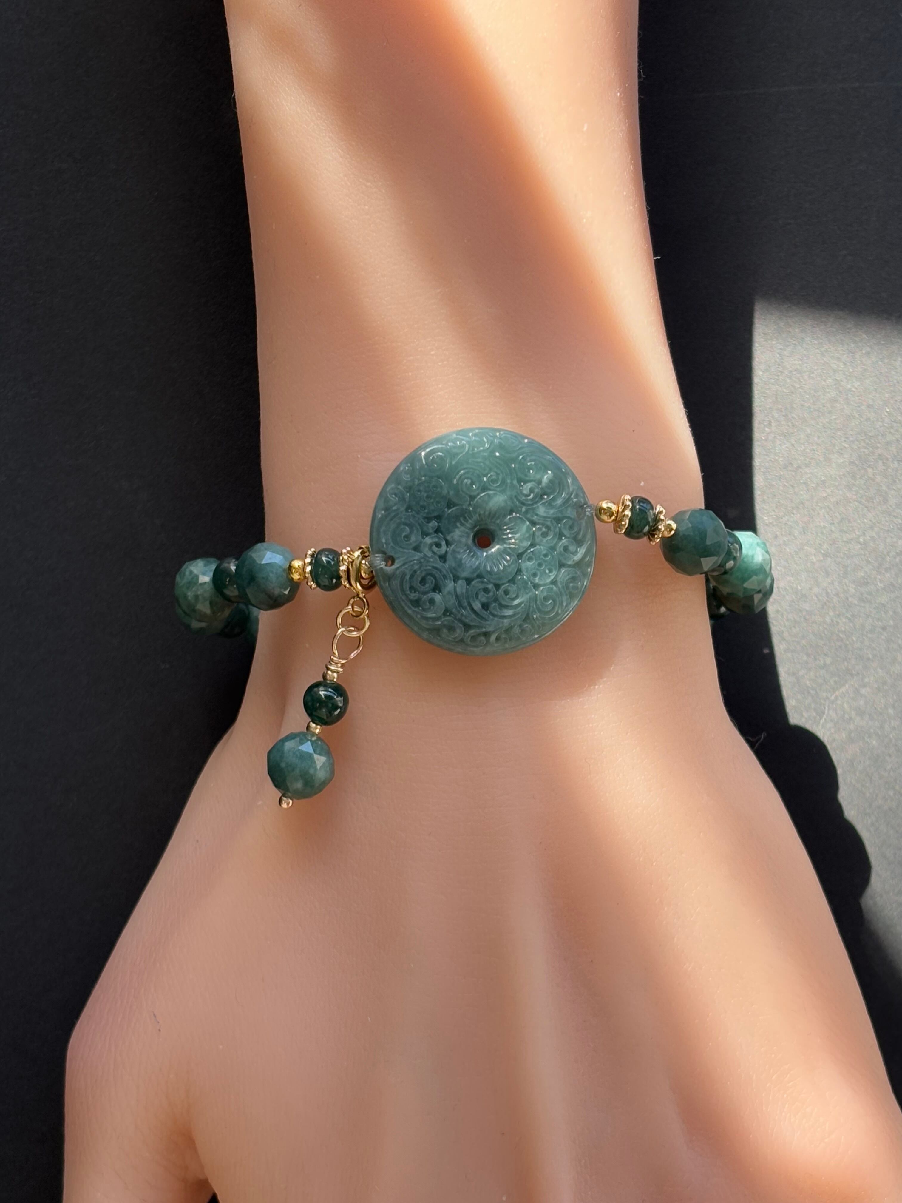 濃いグリーンのグアテマラ産地翡翠のオールブレスレットです。