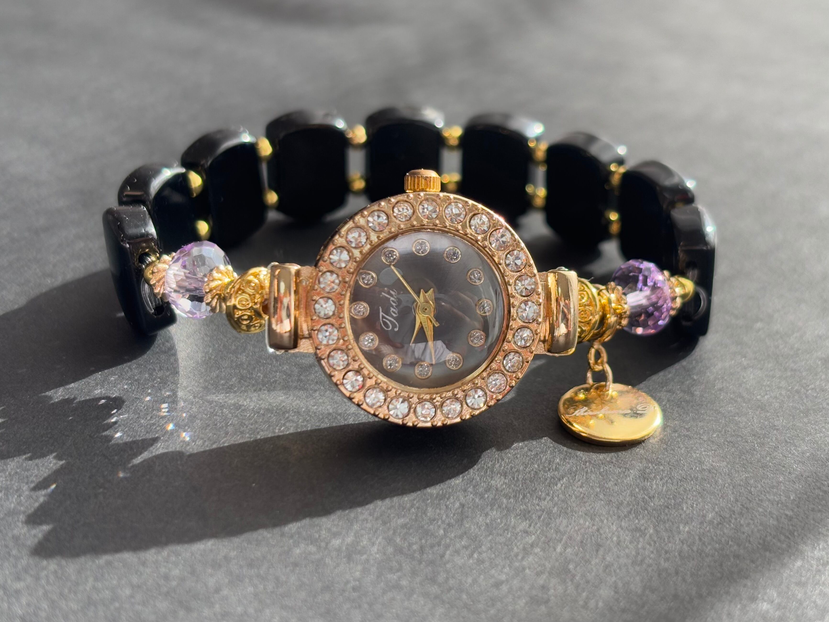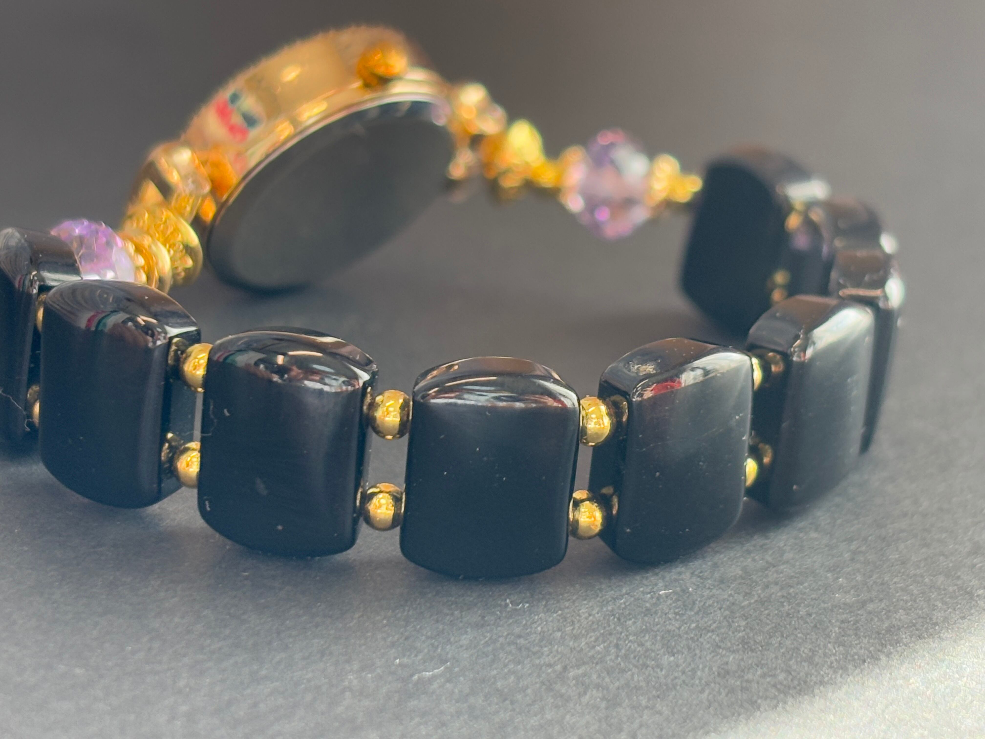 天然石 時計ブレスレット カットアメジスト ブラックトルマリン デザインブレスレット時計