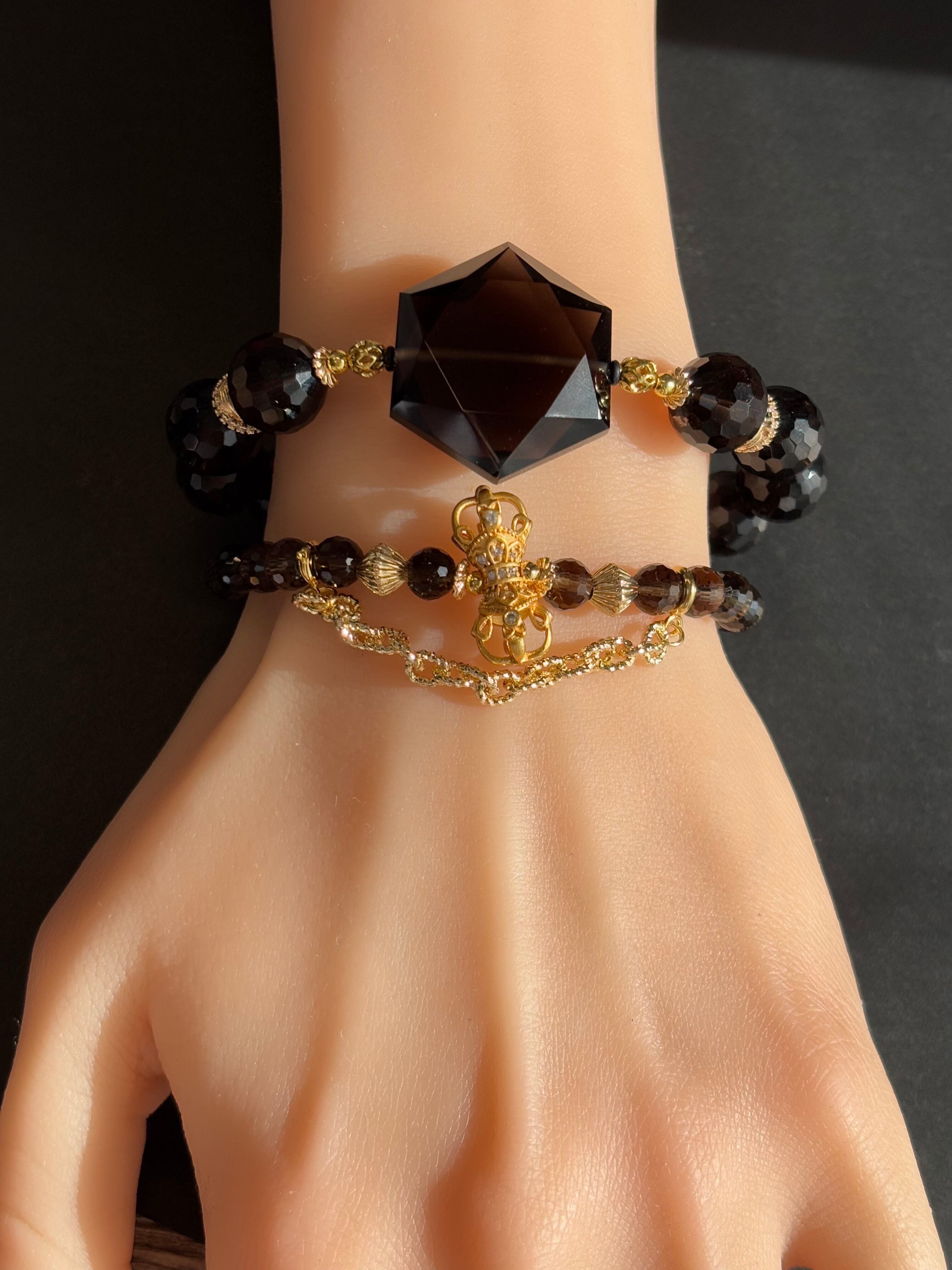 六芒星スモーキークォーツ×バジュラ×スモーキークォーツ 2連セットデザインブレスレット