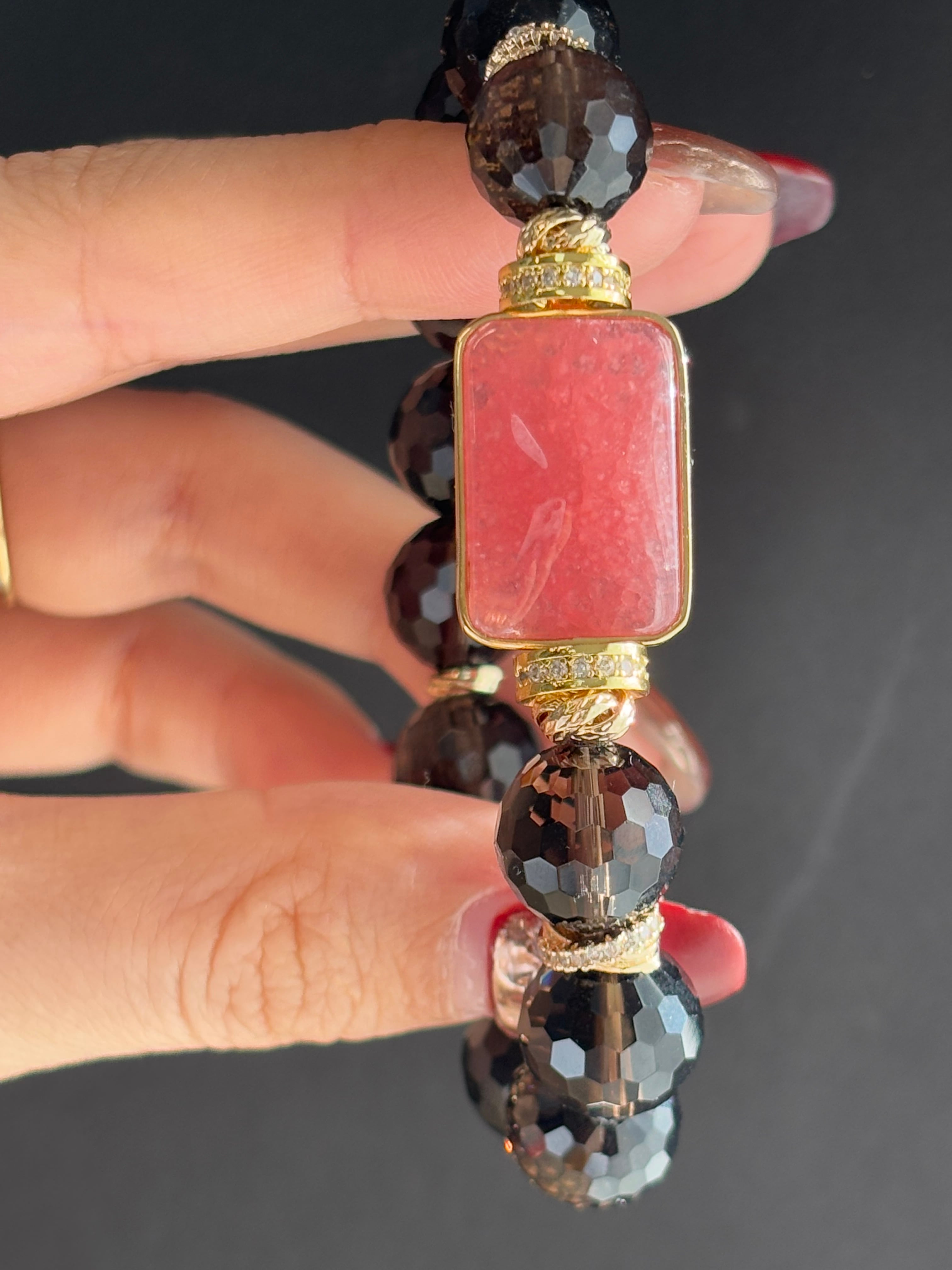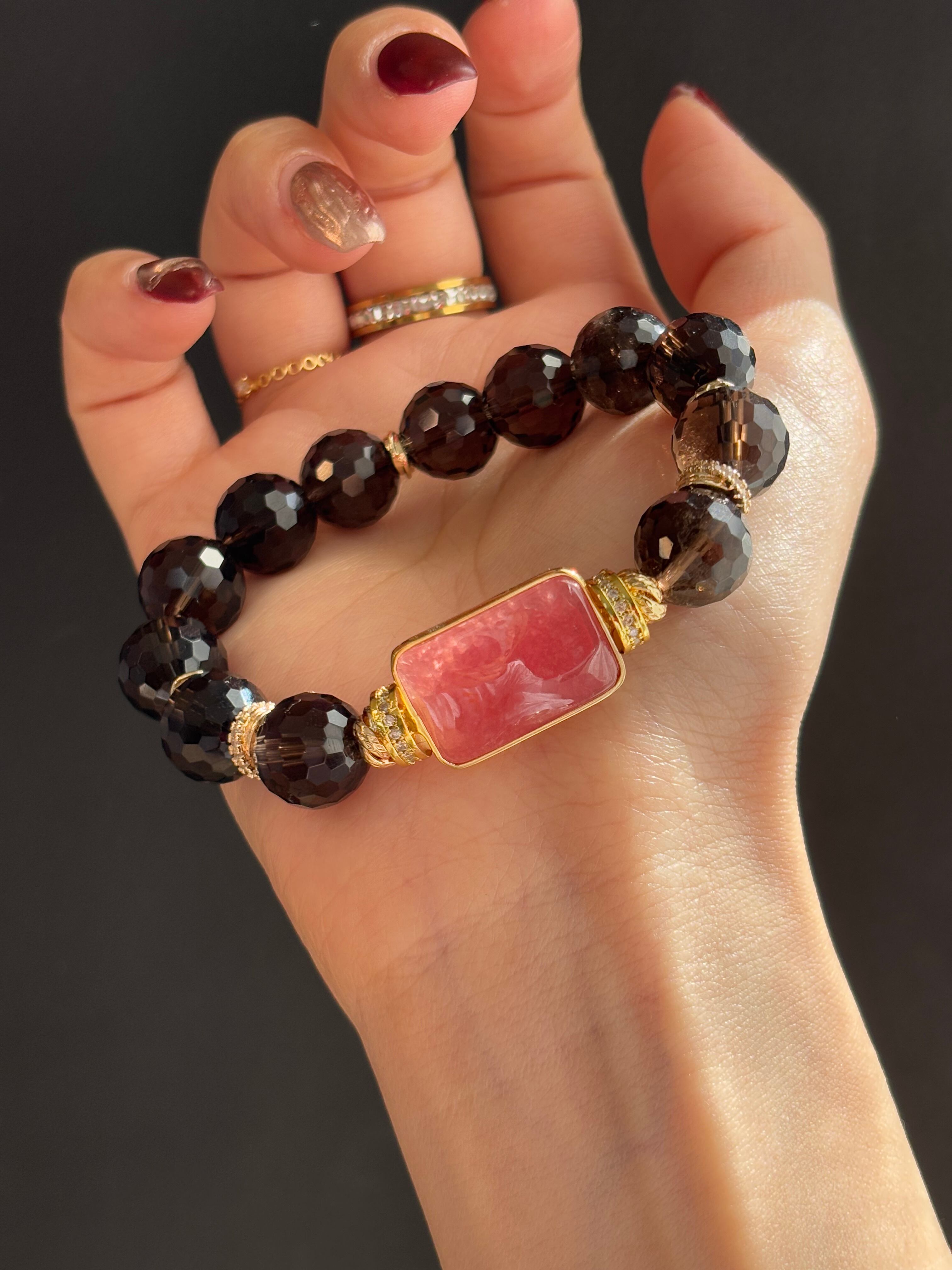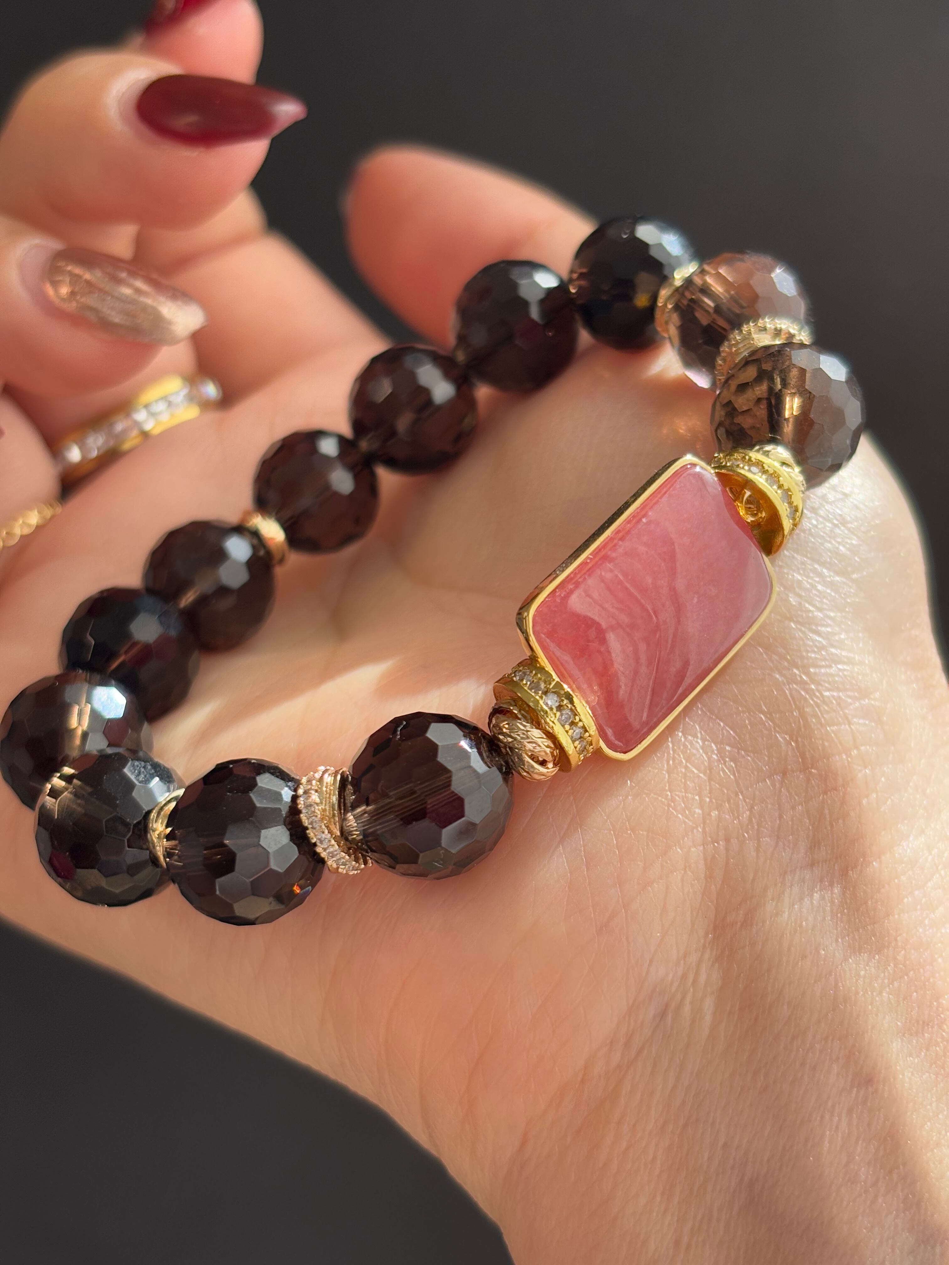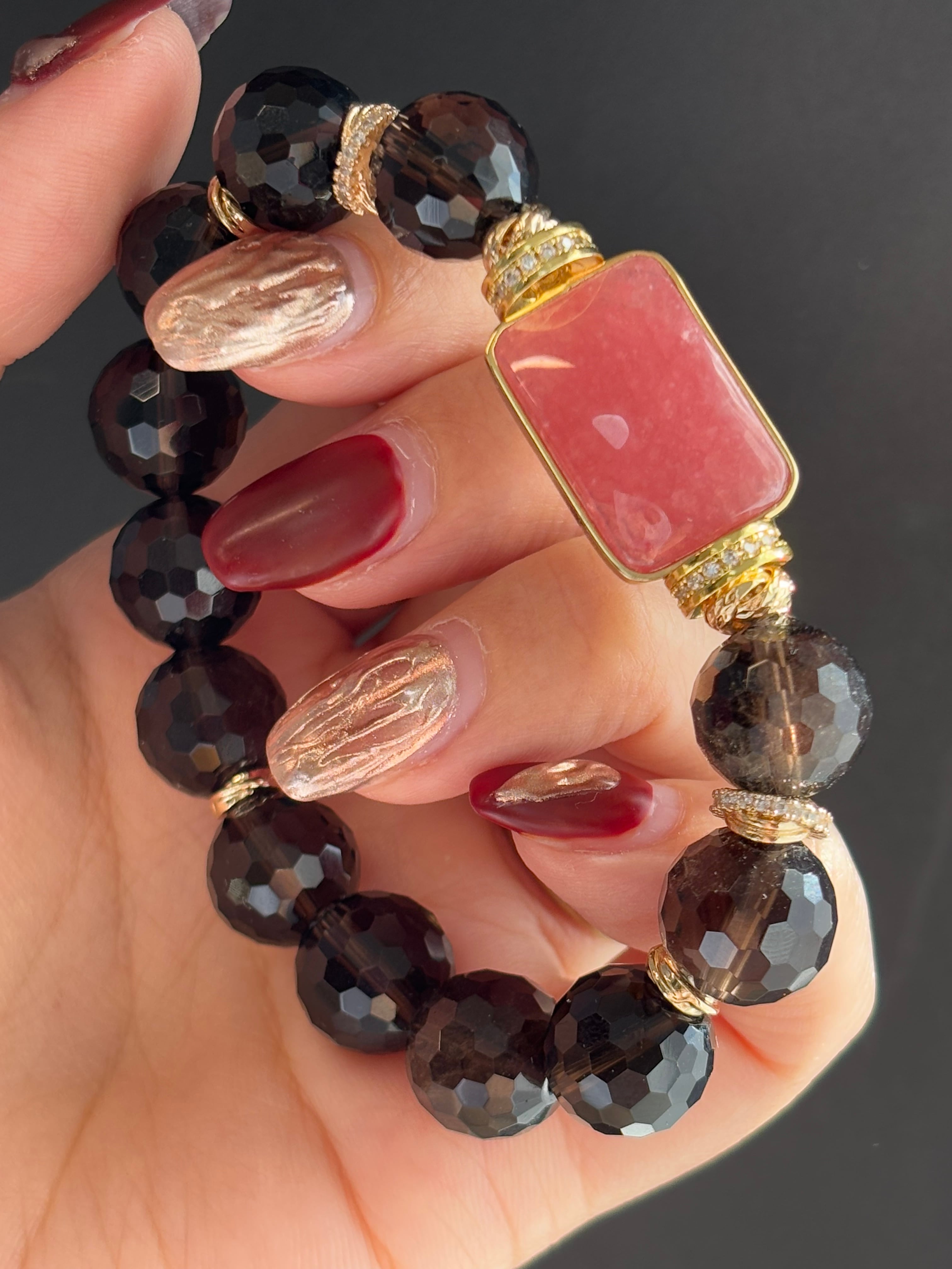 インカローズ ミラーボールカットスモーキークォーツ デザインブレスレット