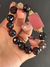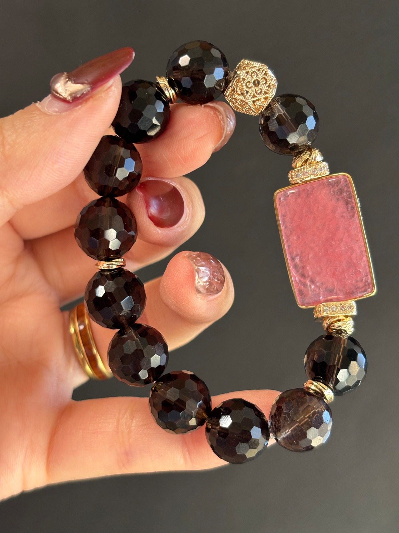 インカローズ ミラーボールカットスモーキークォーツ デザインブレスレット