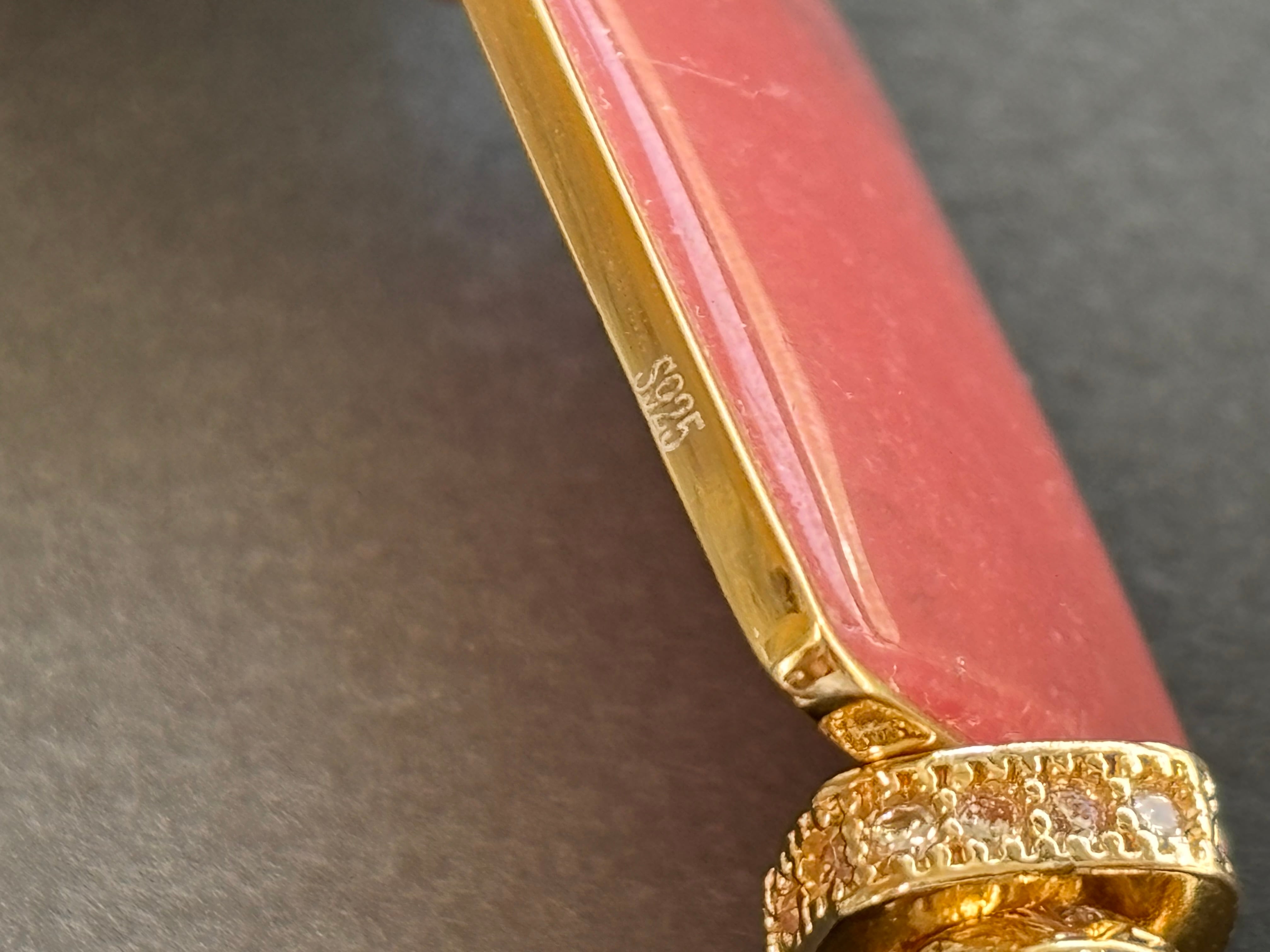 高品質な透け感あるインカローズのトップはルースを選びS925ゴールドカラーの枠を特注して作りました。