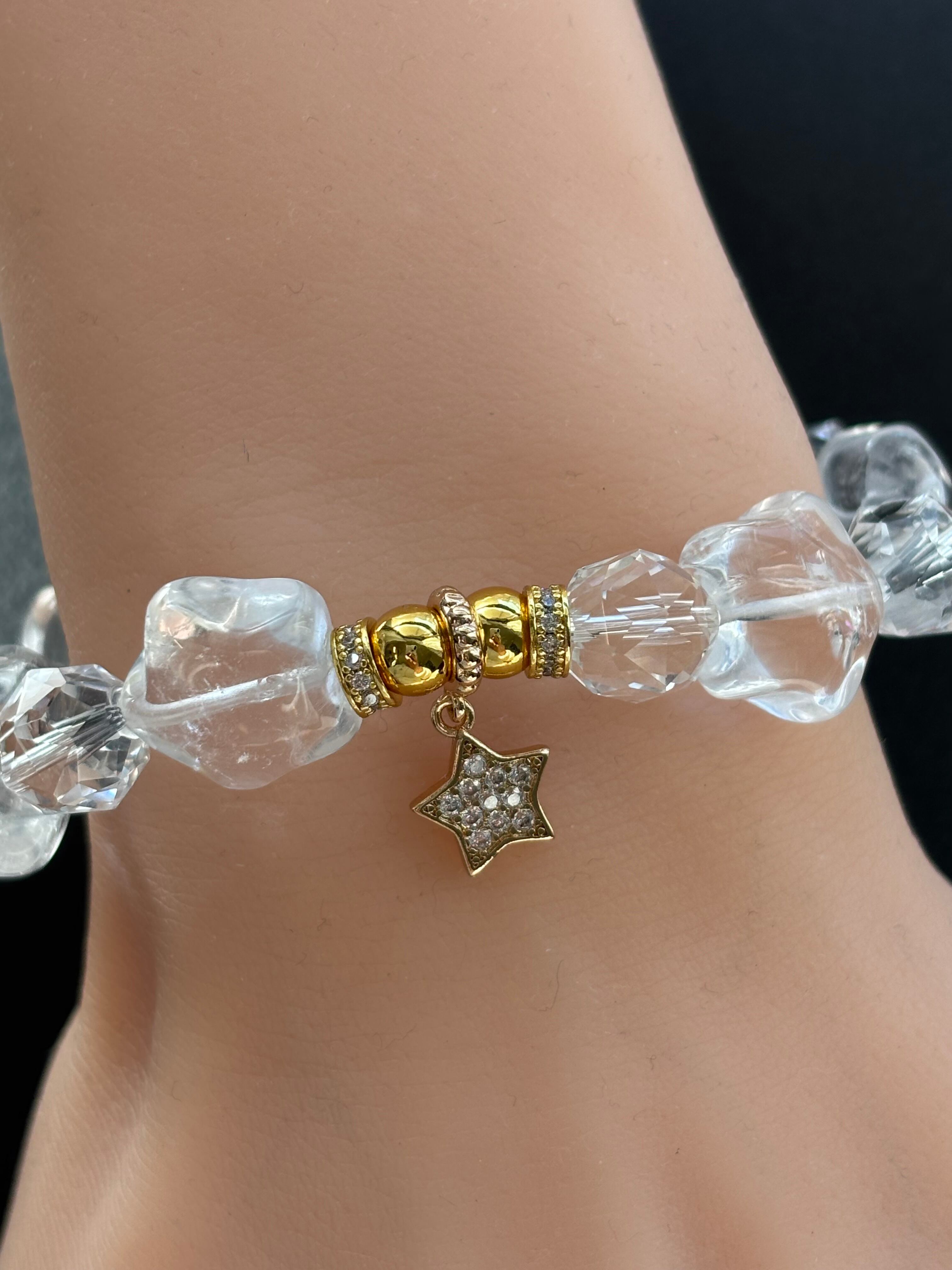 水晶 星 スターカット水晶 星チャーム デザインブレスレット