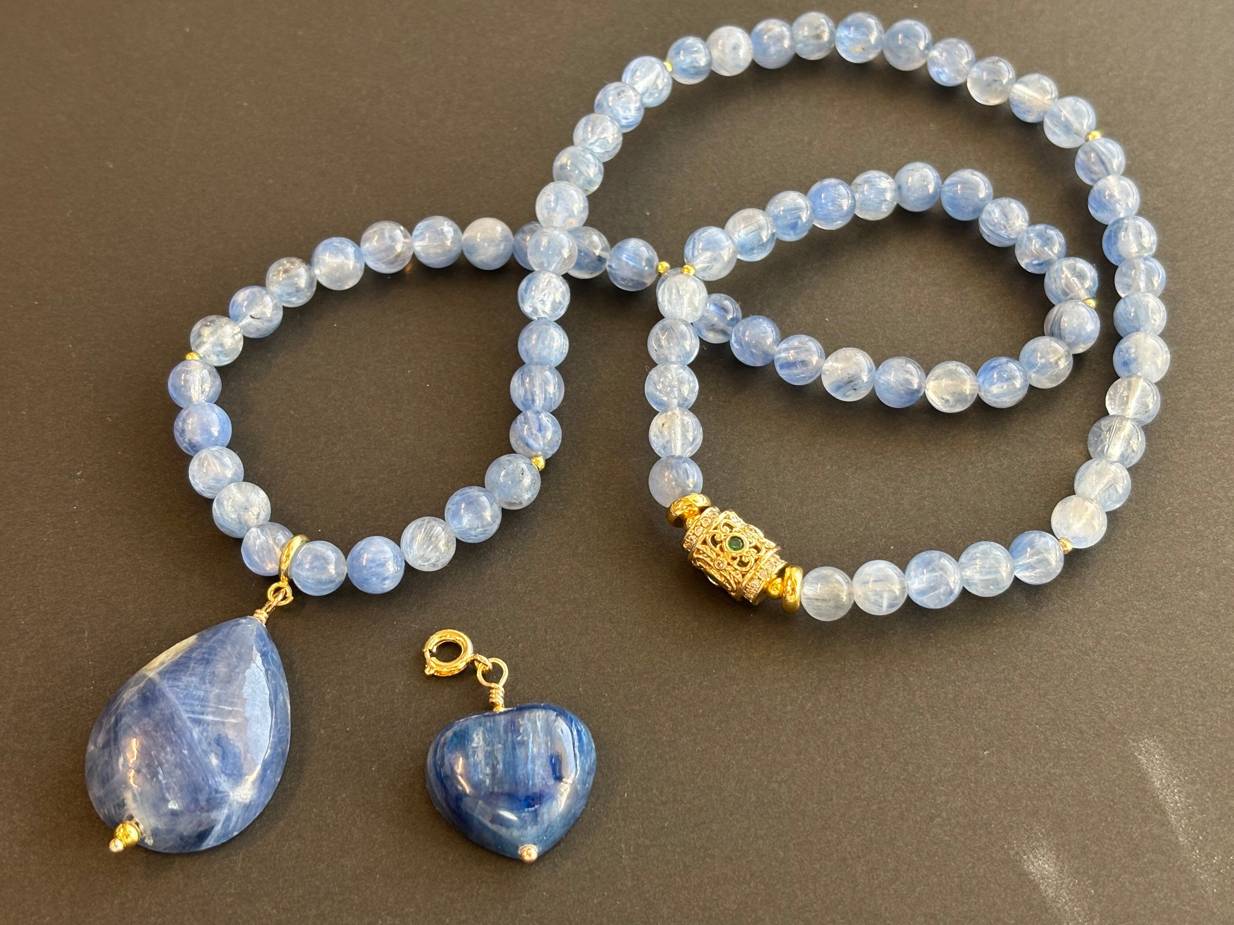 カイナイト カイヤナイトインクォーツ エメラルド共生 ネックレスor3連デザインブレスレット